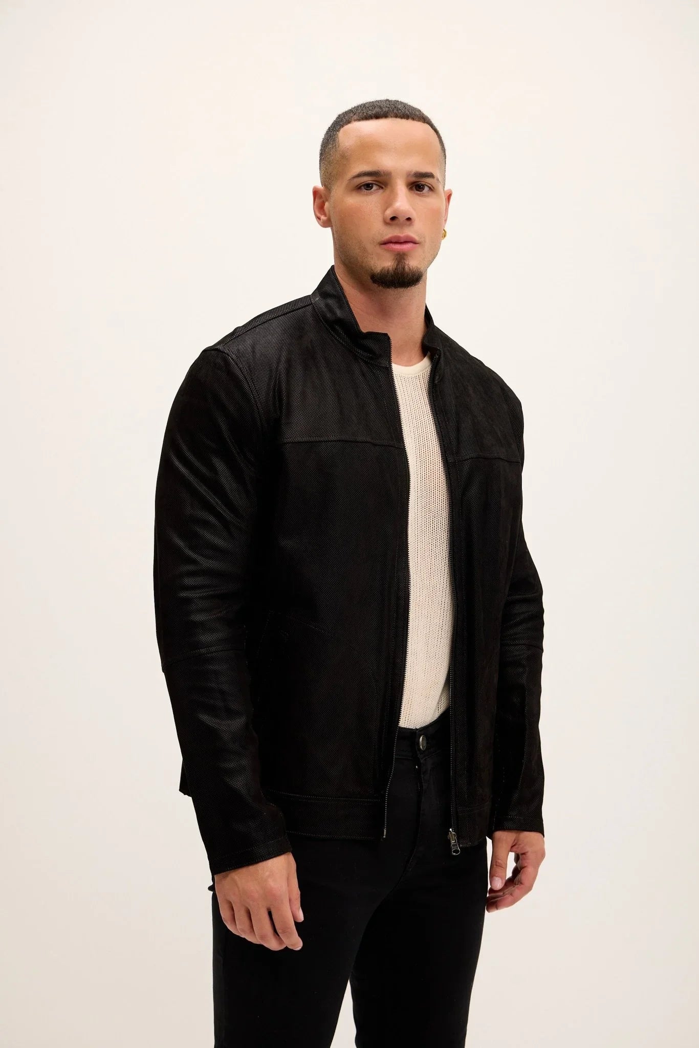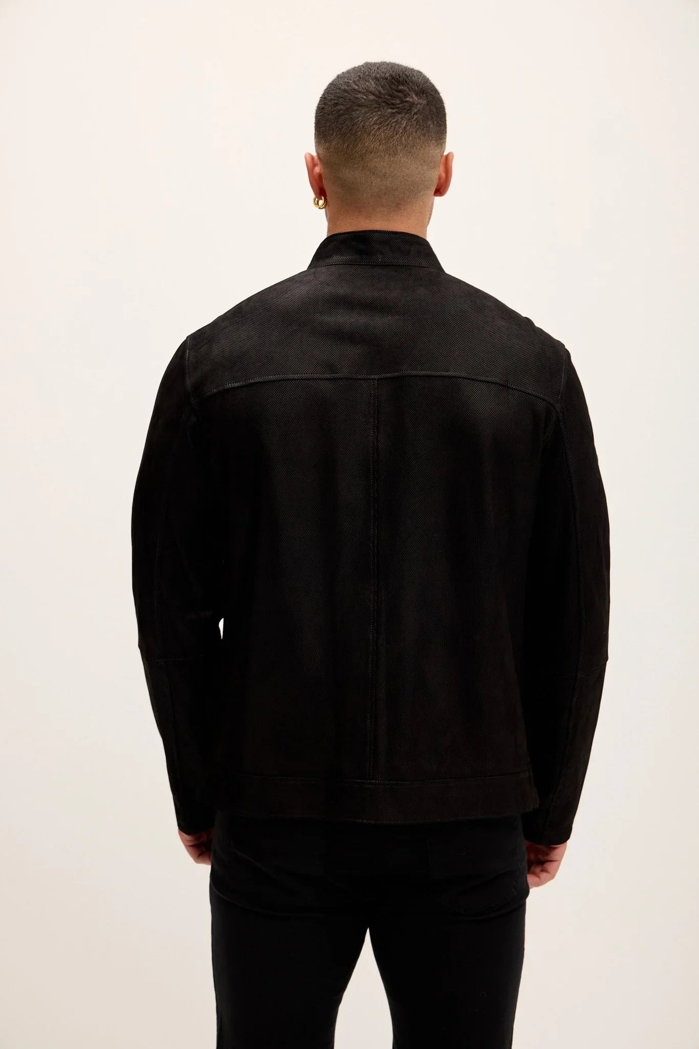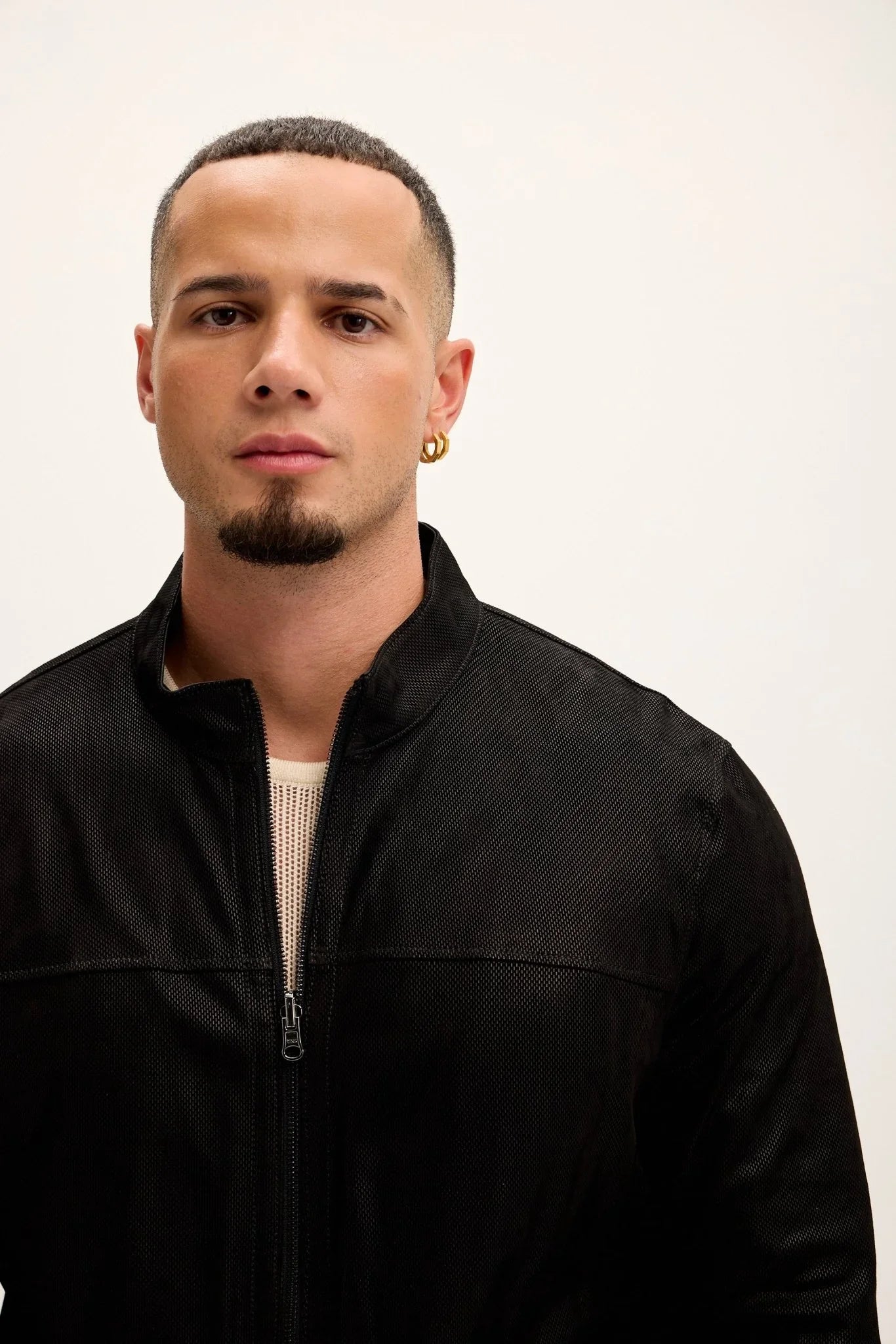 Vanguard Reversible Perforated Suede & Leather Jacket - Black