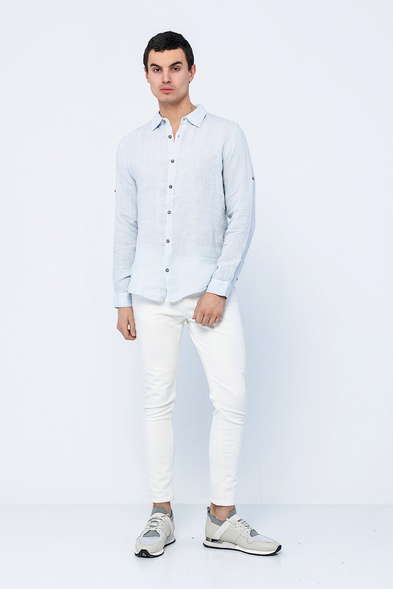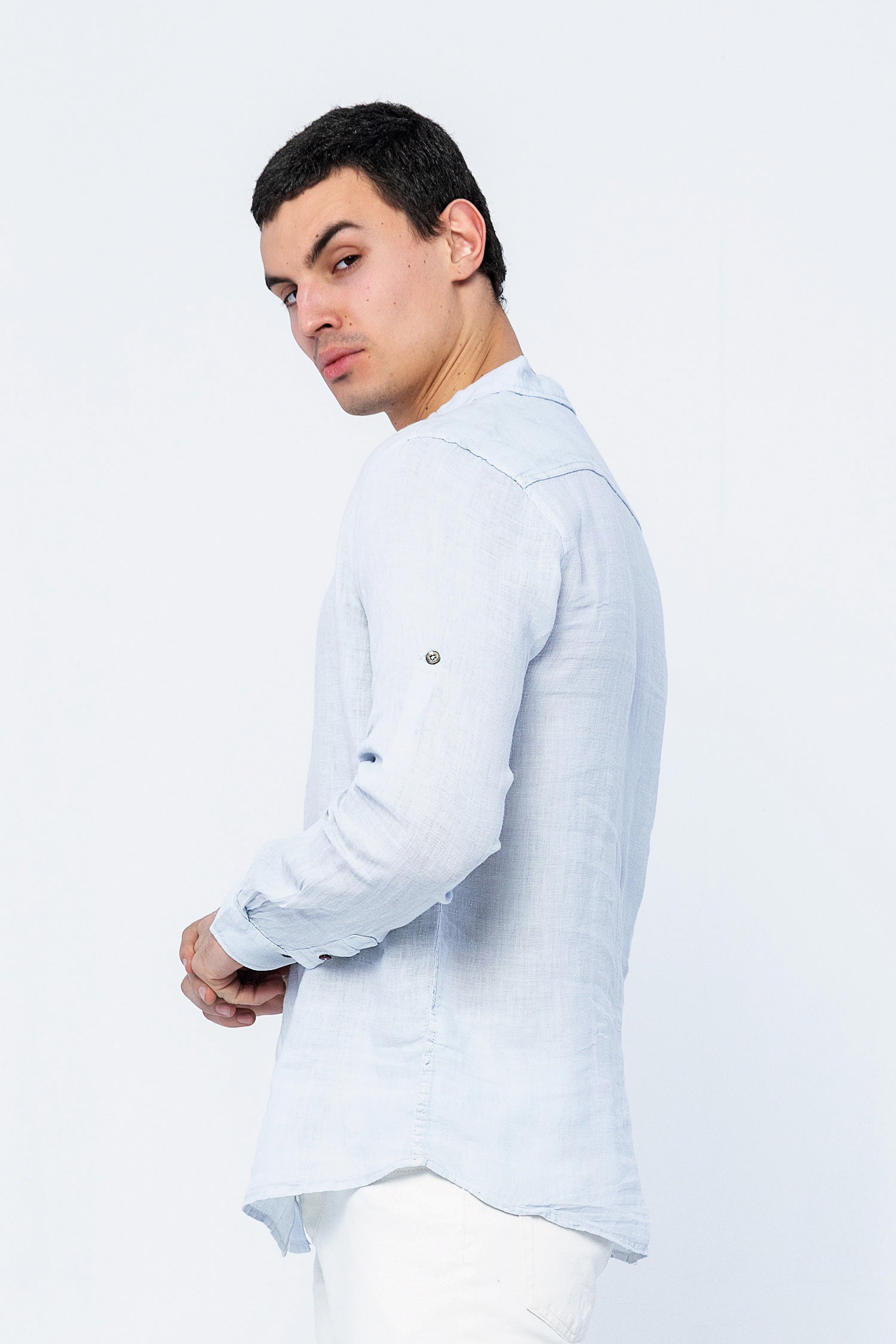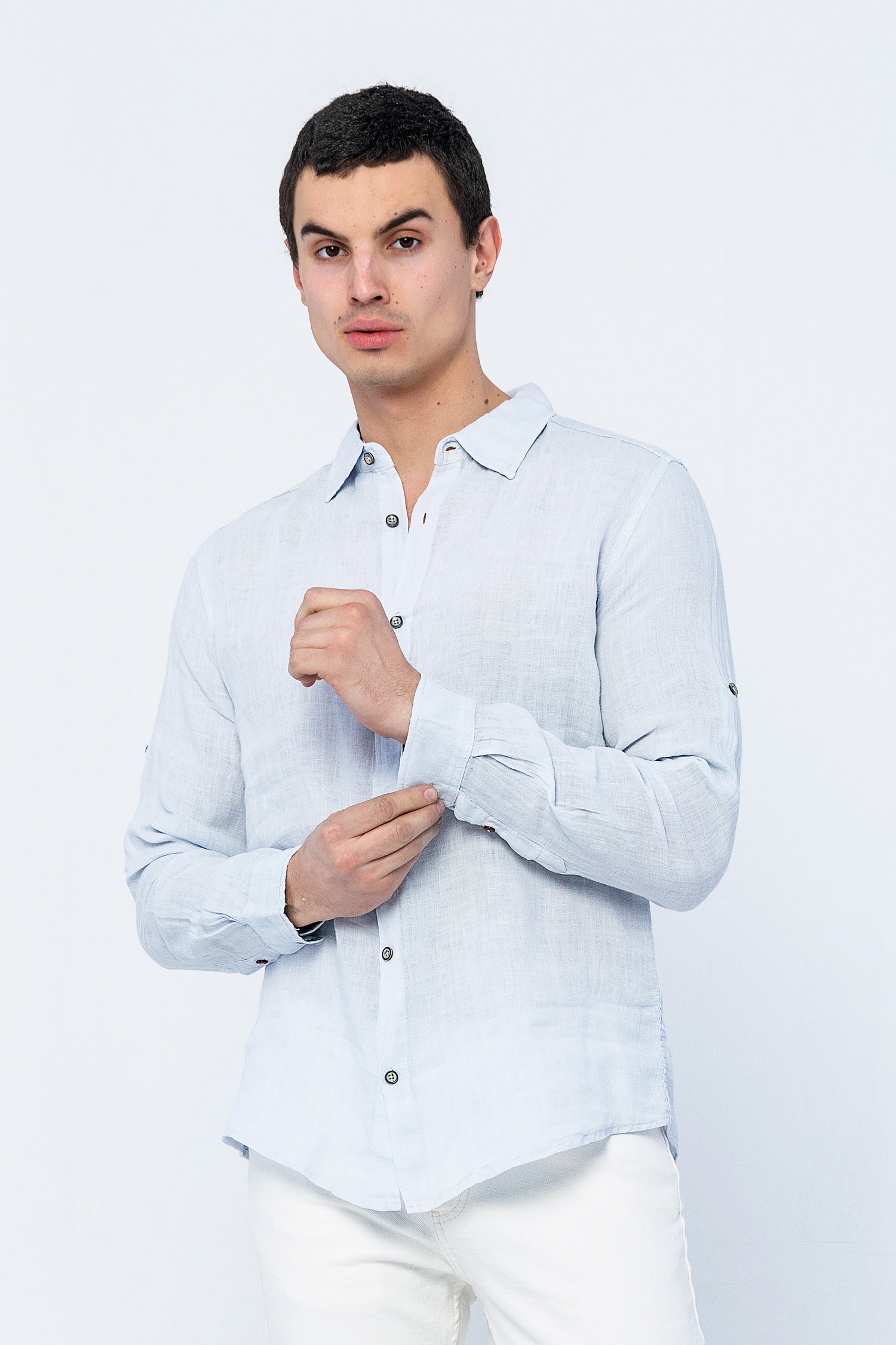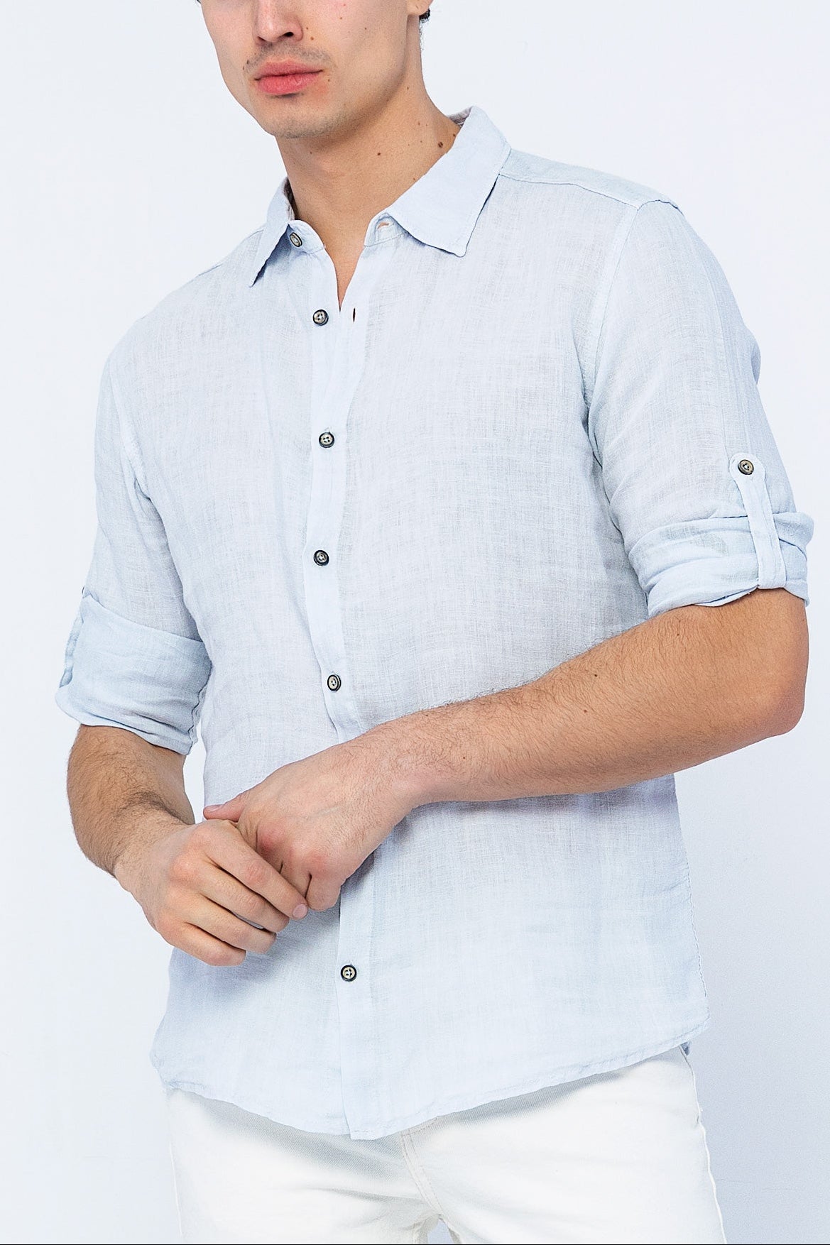 Be valuable, not available. Wear our softest lightweight linen button up shirt on your days off. Finished with mother of pearl buttons and a classic long sleeve fit.