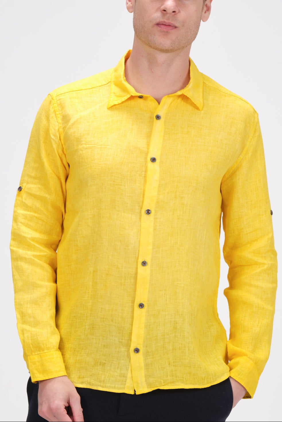 Collared Linen Shirt - Yellow