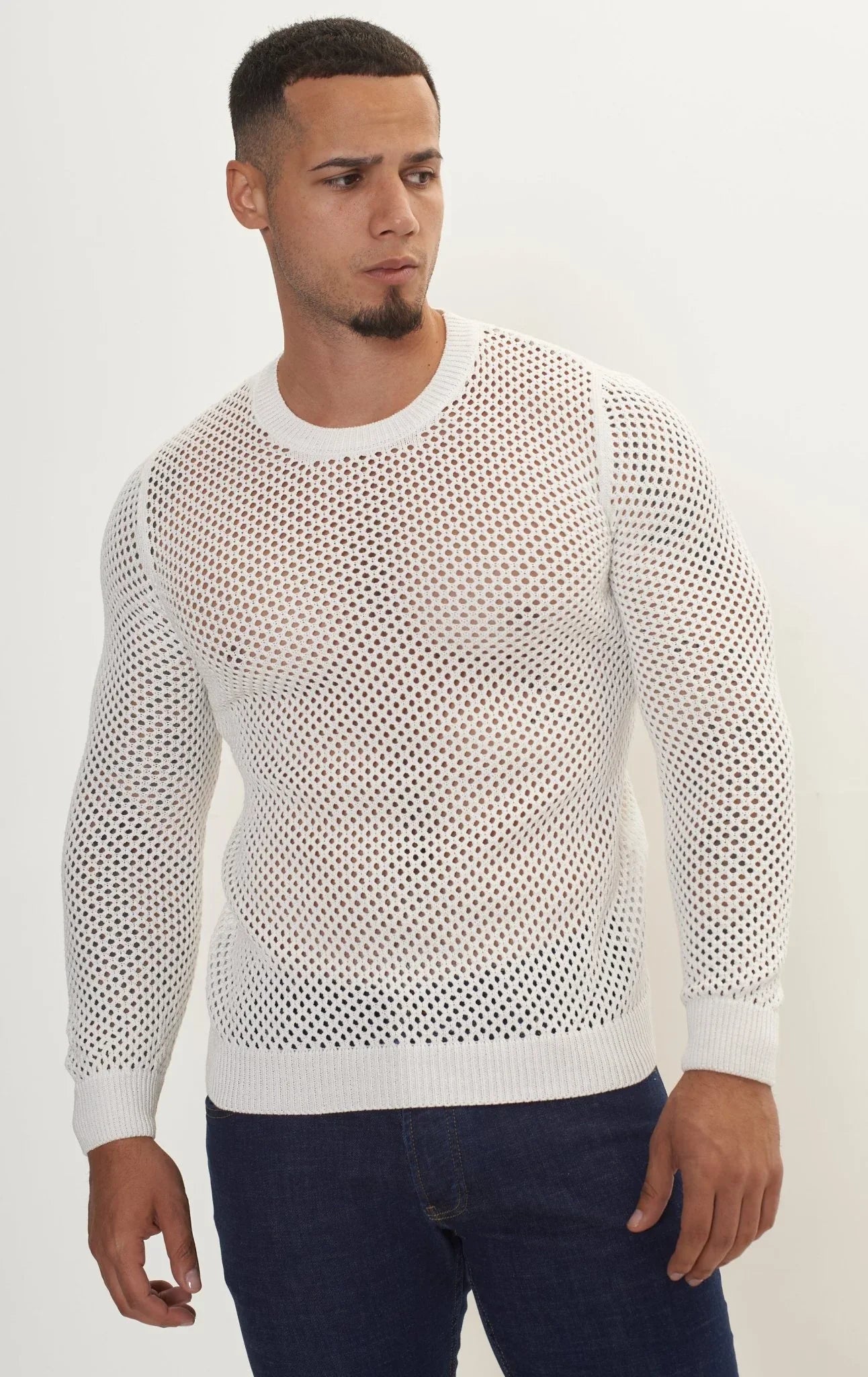 Designed to showcase your physique, the muscle fit silhouette hugs your body in all the right places, accentuating your muscular build and adding a touch of allure to your look. The see-through nature of the fishnet fabric adds an element of mystery and intrigue, allowing you to make a bold fashion statement wherever you go.