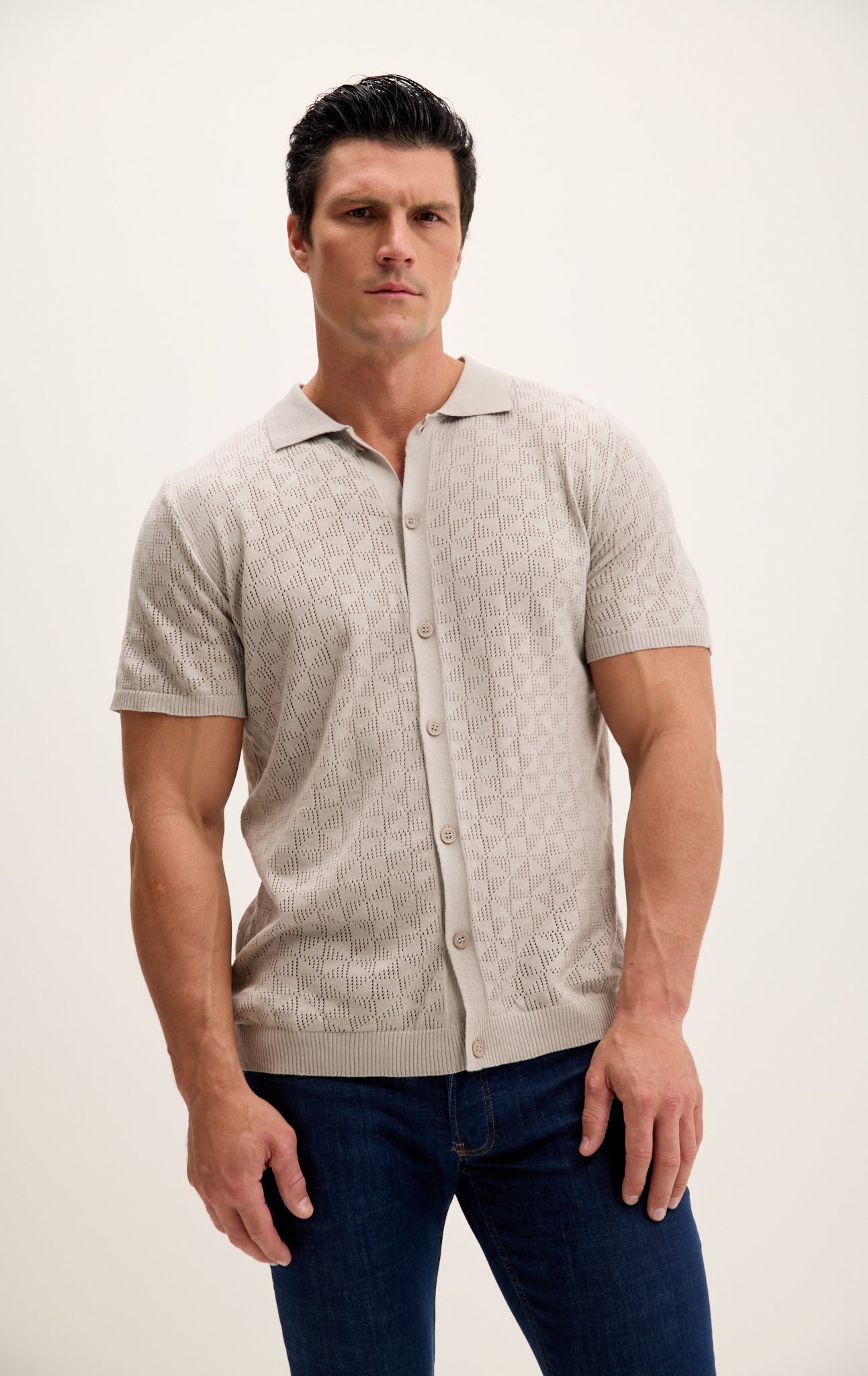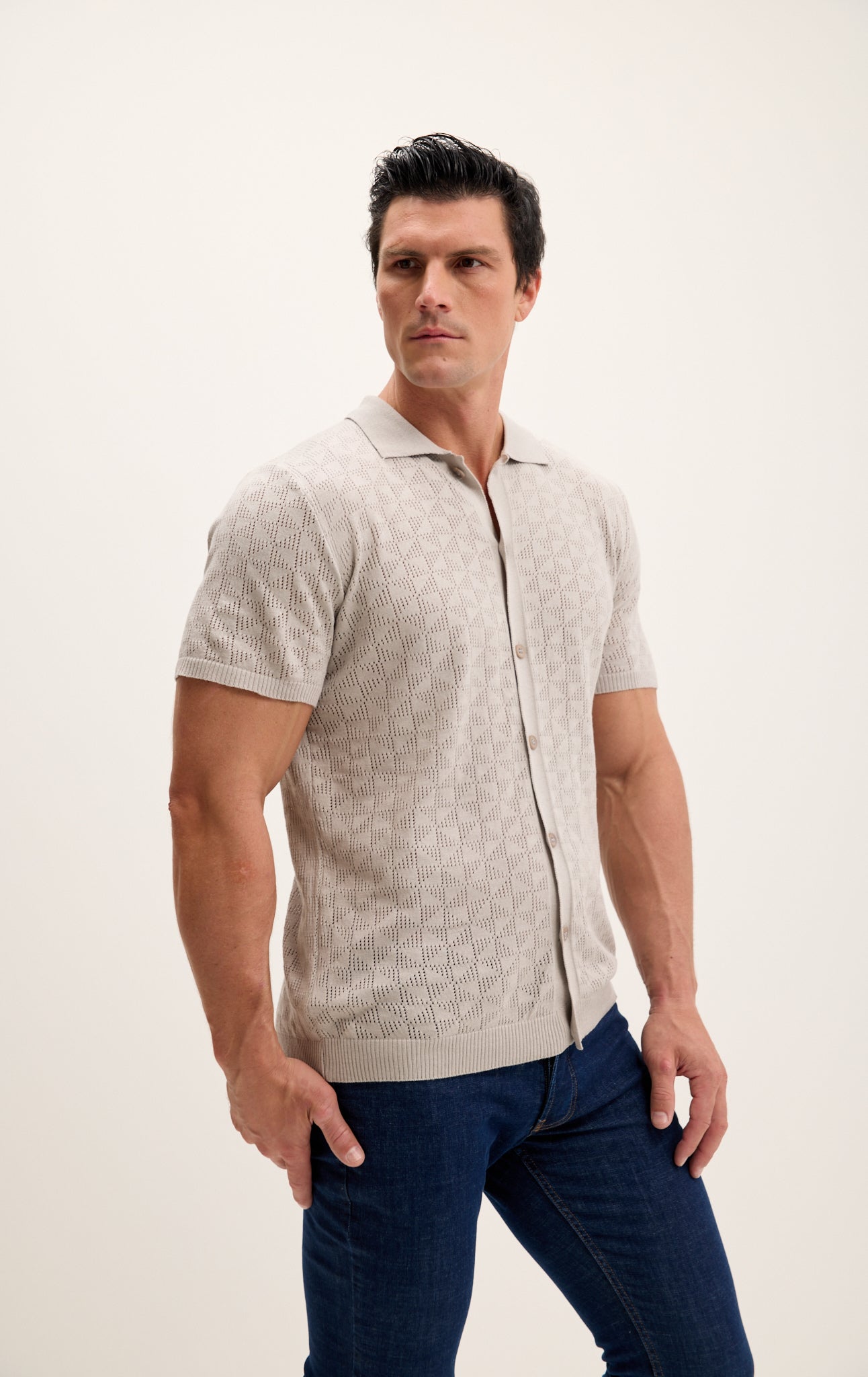 Make a statement with your style and stand out from the crowd with our Geometric Crochet Knit Polo. Whether you're heading to the office or meeting friends for dinner, this polo shirt is sure to turn heads and elevate your look.