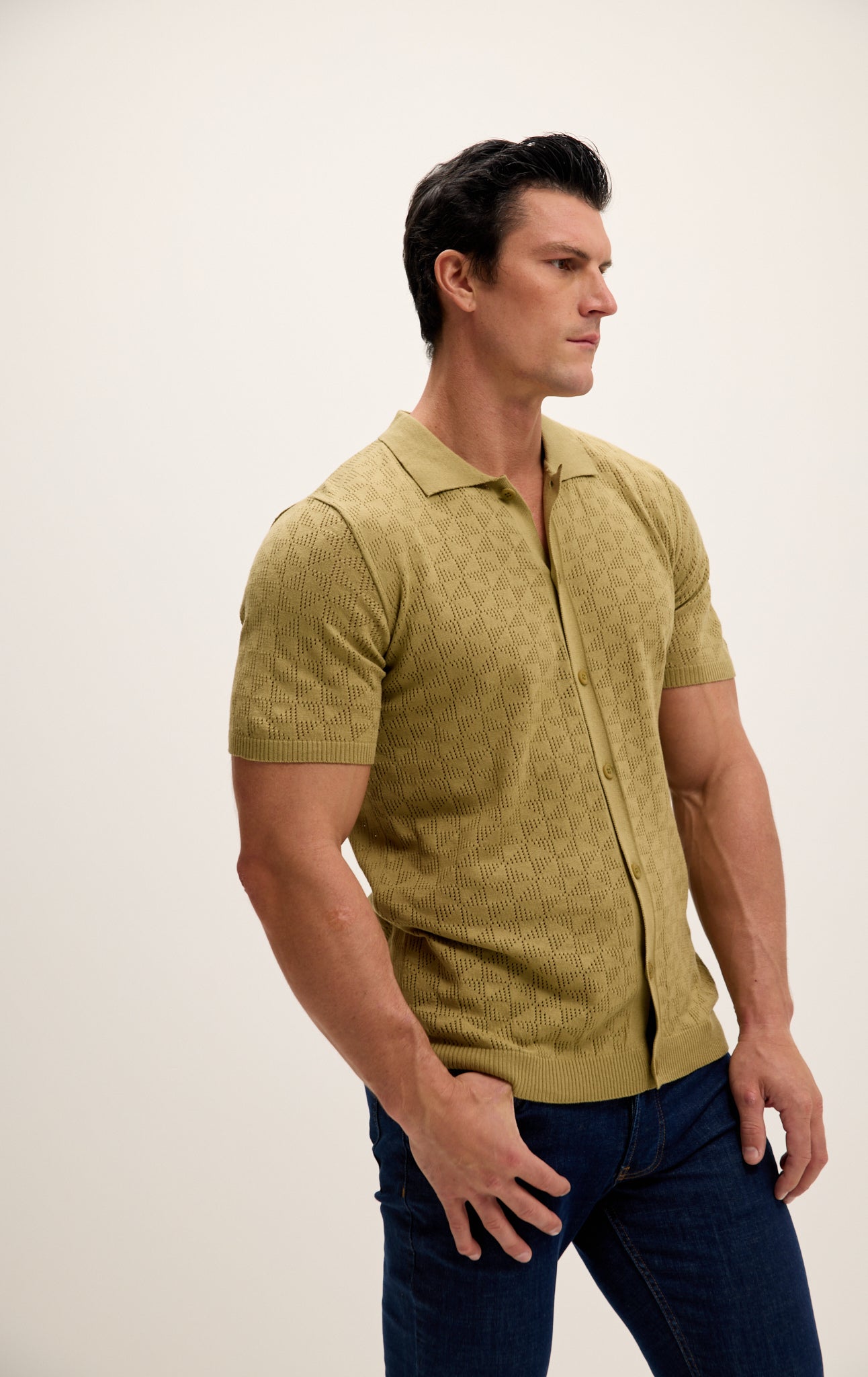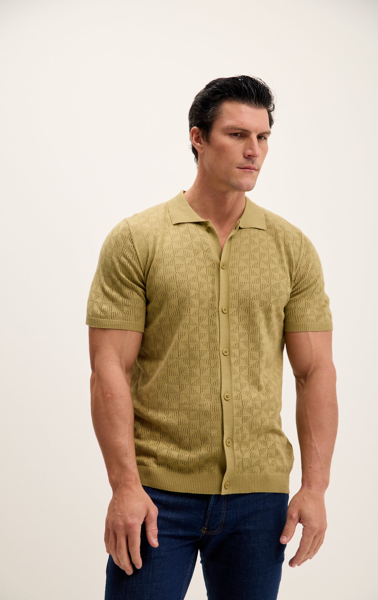 Make a statement with your style and stand out from the crowd with our Geometric Crochet Knit Polo. Whether you're heading to the office or meeting friends for dinner, this polo shirt is sure to turn heads and elevate your look.