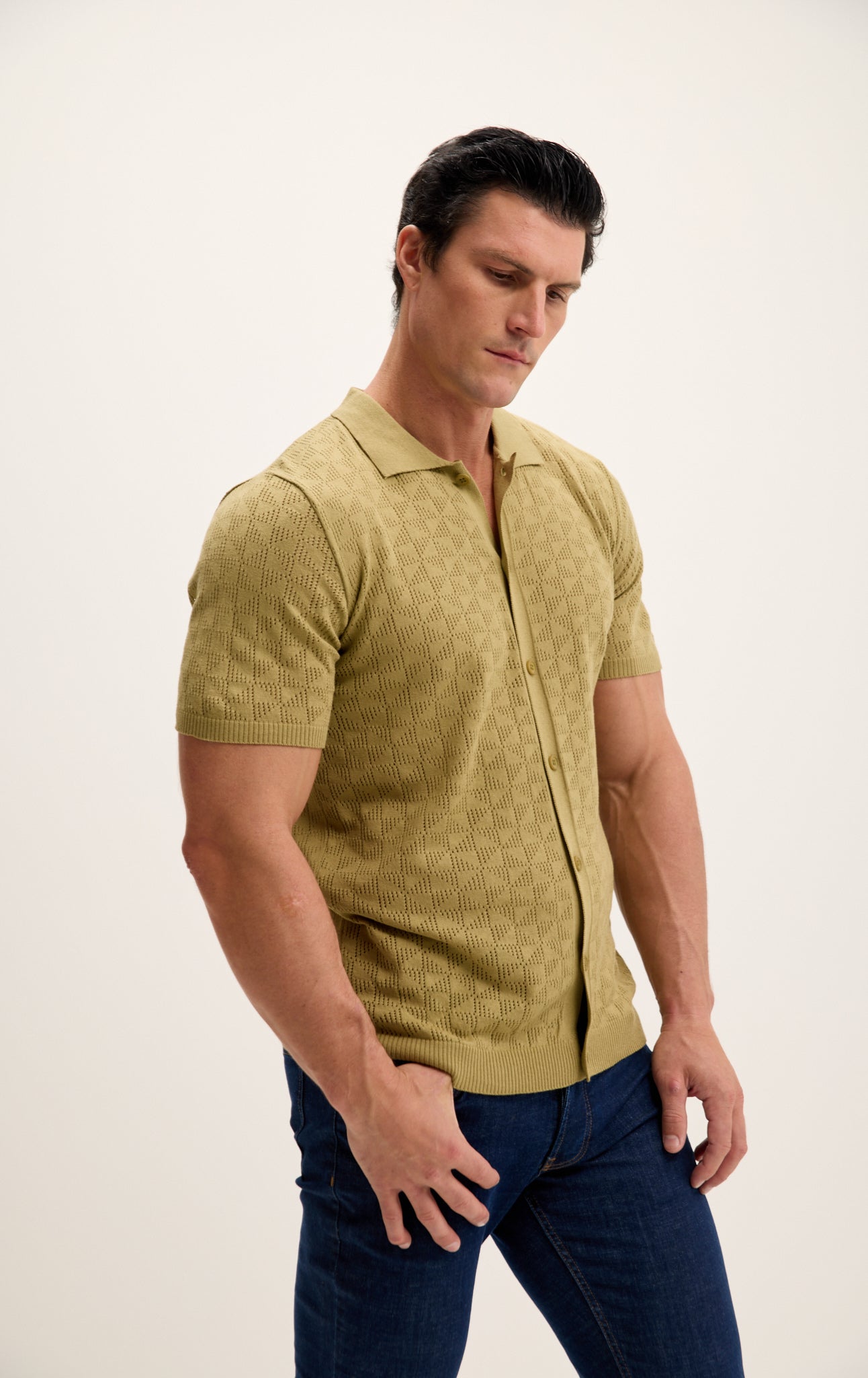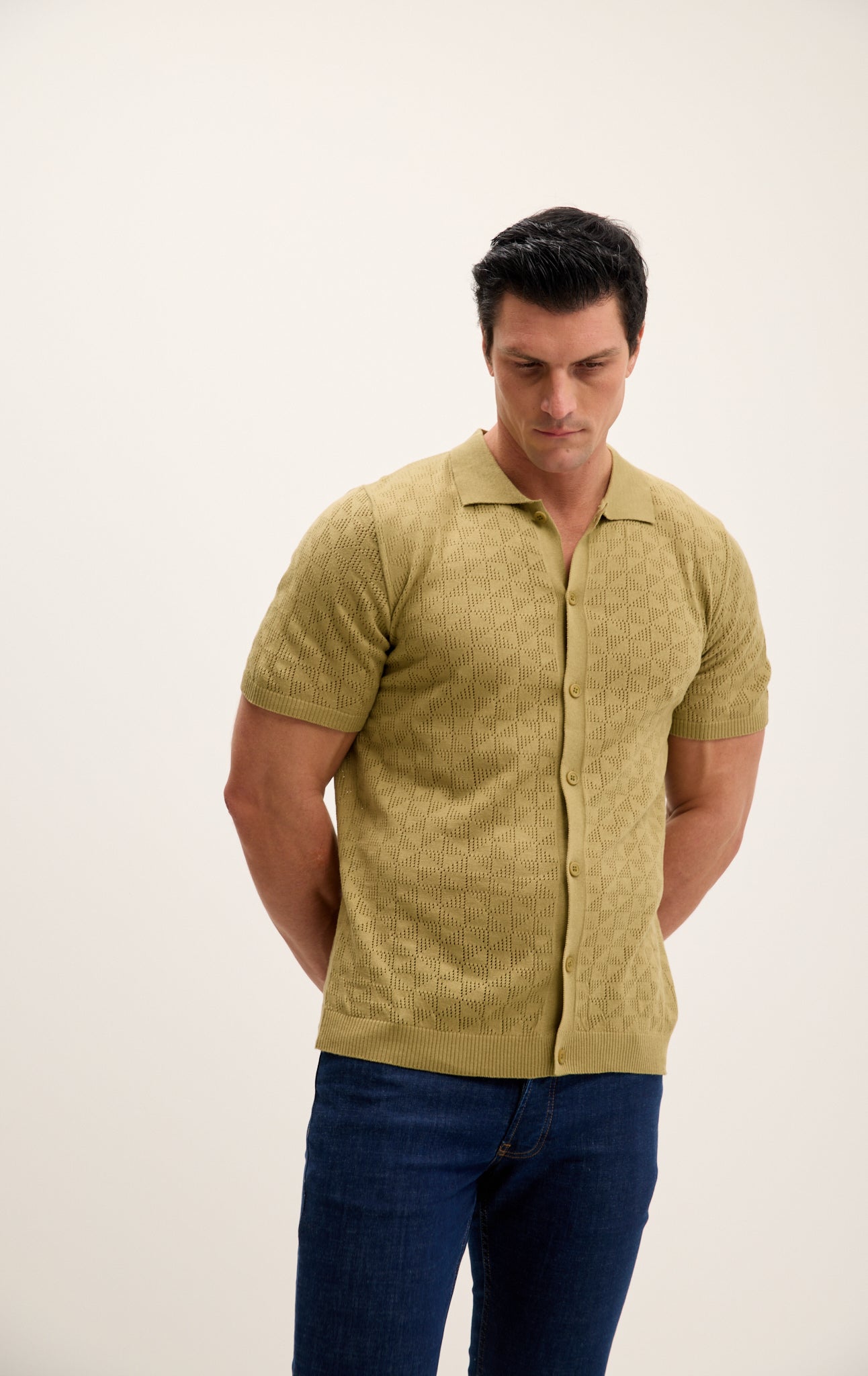 Geometric Crochet Knit Polo - Light Green