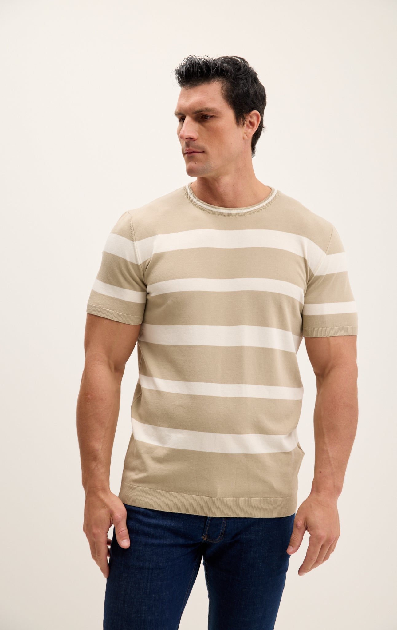 Available in a range of colors and stripe variations, this shirt is perfect for adding a pop of color and pattern to your wardrobe. Elevate your style with our Crew-neck Knitted Striped Shirt and make a statement wherever you go.