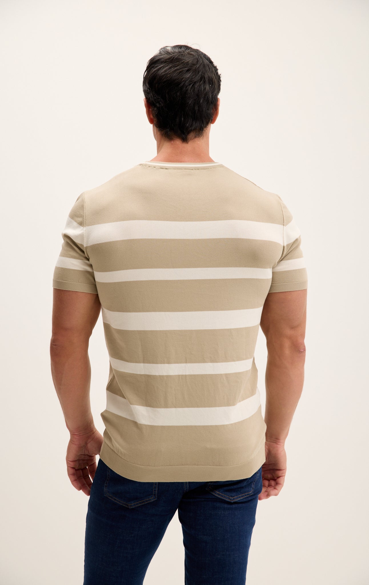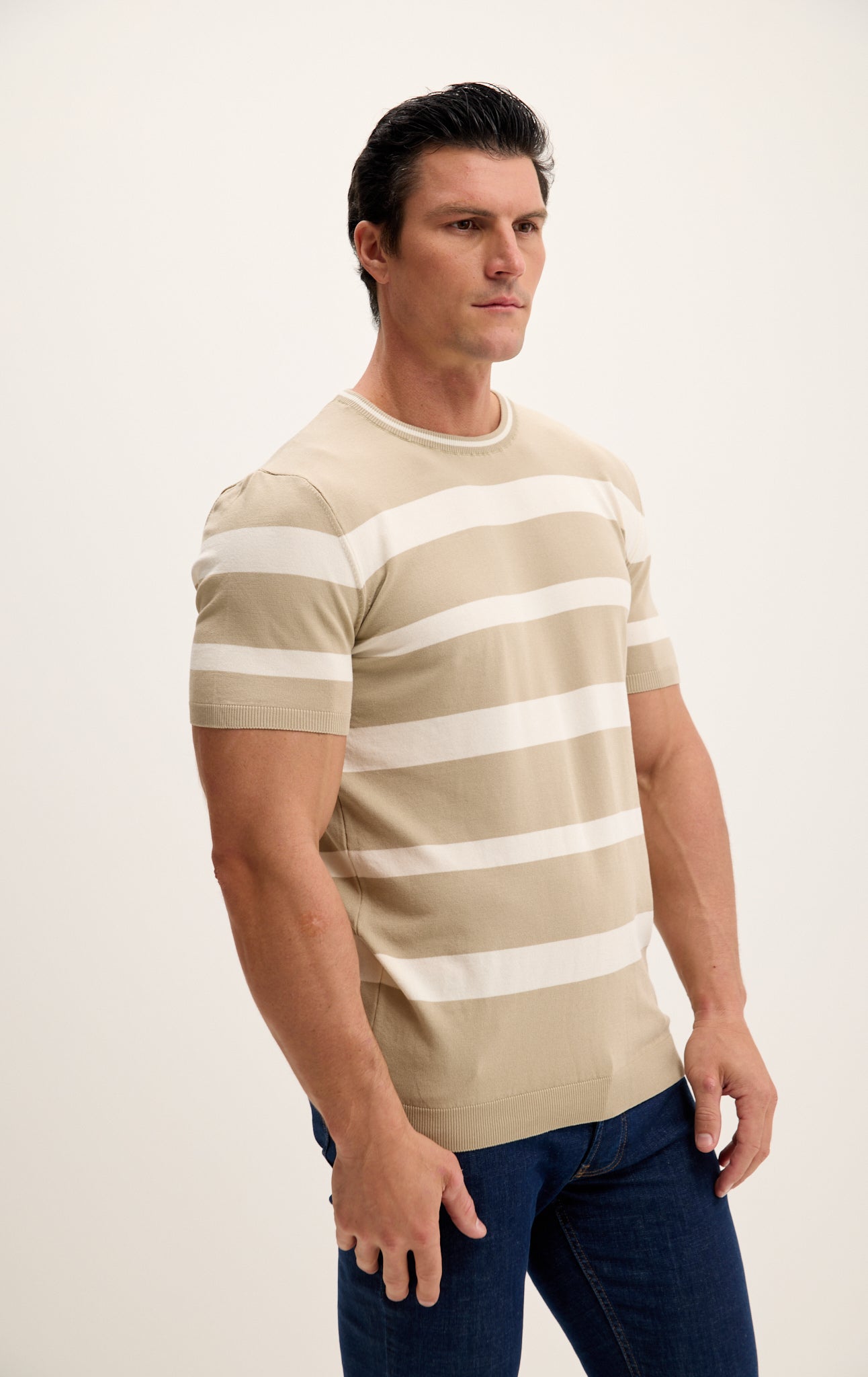 With its fitted silhouette and stretchy knit fabric, our Crew-neck Knitted Striped Shirt offers a comfortable and flattering fit that hugs the body without feeling restrictive. Pair it with jeans or chinos for a casual daytime look, or dress it up with trousers or a blazer for a more refined ensemble.