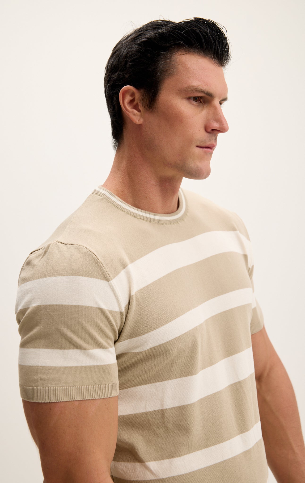 The knitted construction offers both warmth and breathability, making it suitable for year-round wear. The crew neckline provides a clean and polished finish, while the striped pattern adds visual interest and personality to your outfit.