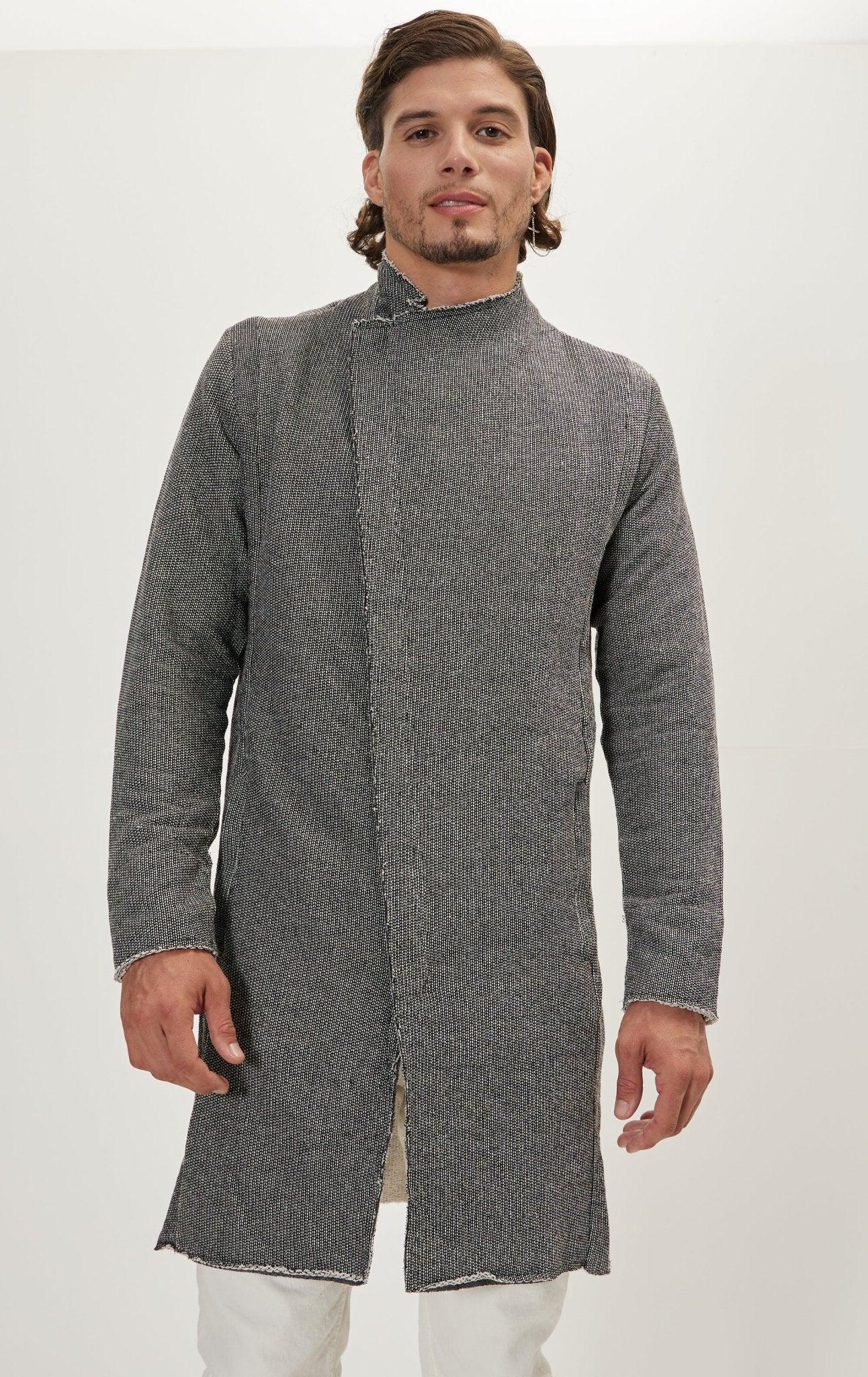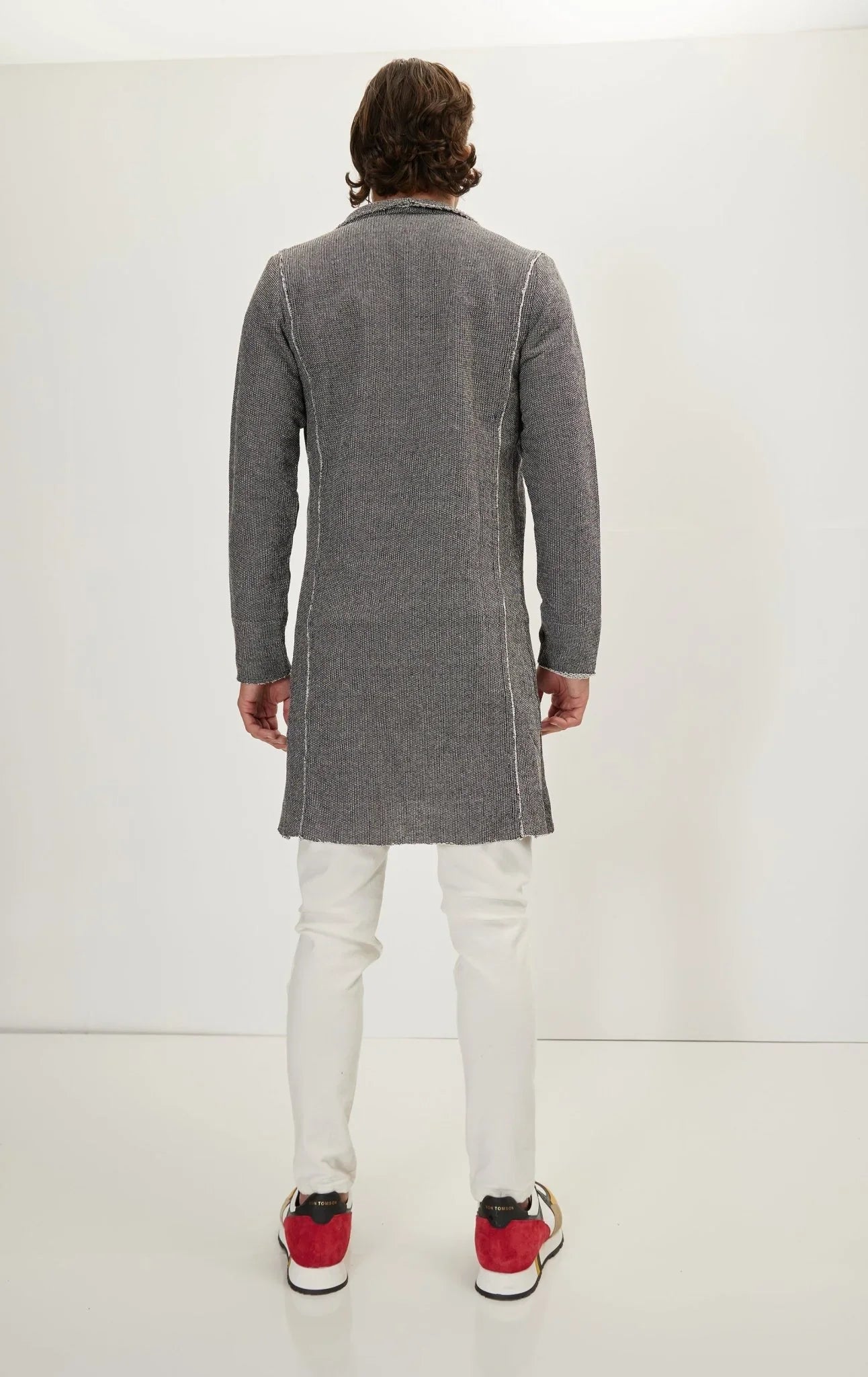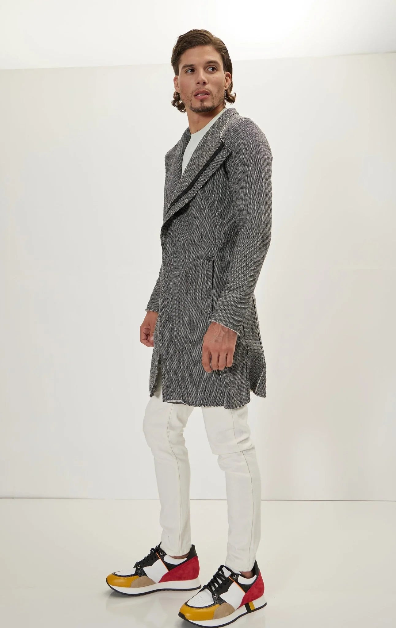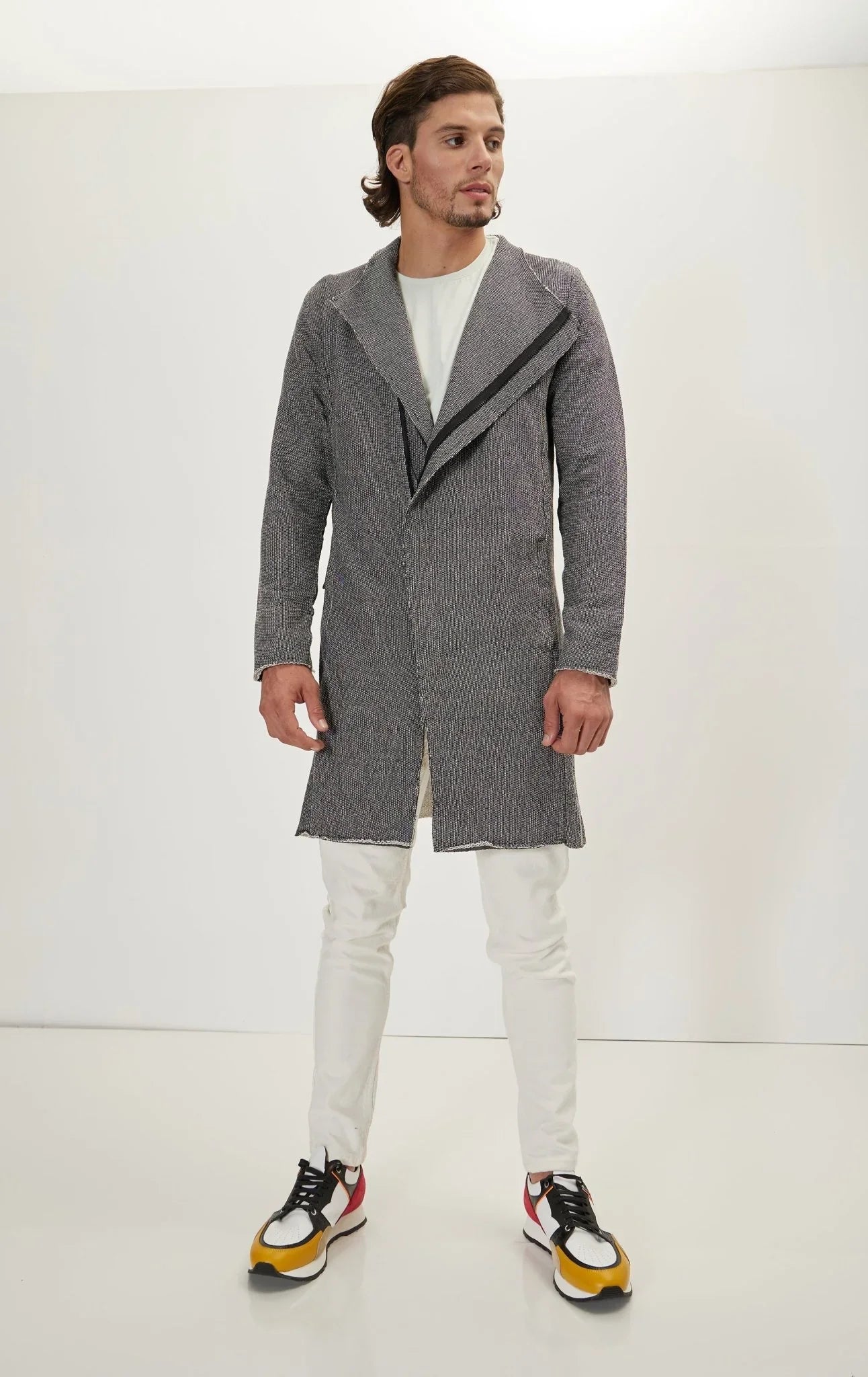Introducing the Ron Tomson Rebel Long Cardigan, a stylish and sustainable addition to your wardrobe. Crafted from a blend of recycled cotton and polyester, this long-line asymmetric cardigan embodies both fashion and eco-consciousness.