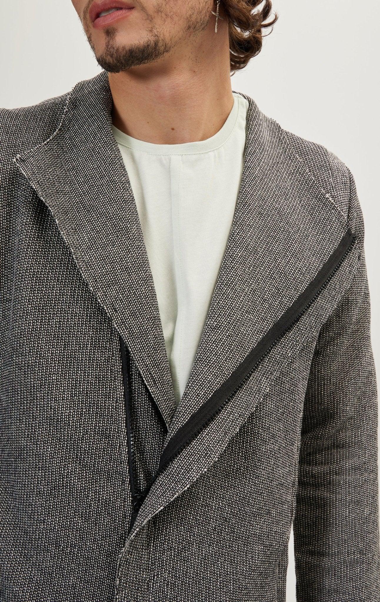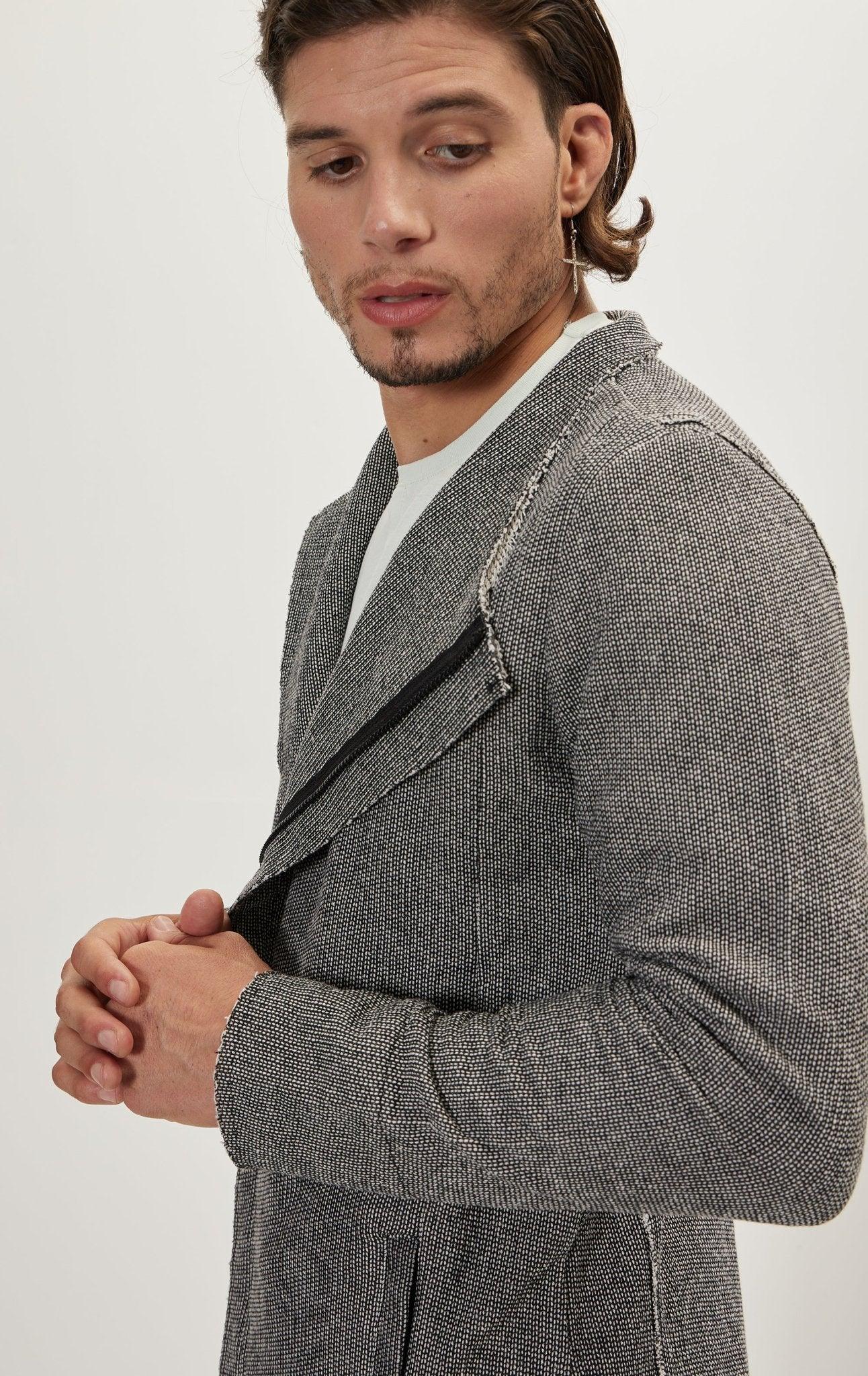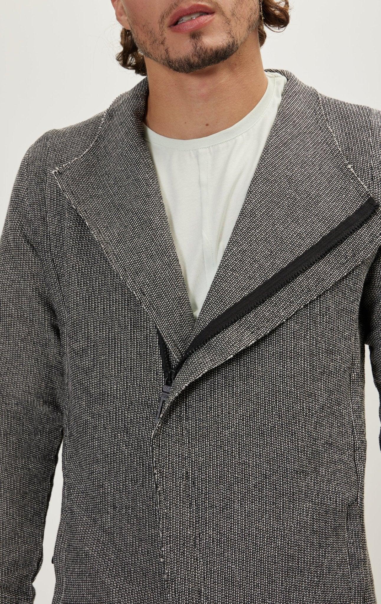 Zipper Closure Asymmetric Rebel Cardigan - Black White