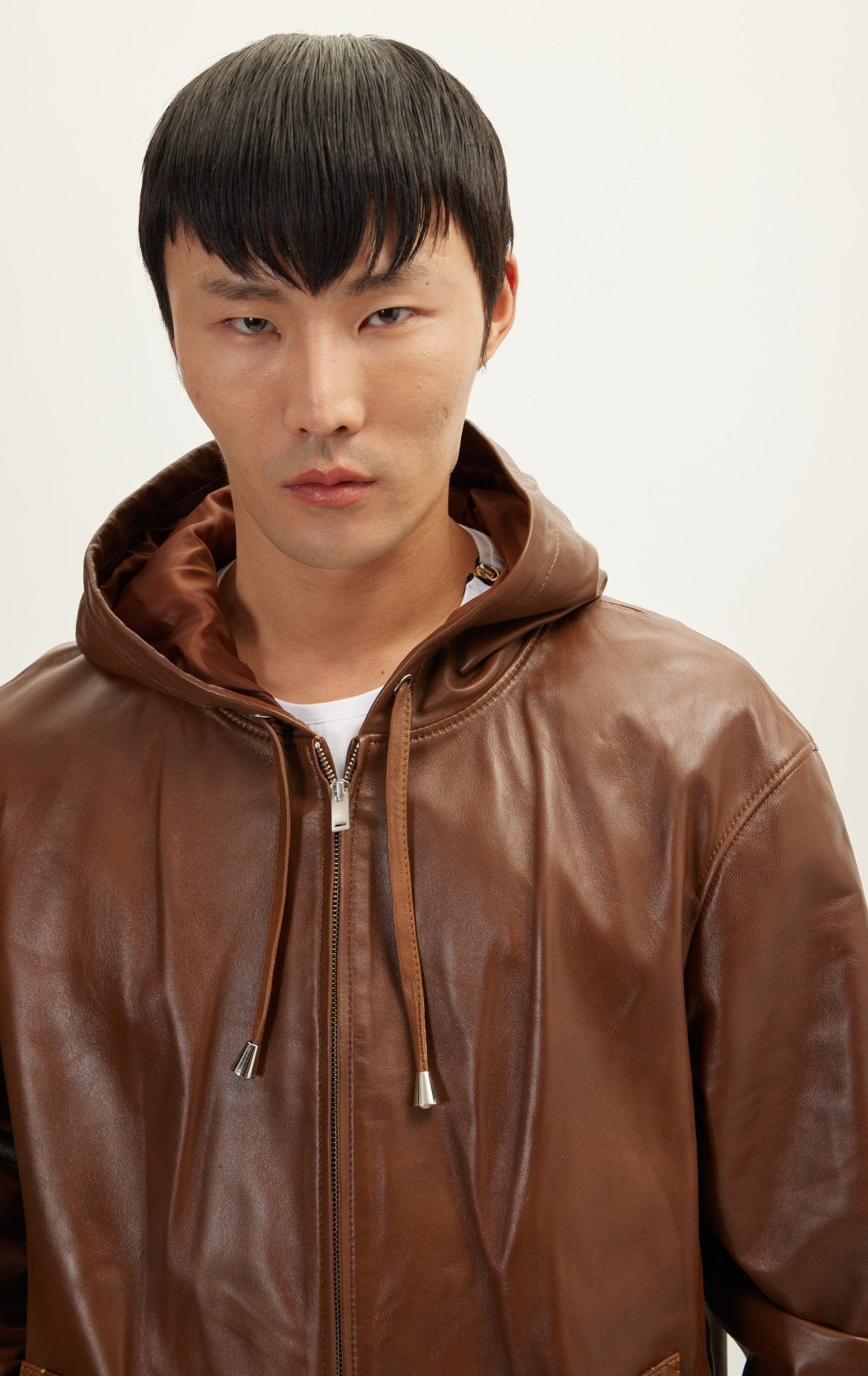 Available in a range of colors, from classic black or brown to more bold hues, the Genuine Leather Hooded Sweatshirt allows for personalization to match your individual style preferences. With its combination of luxury, comfort, and versatility, it's sure to become a standout piece in your wardrobe.