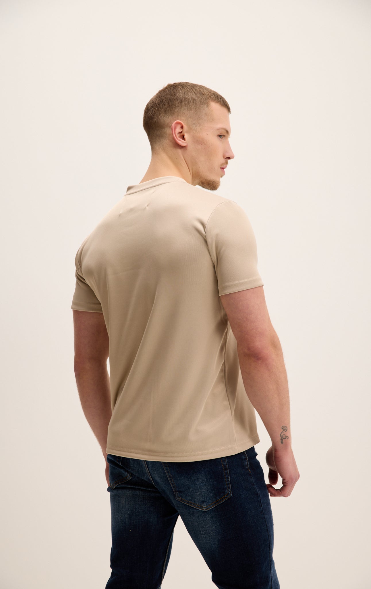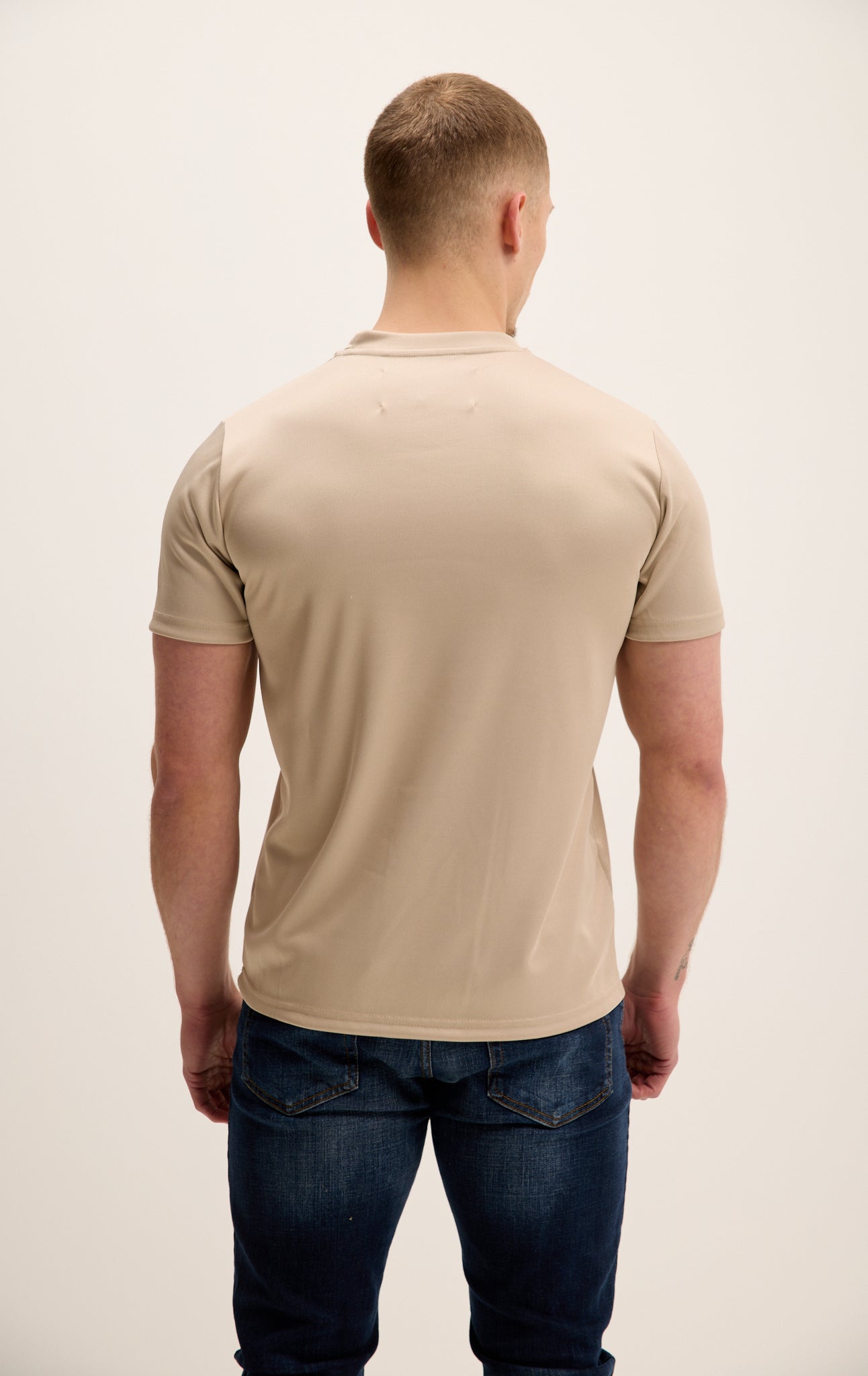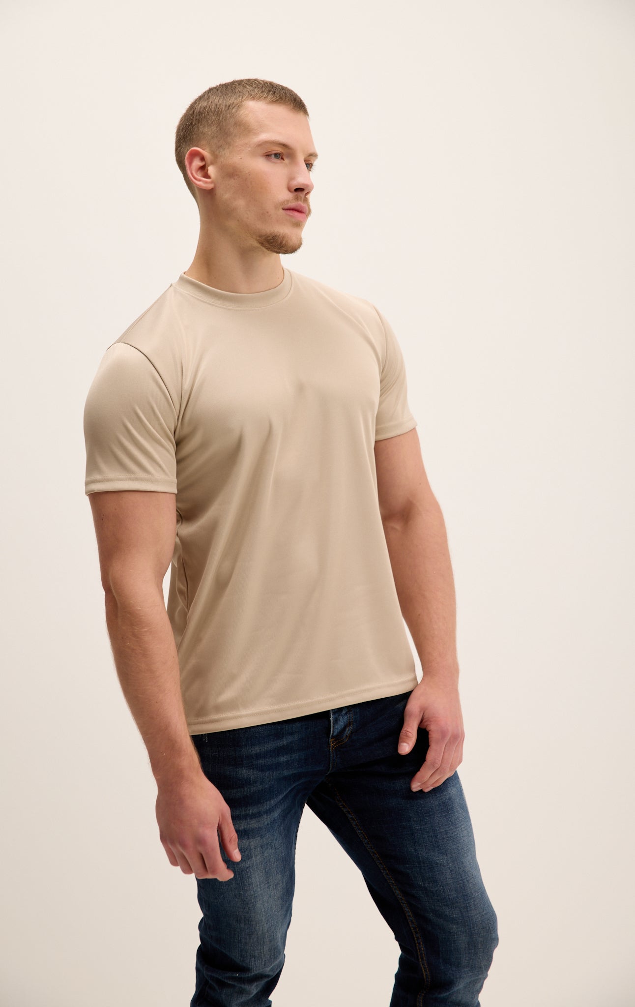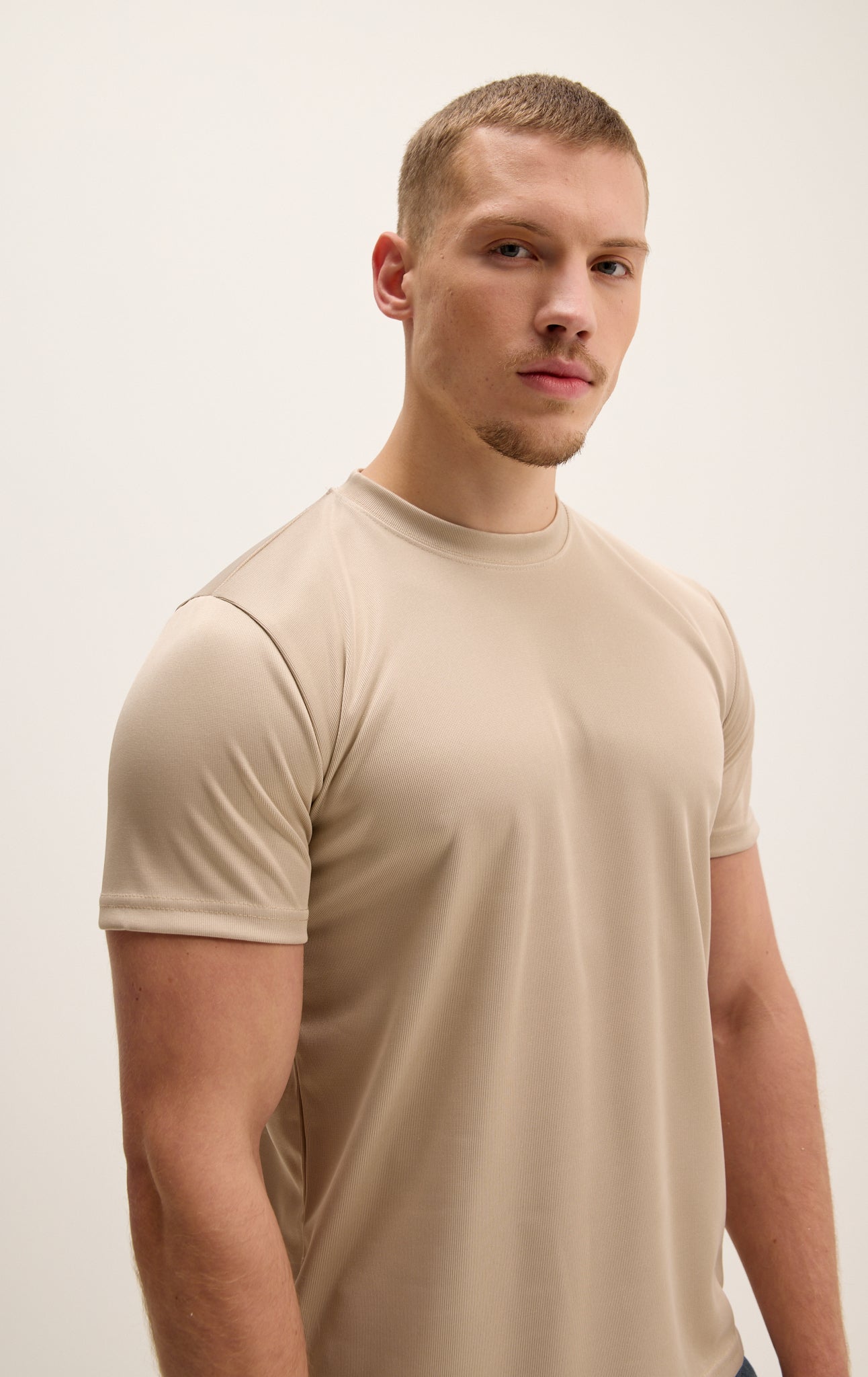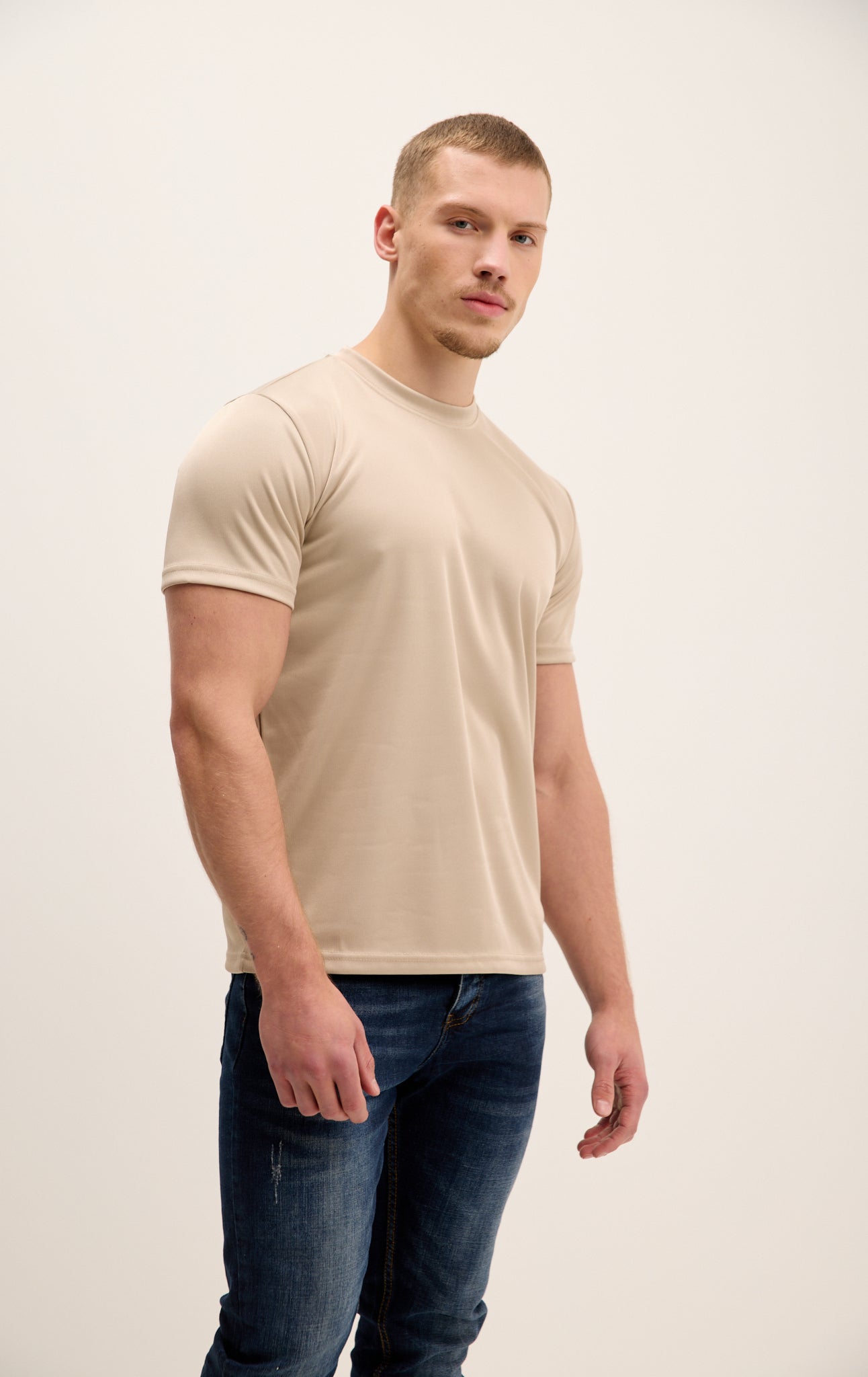 Double Knitted Luxurious Glow Crew Neck T-Shirt - Beige