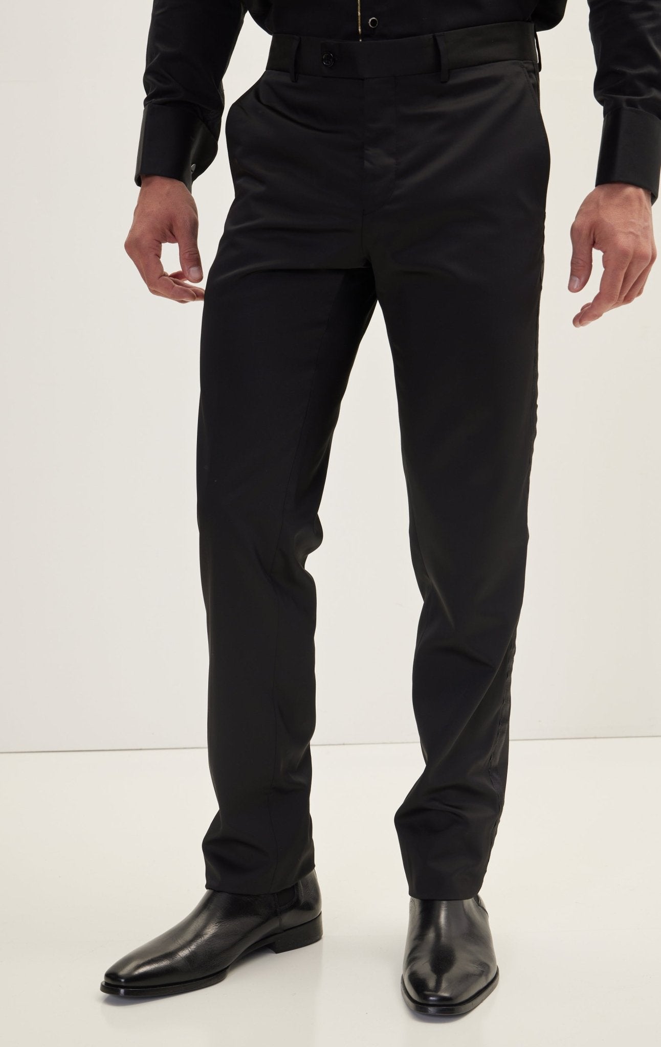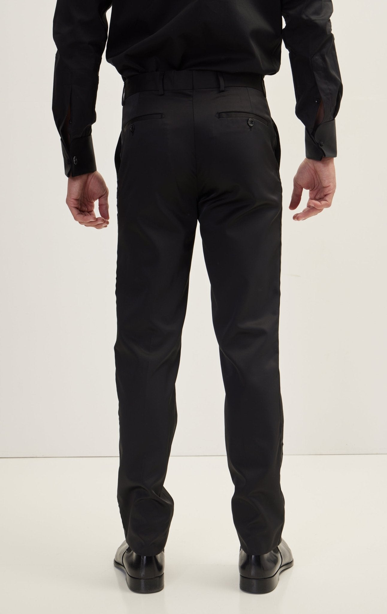 Slim Fit Striped Tuxedo Pants - Black