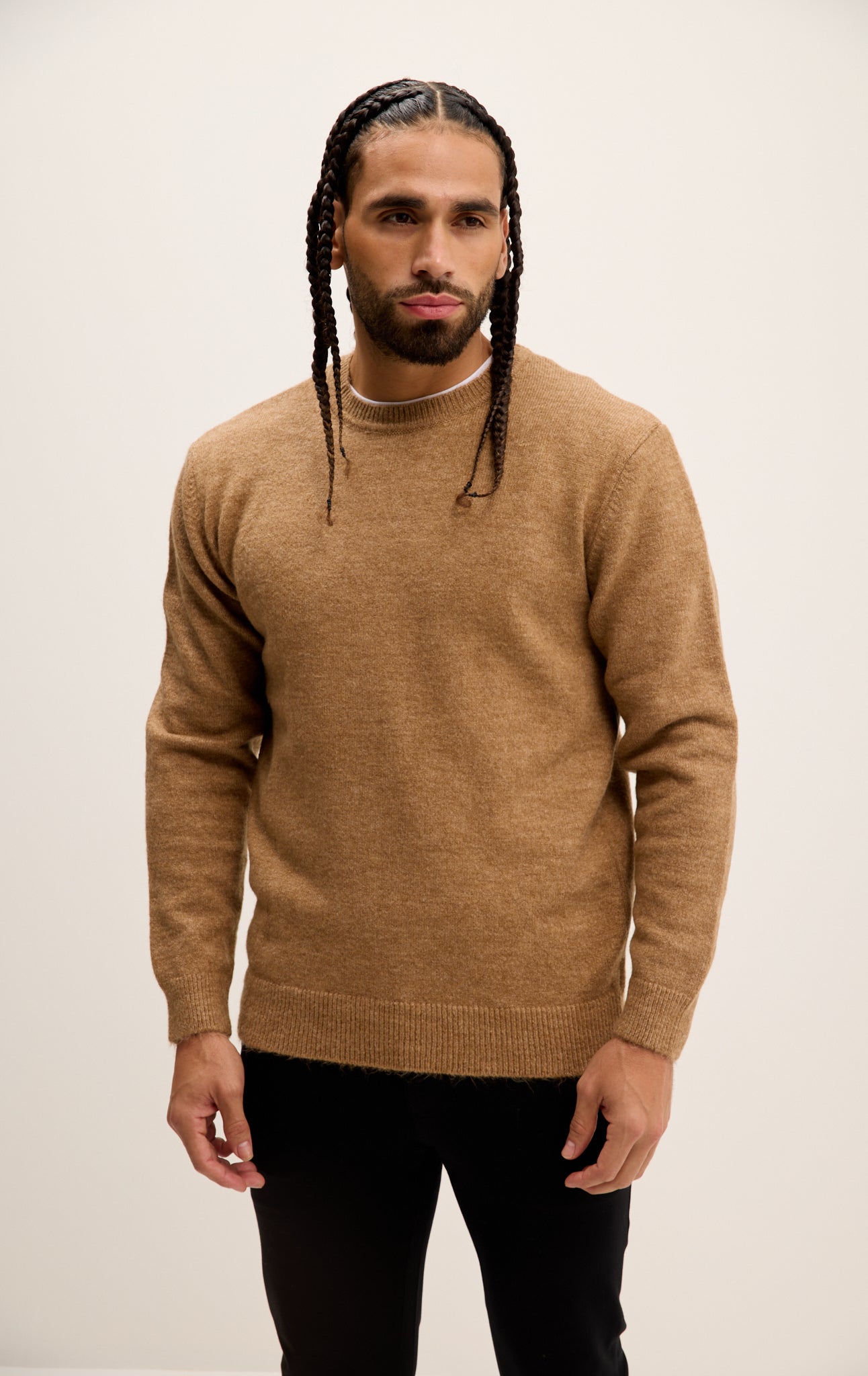 Crew Neck Preppy Fit Sweater - Camel