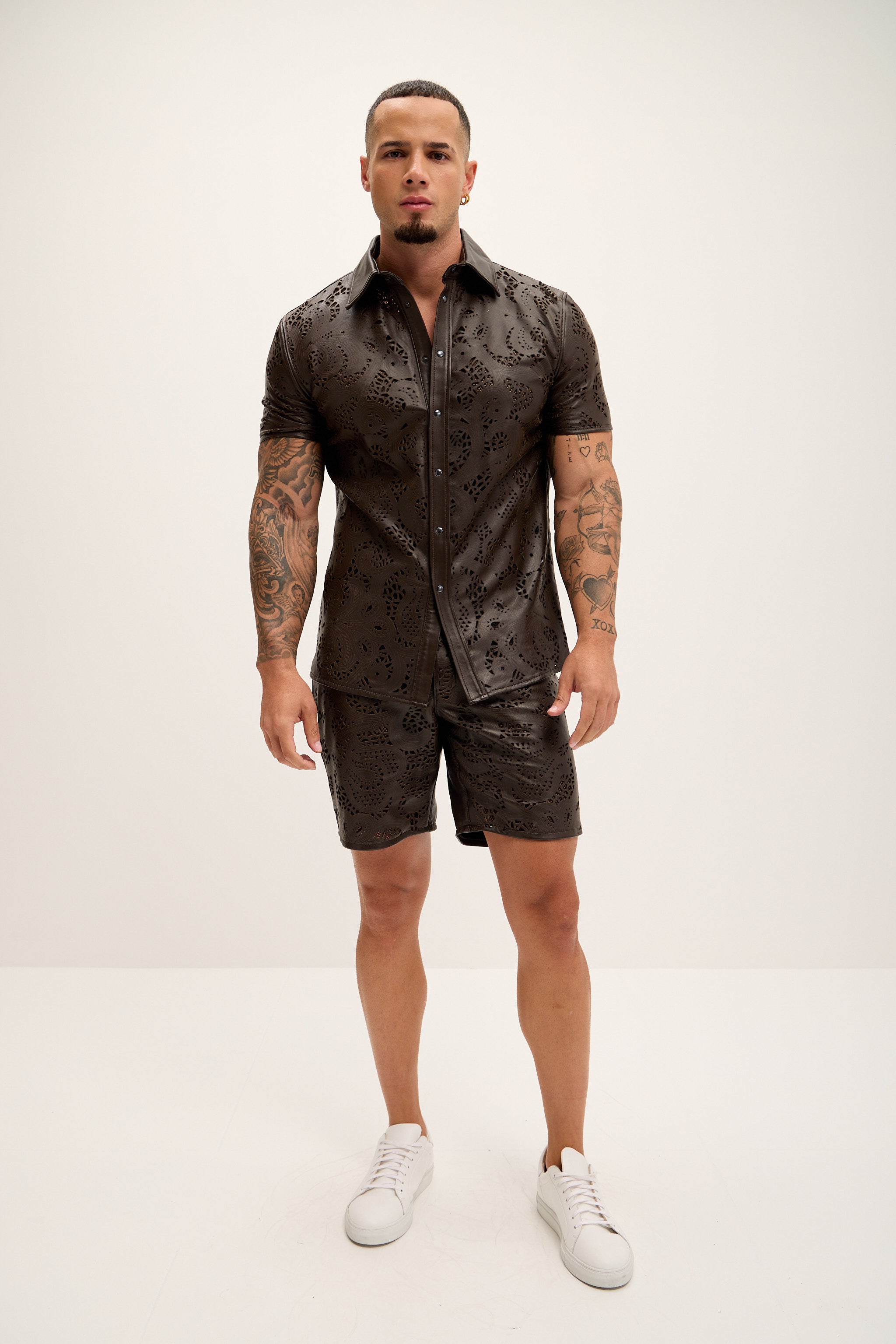 Cut-out Laser Leather Shirt - Dark Brown