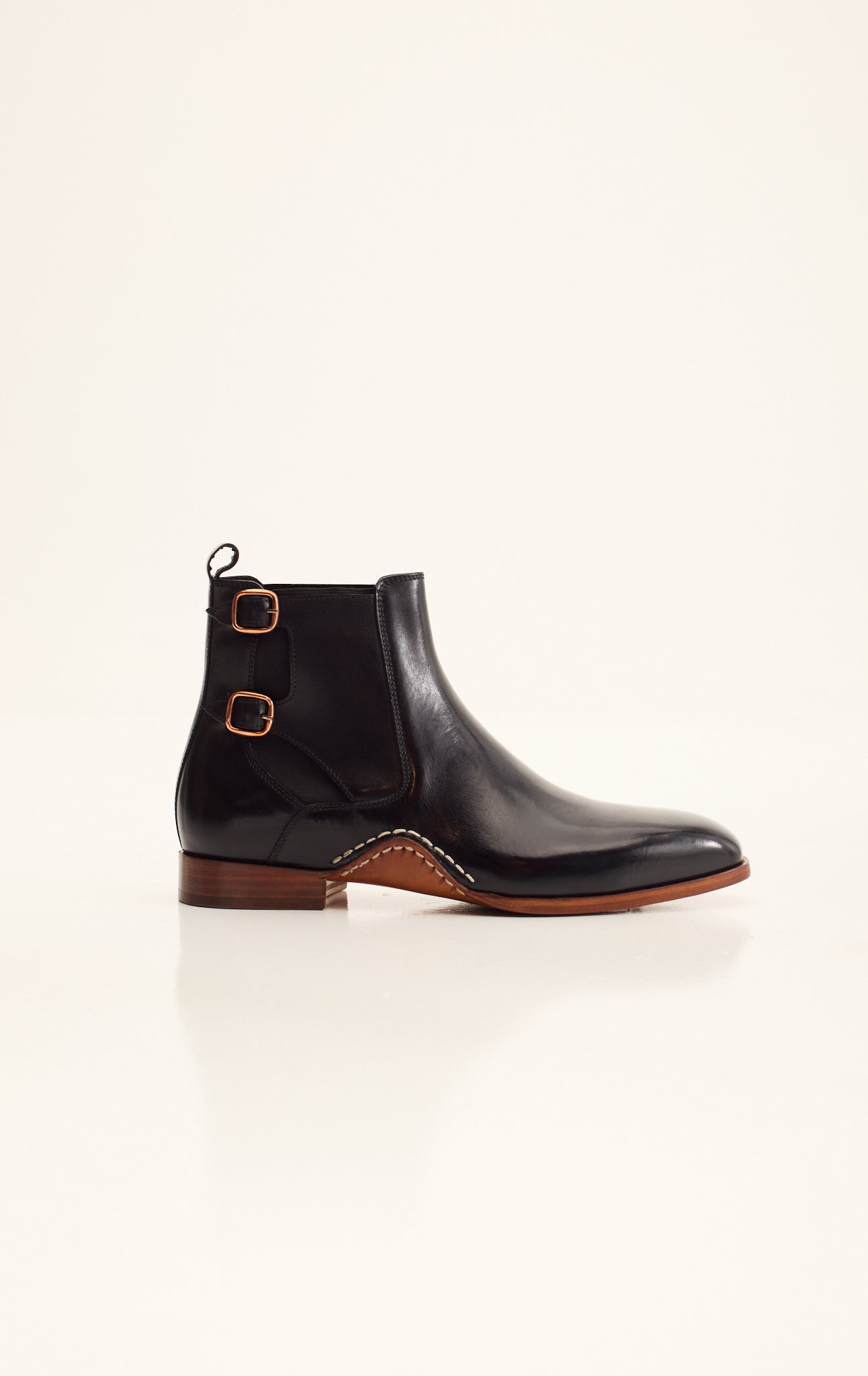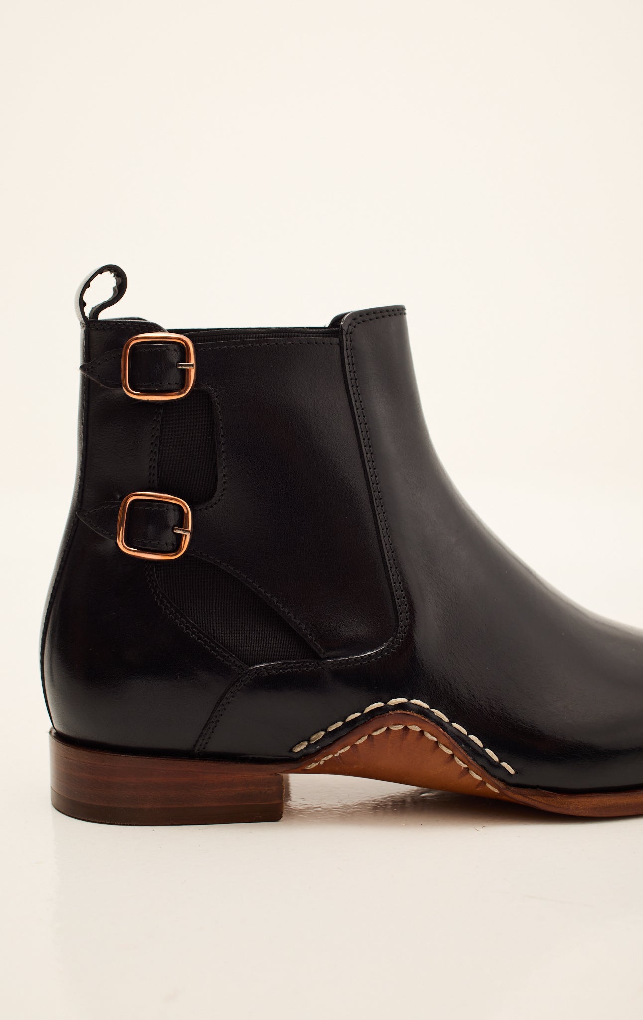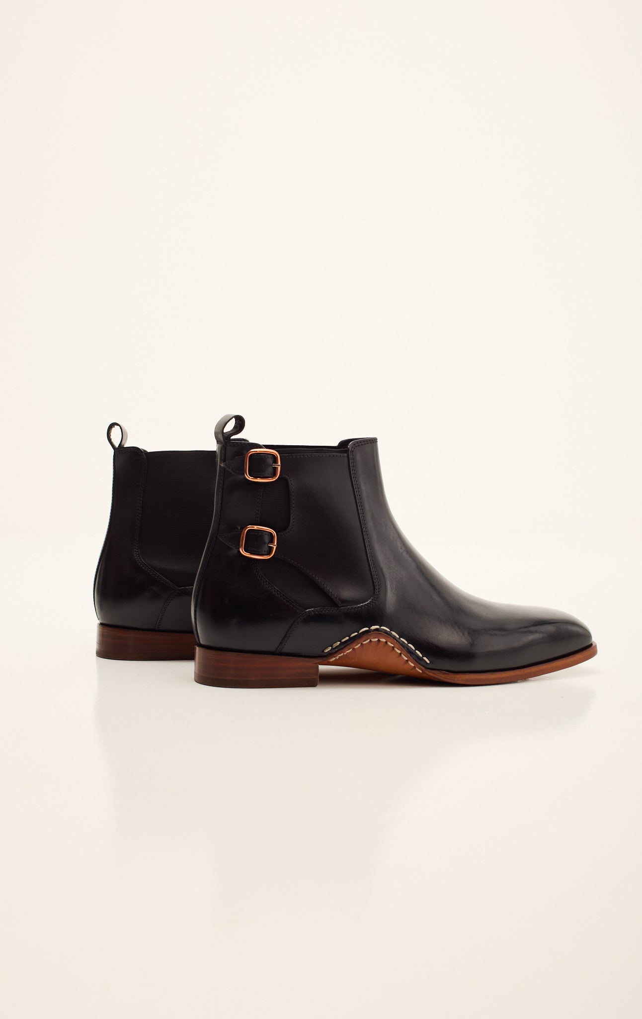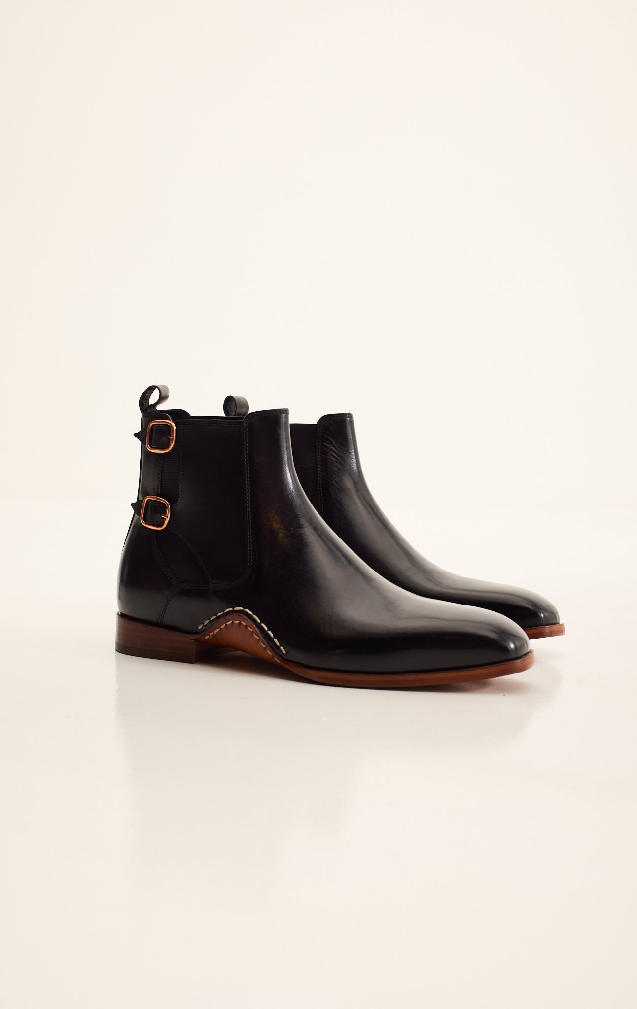 Double-Buckle Italian Leather Chelsea Boot - Black