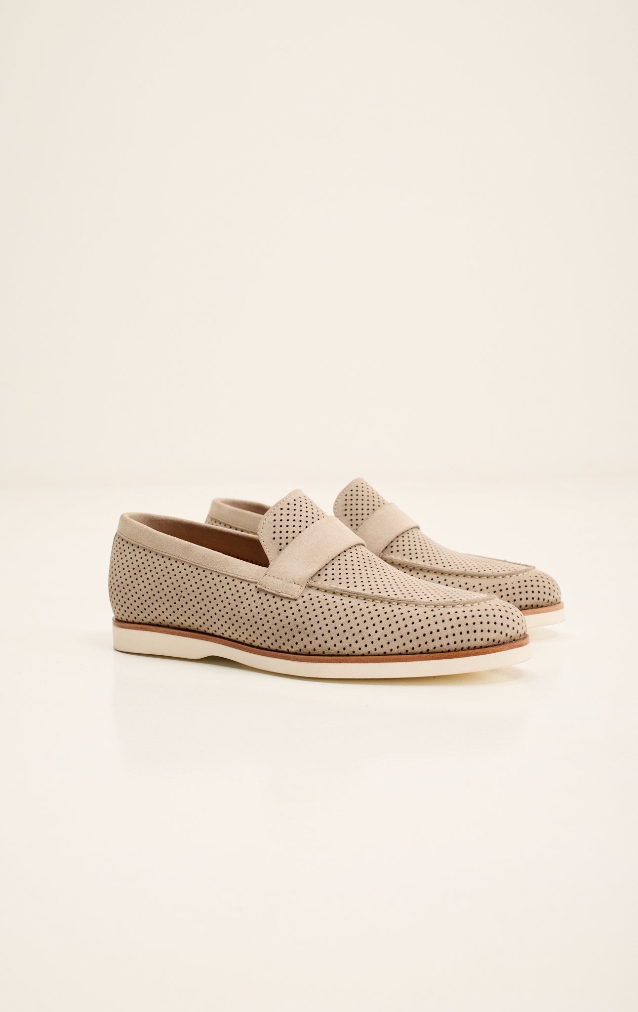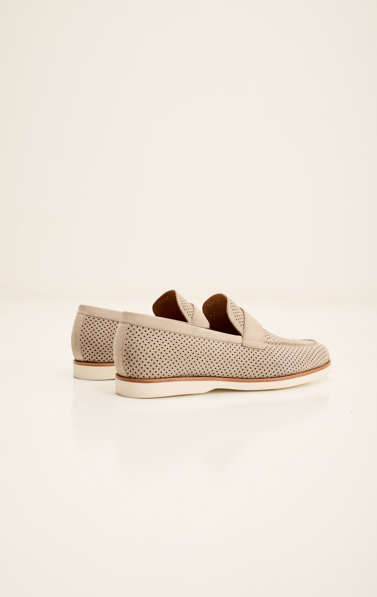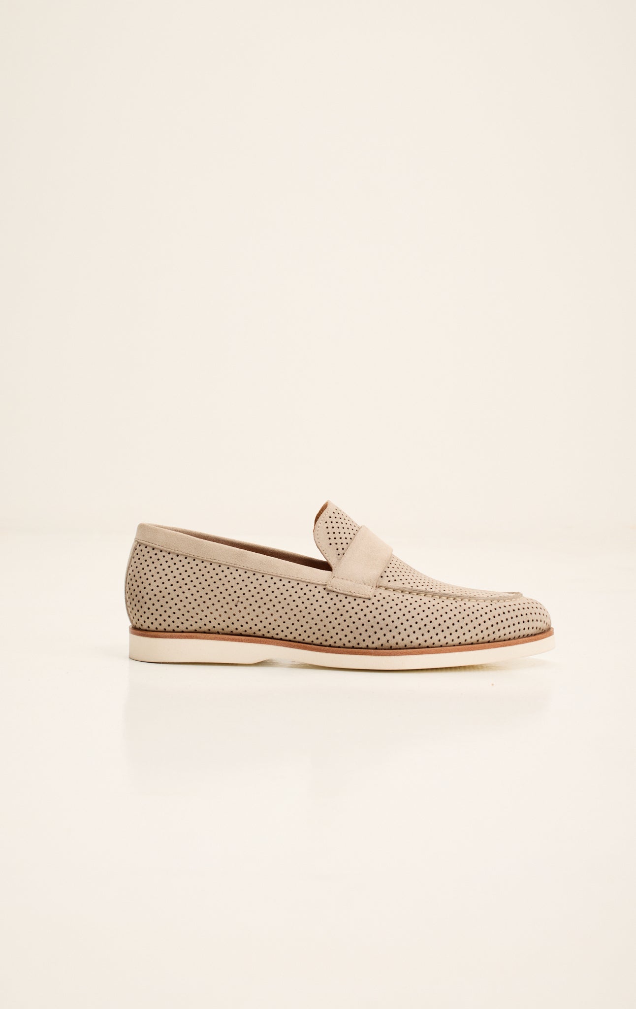 Perforated Nubuck Leather Shoes with Italian Rubber Soles - Beige Suede