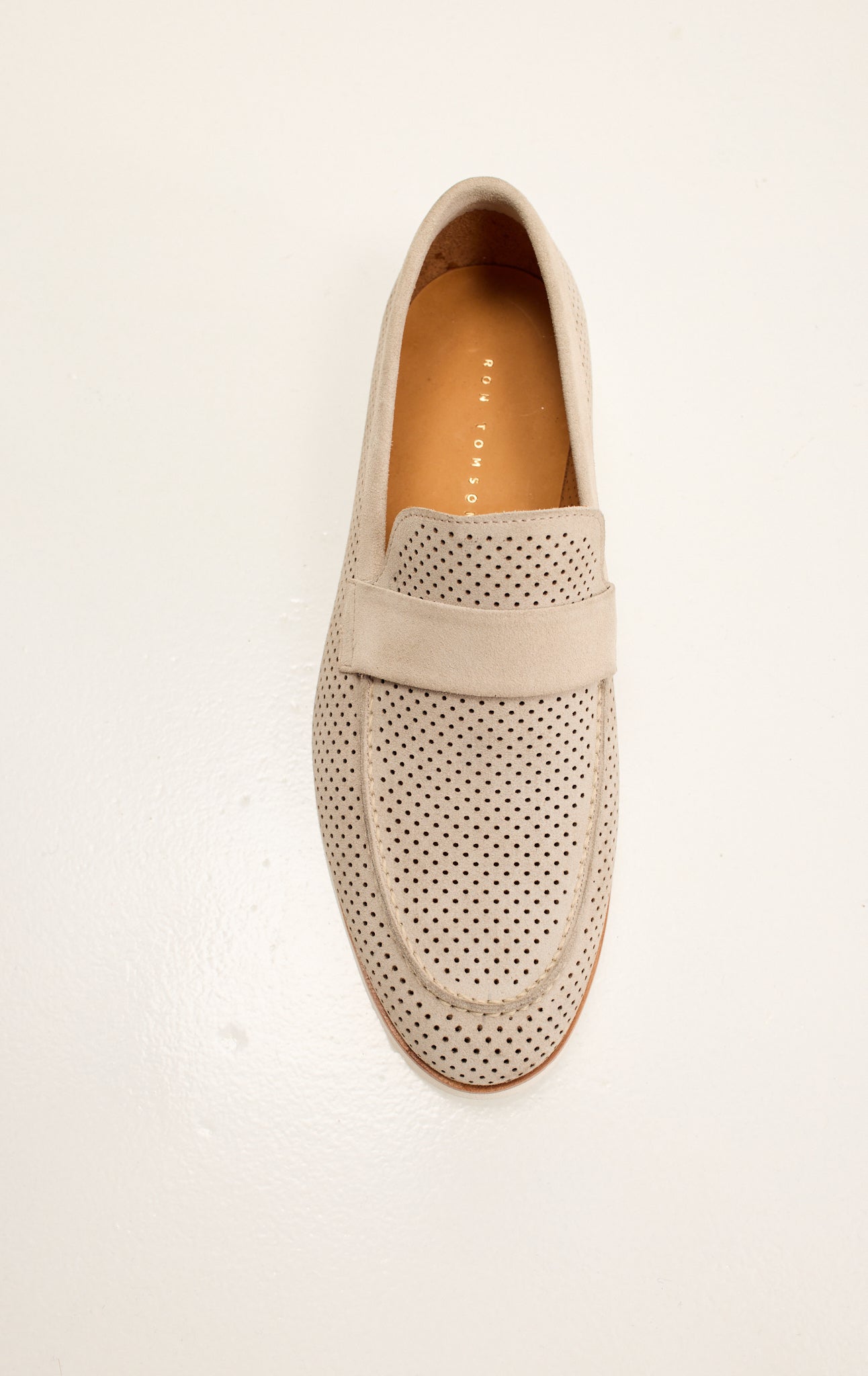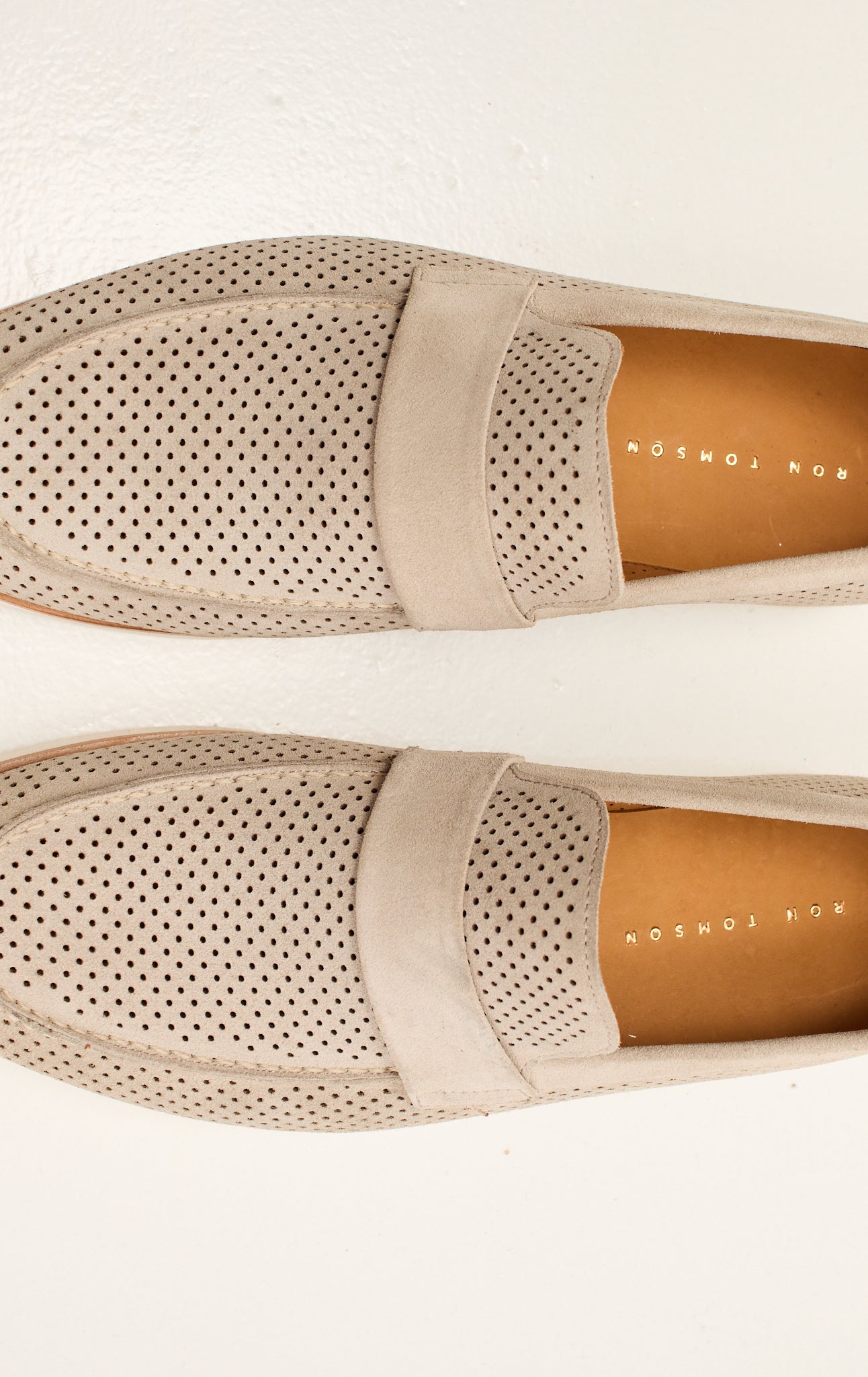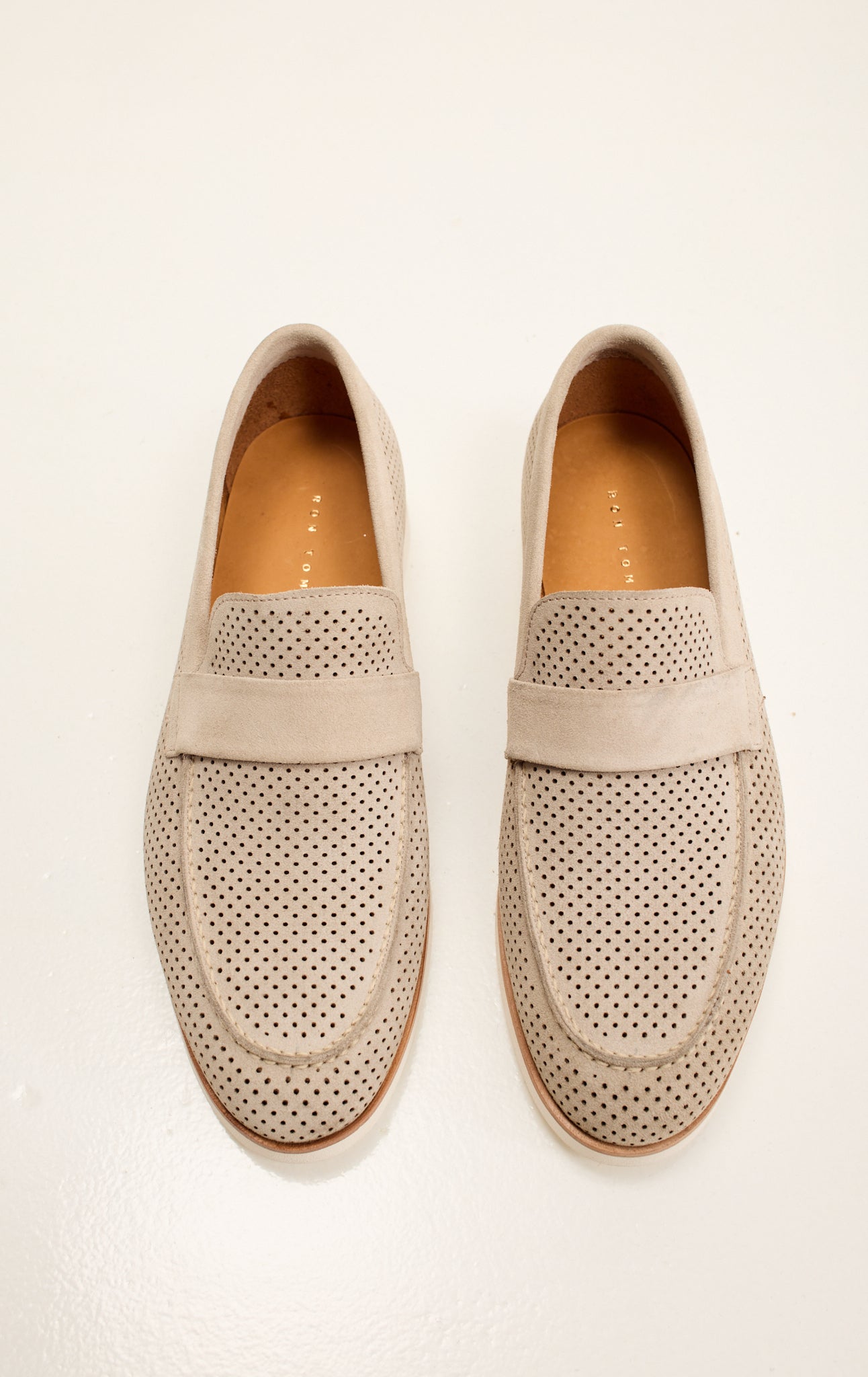 Perforated Nubuck Leather Shoes with Italian Rubber Soles - Beige Suede