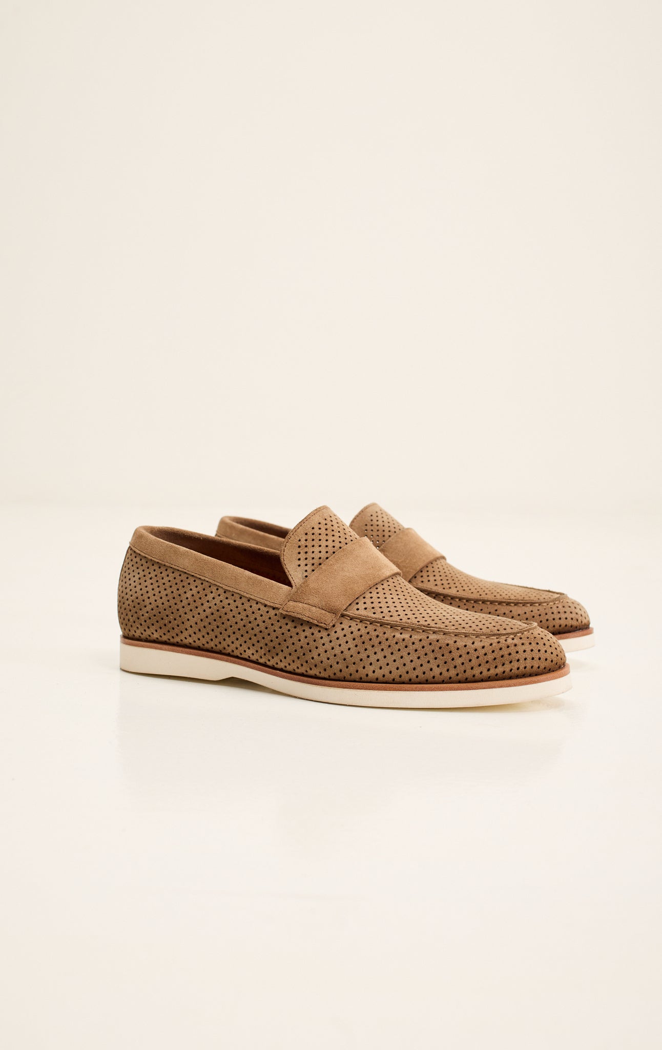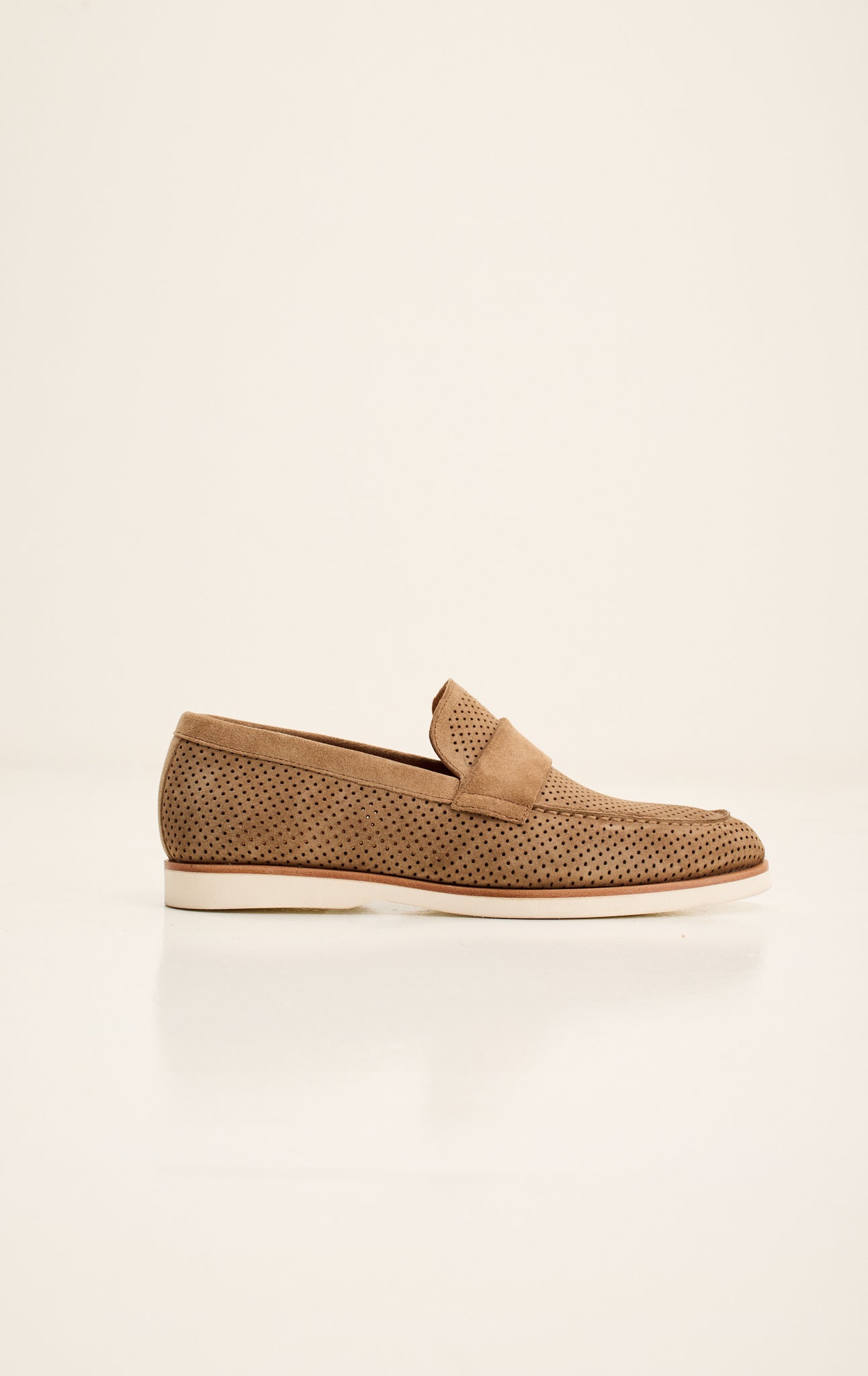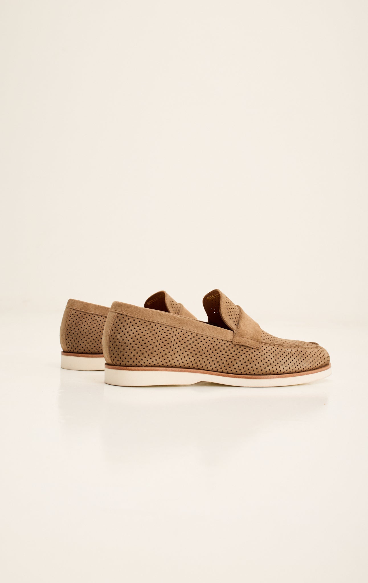 Perforated Nubuck Leather Shoes with Italian Rubber Soles - Taupe Suede