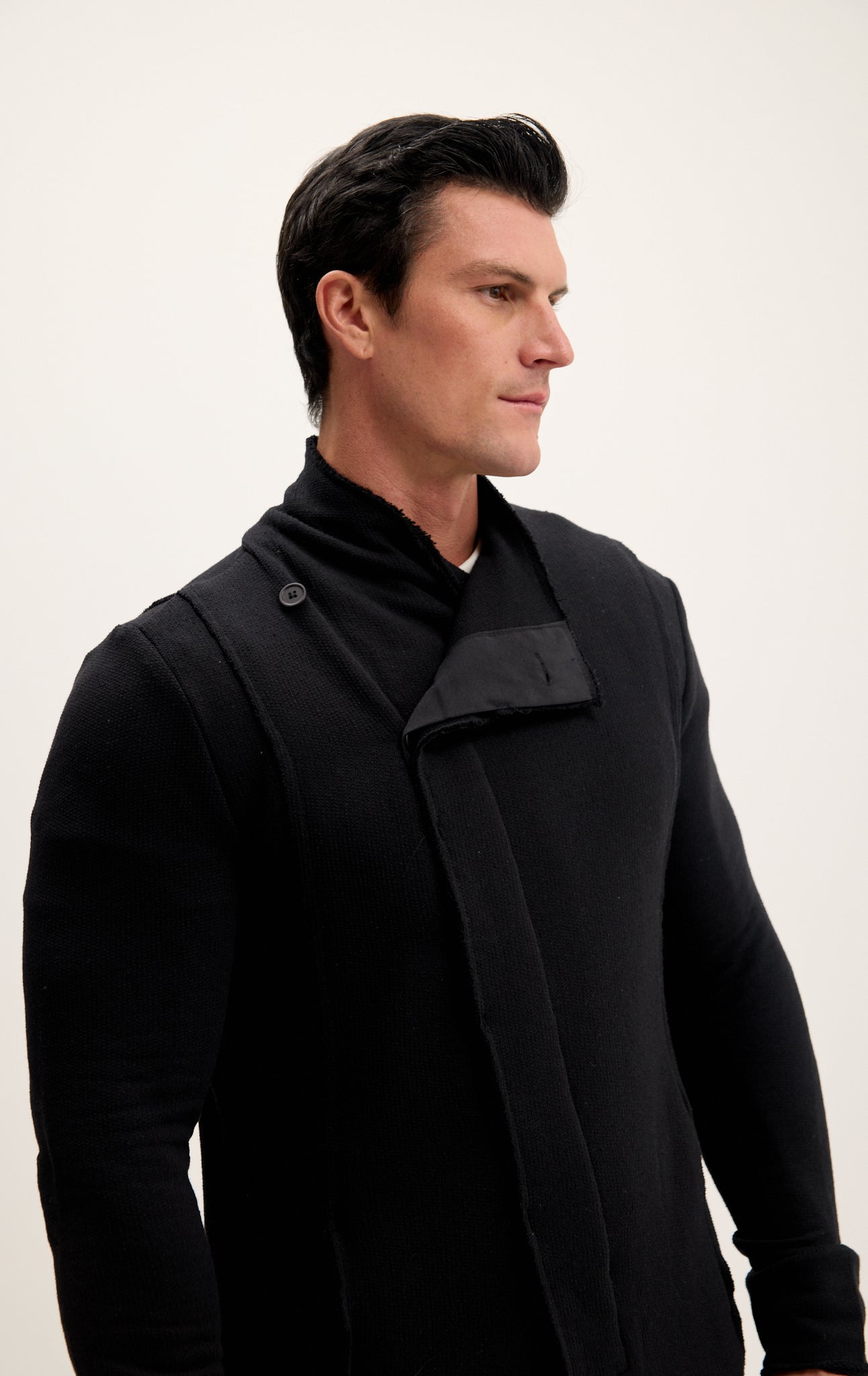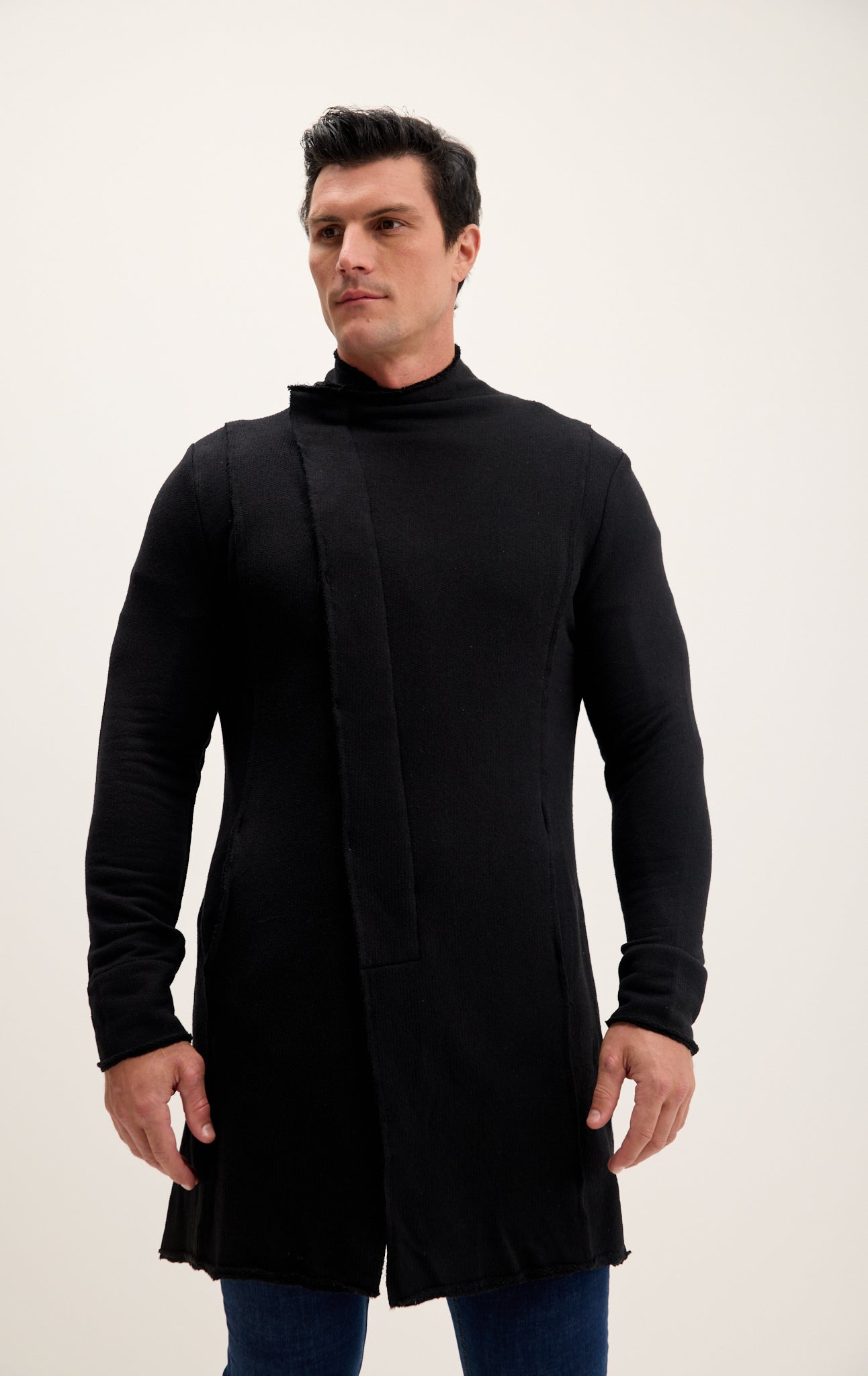 Meticulously knitted to perfection, this cardigan features an elegant asymmetric hidden placket button closure, adding a touch of intrigue to its sleek silhouette. Whether worn open or closed, its versatile design lends itself effortlessly to any ensemble.