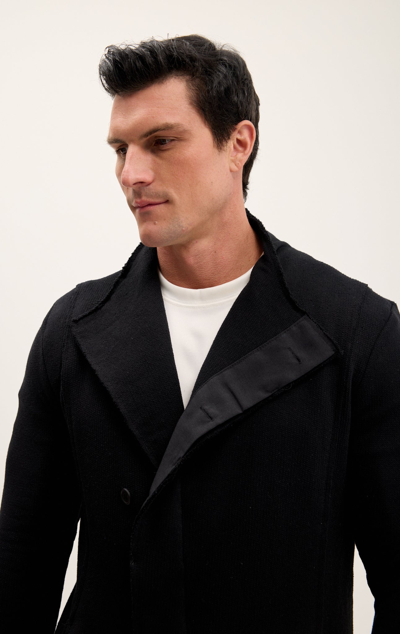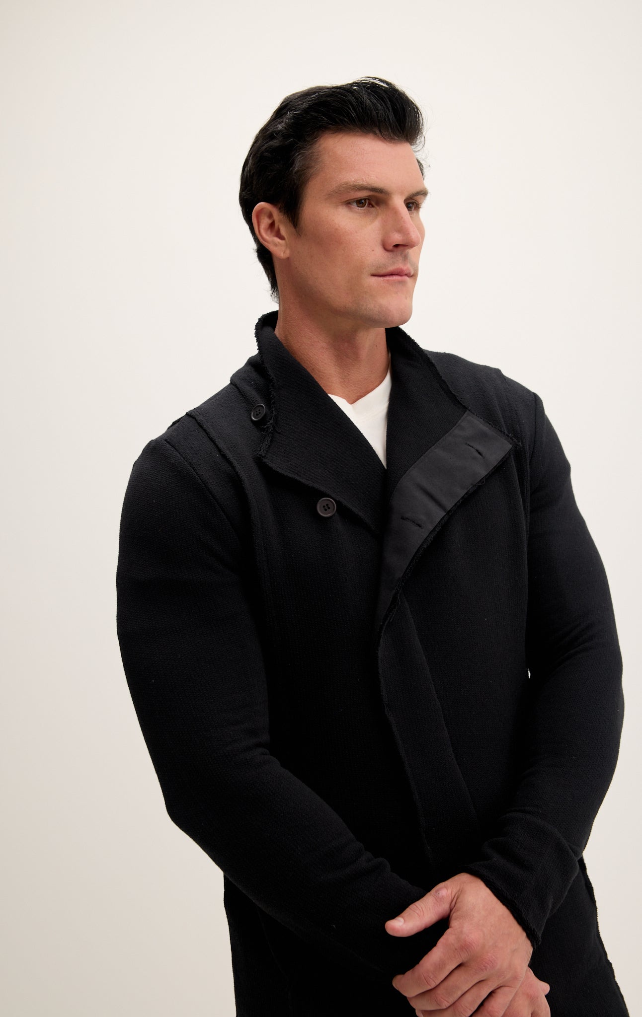 Introducing the Ron Tomson Rebel Long Cardigan, a blend of modern sophistication and sustainable fashion. Crafted with care from recycled cotton and polyester, this long-line asymmetric cardigan is a testament to style with a conscience.