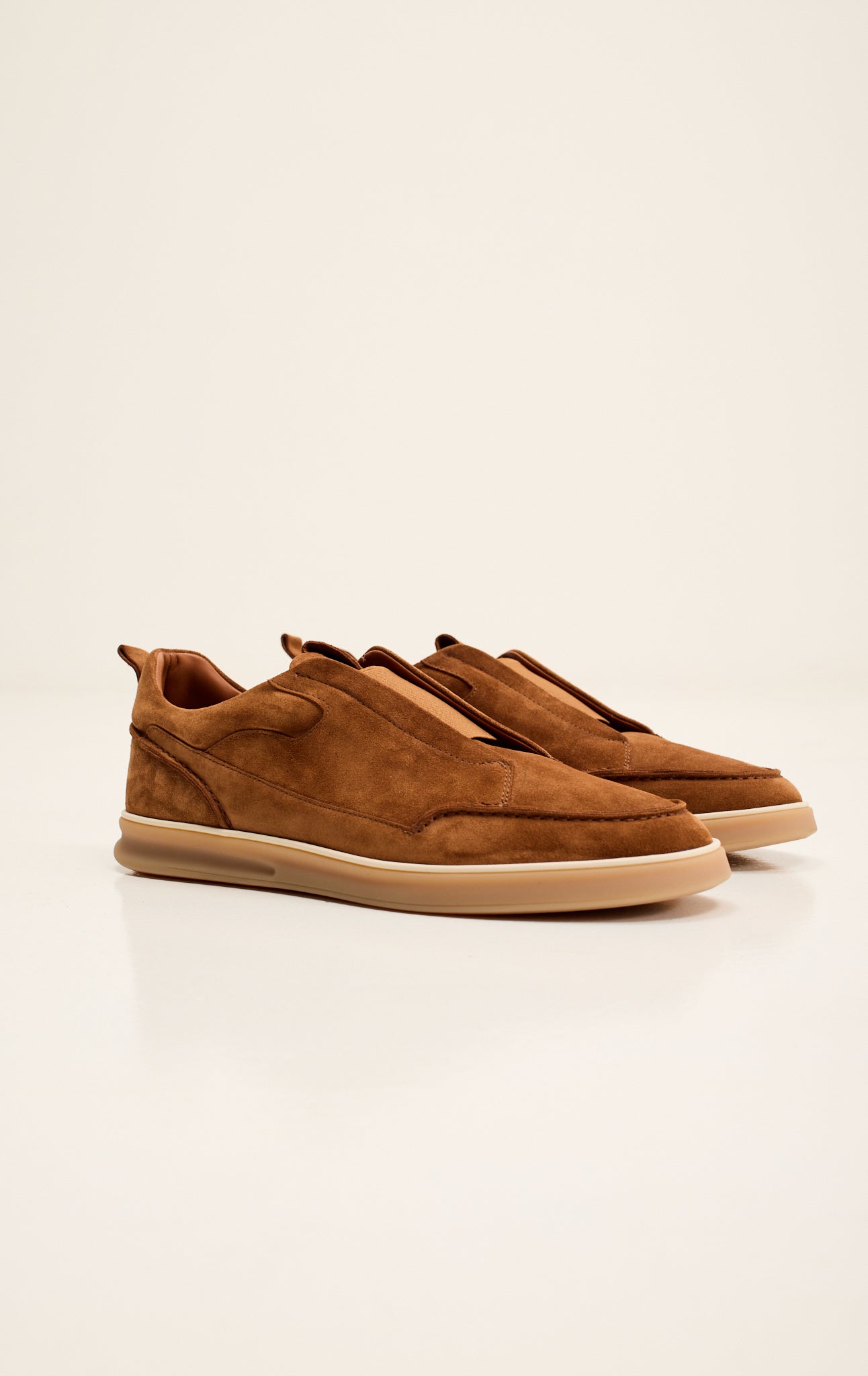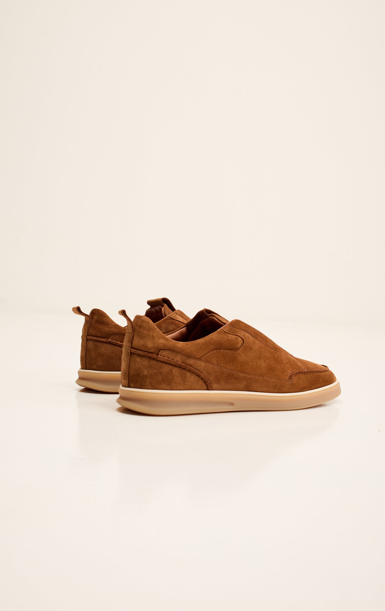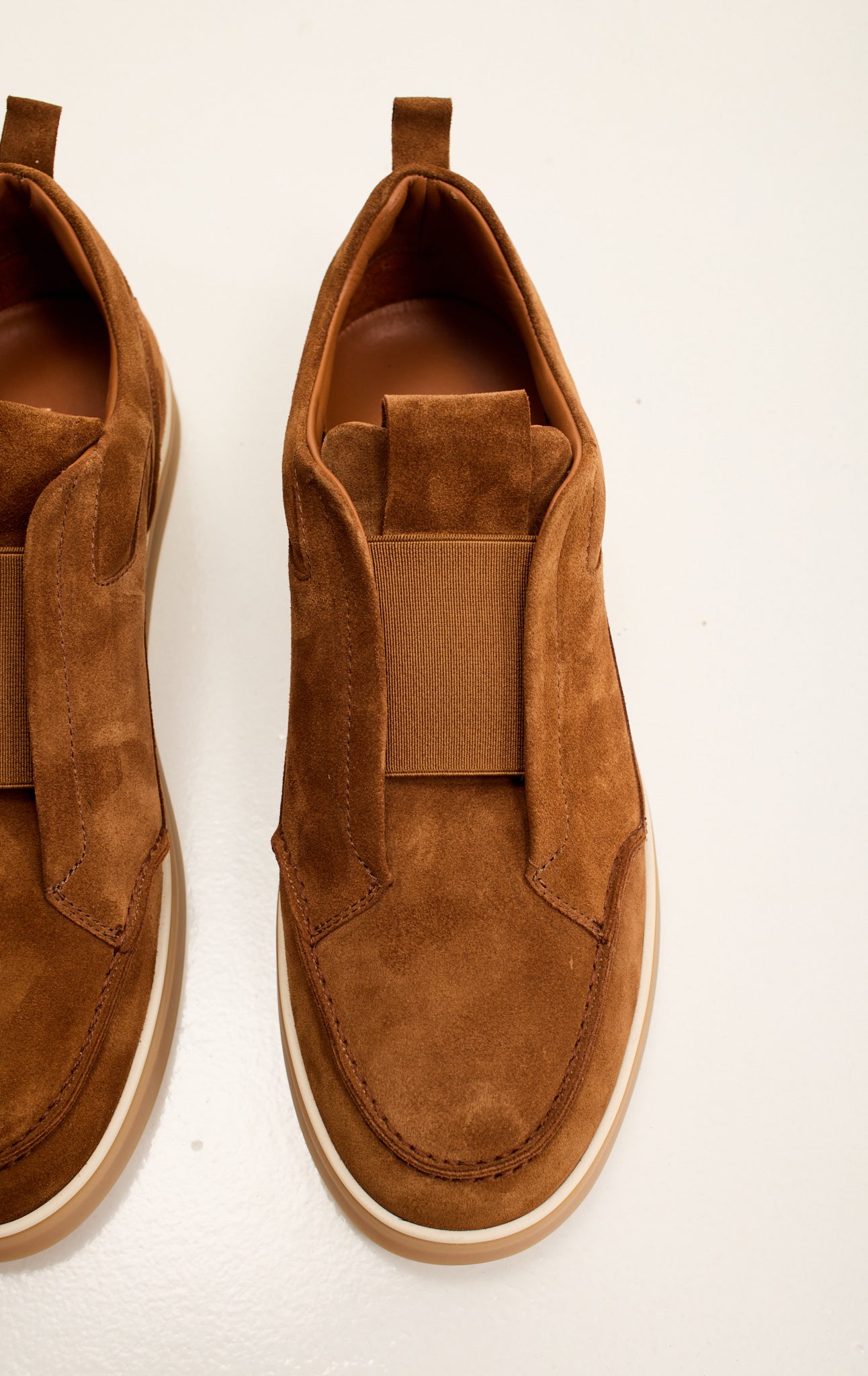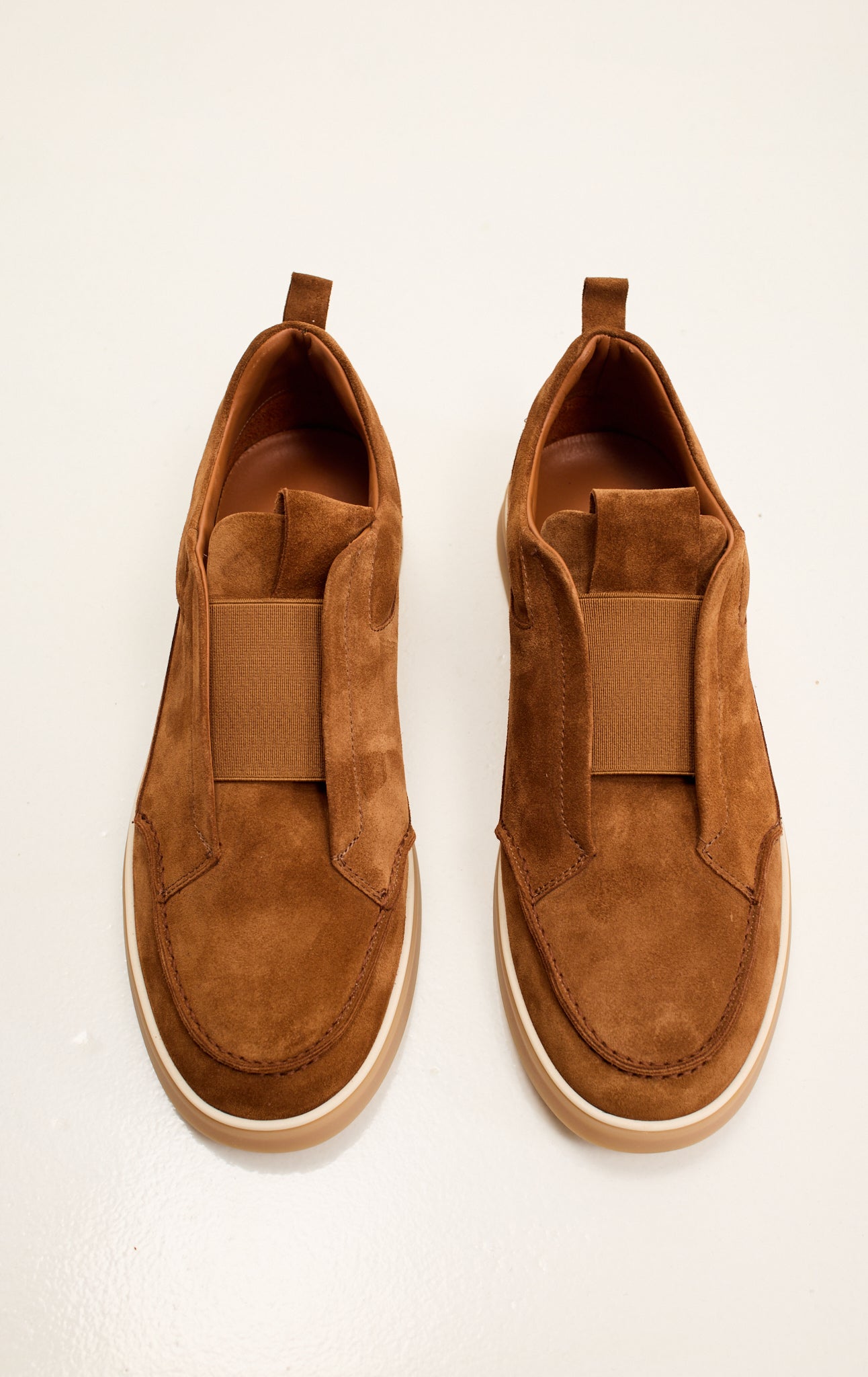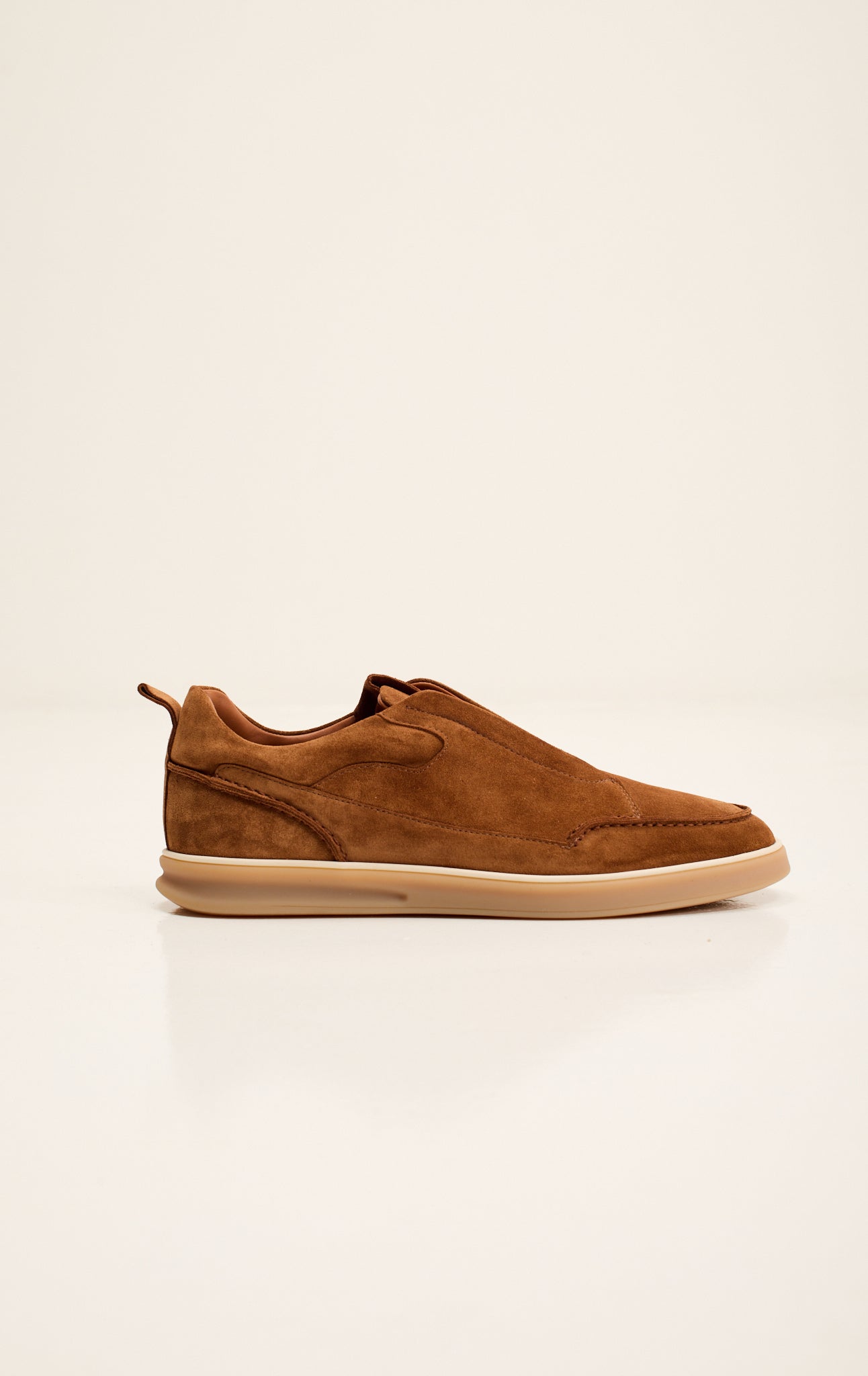 Suede Slip-On Sneakers with Italian Rubber Soles - Brown Suede