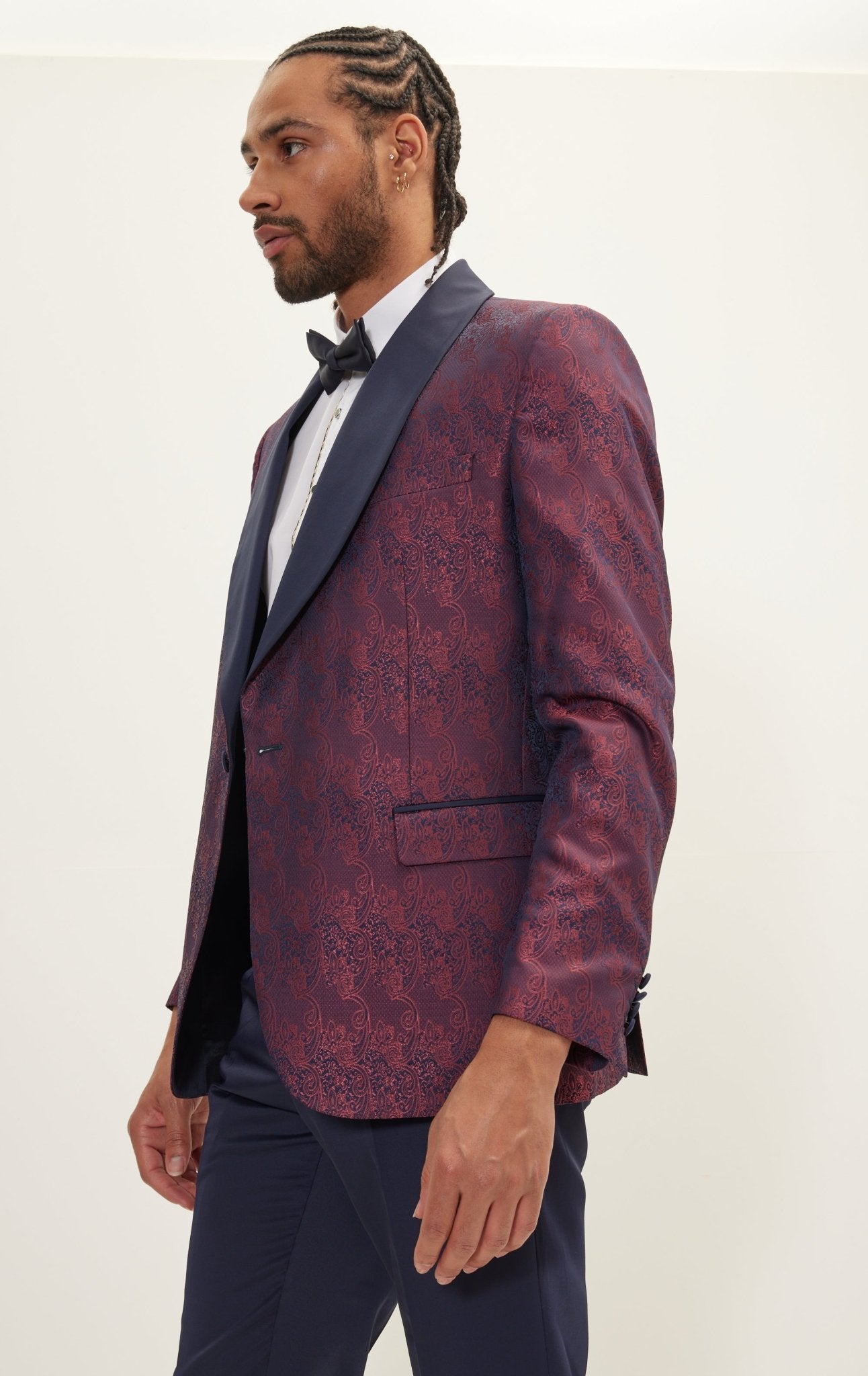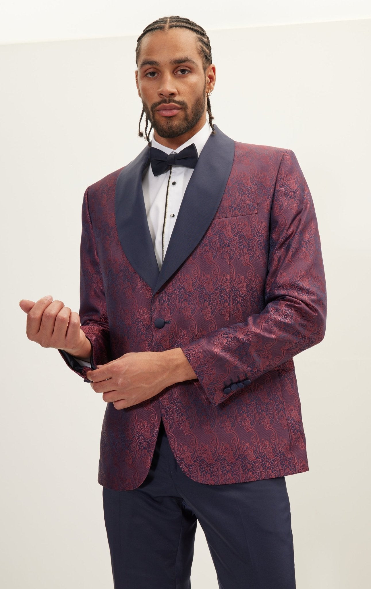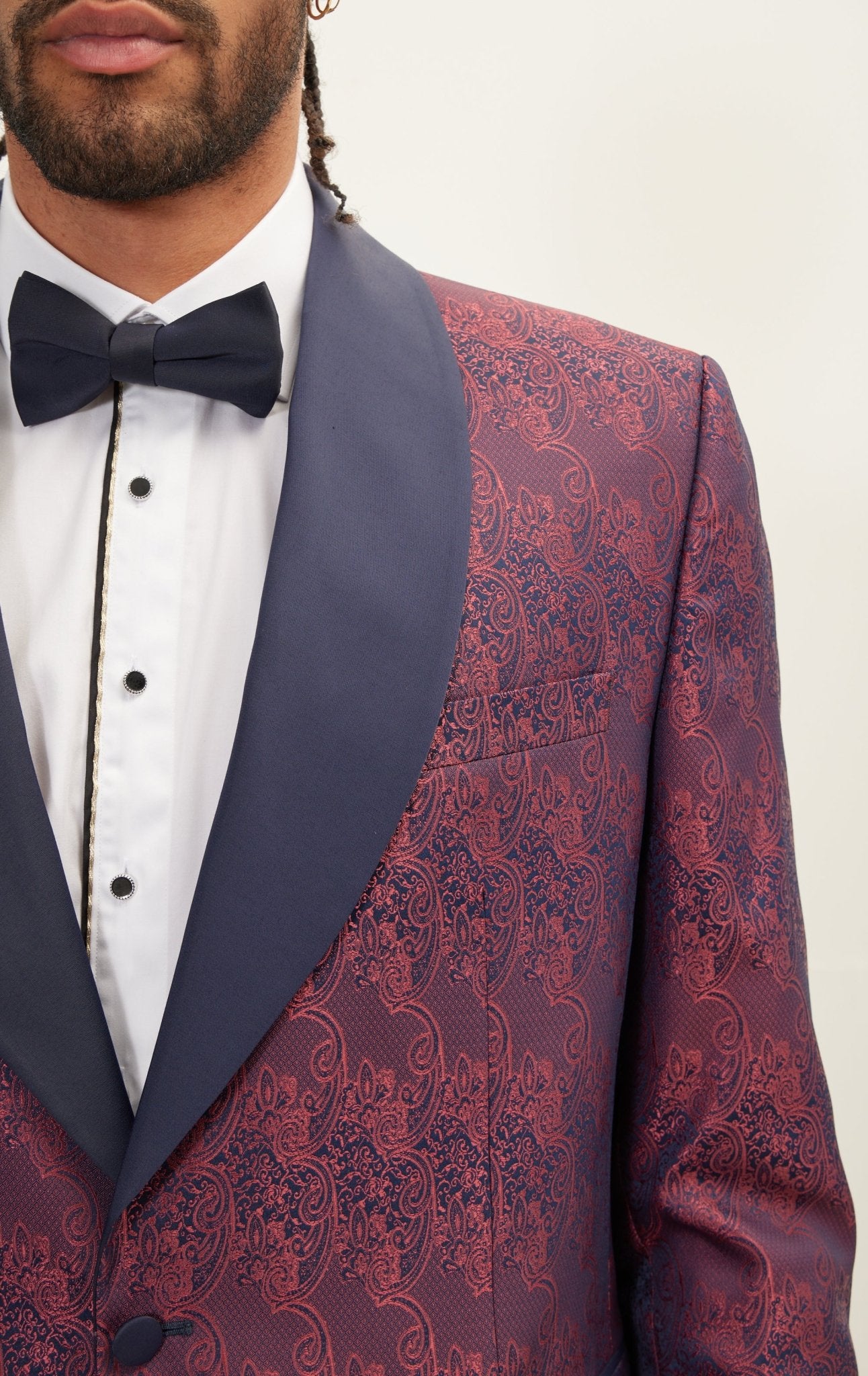 Paisley Shawl Lapel Tuxedo Jacket - Burgundy