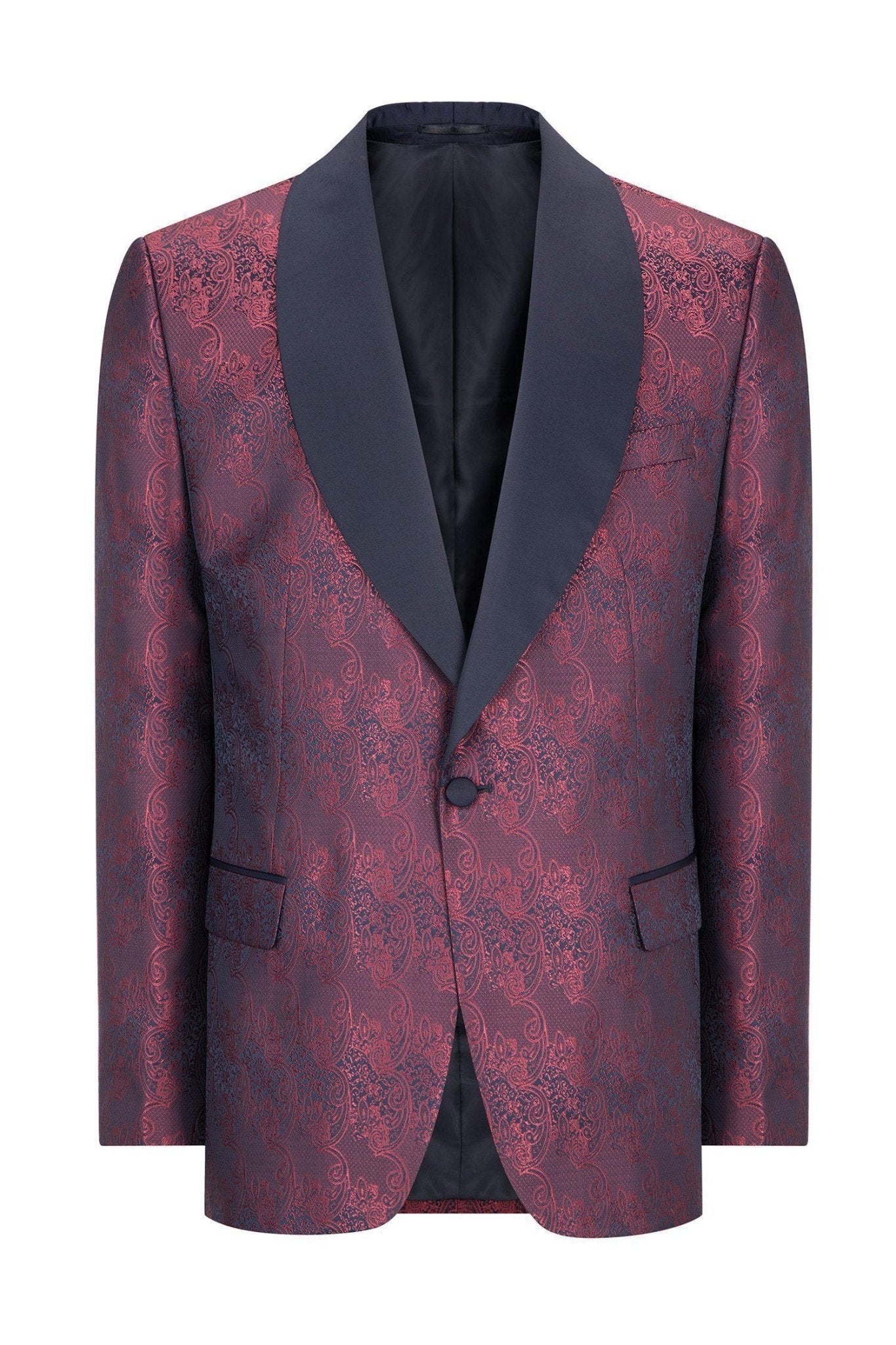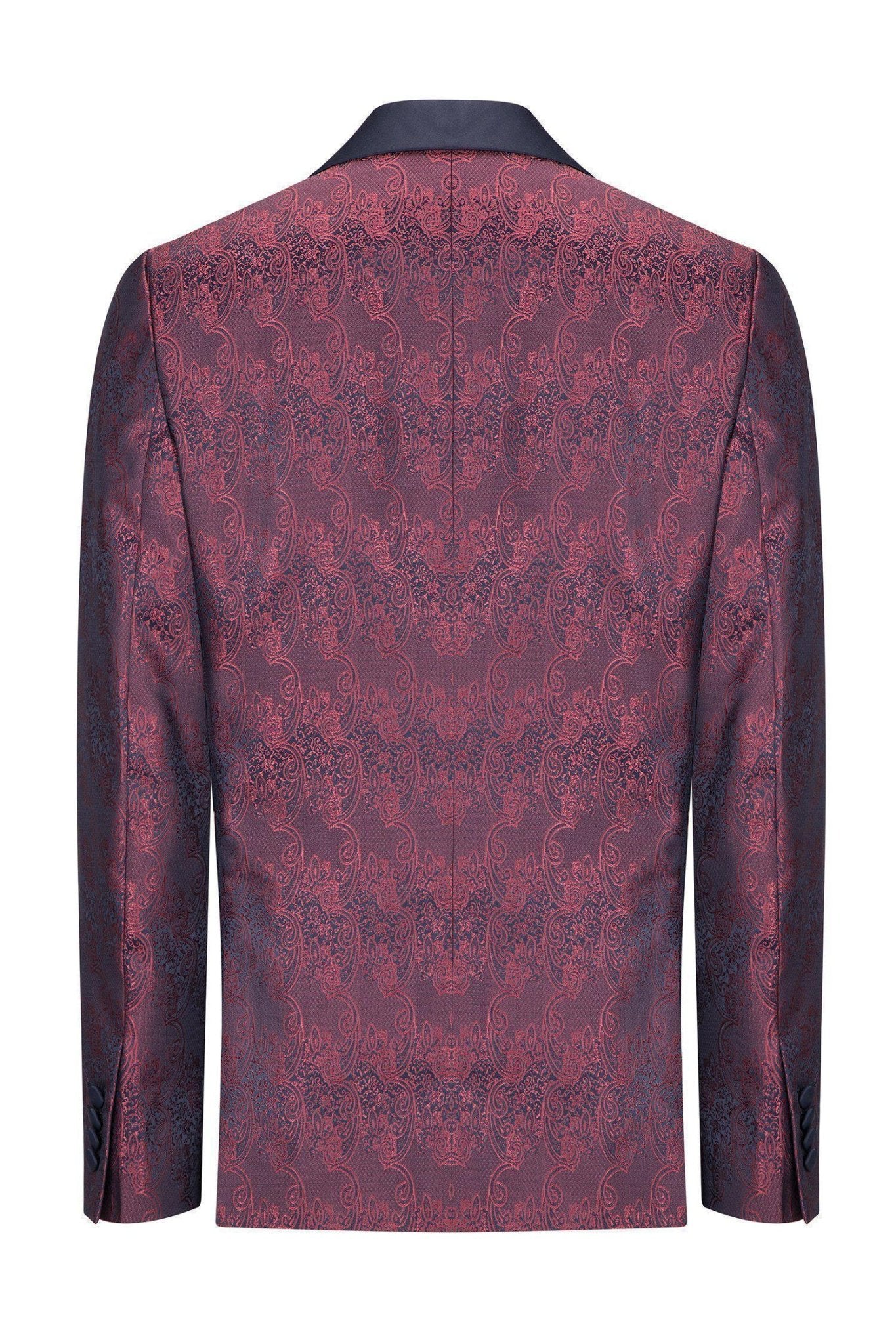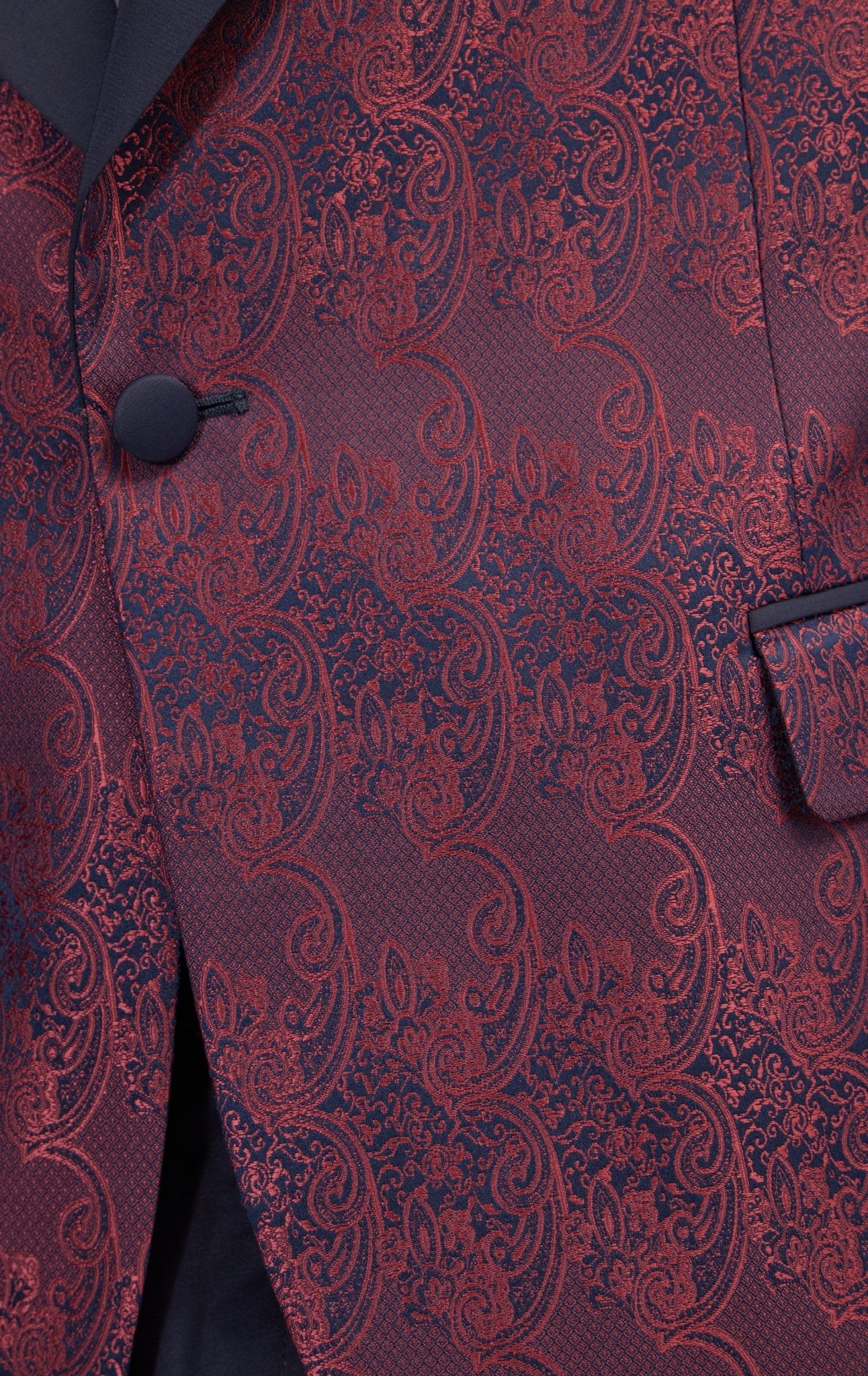 Paisley Shawl Lapel Tuxedo Jacket - Burgundy