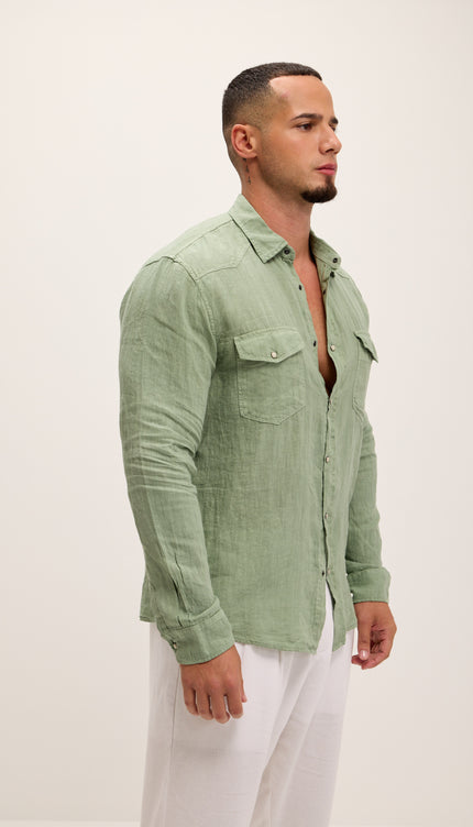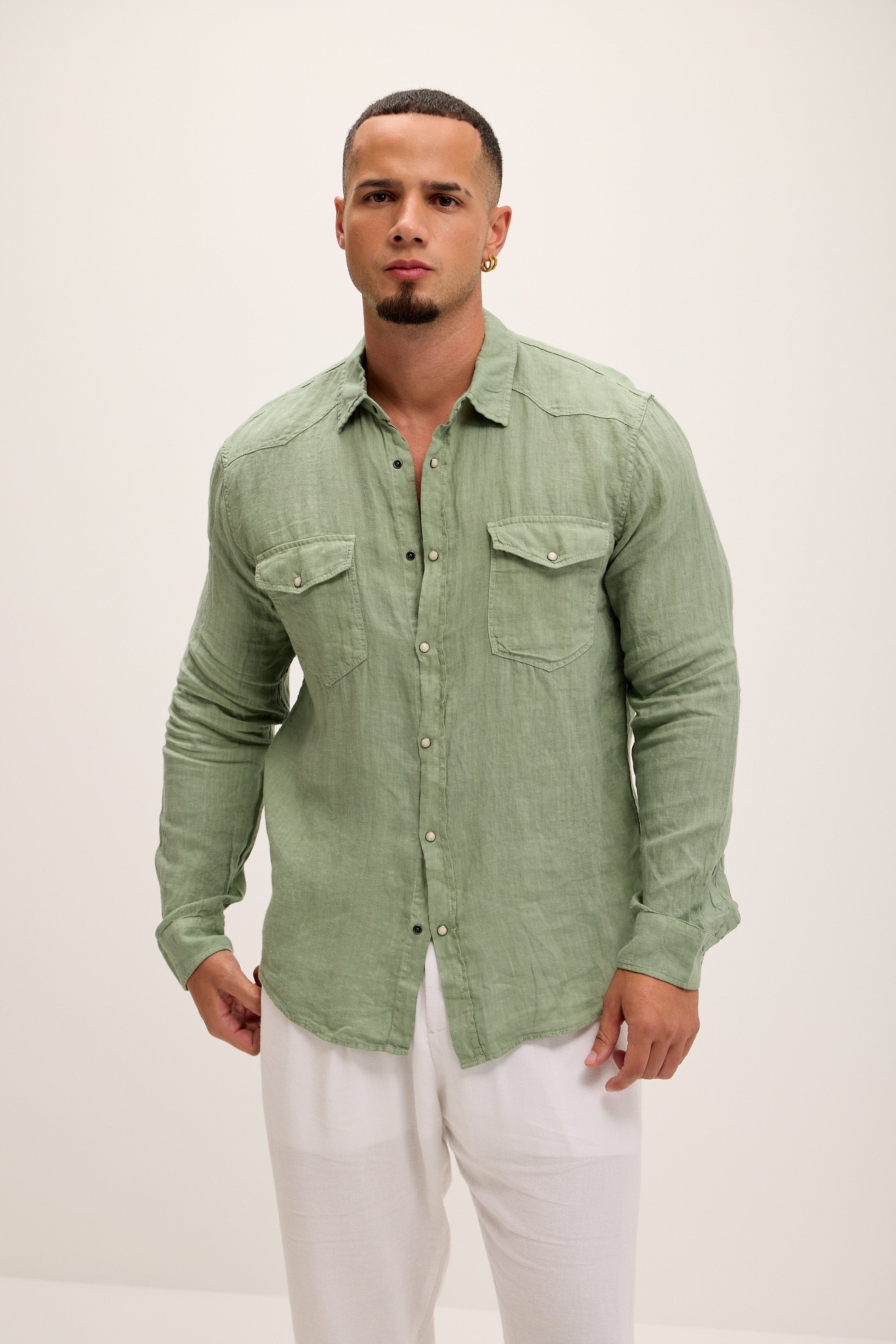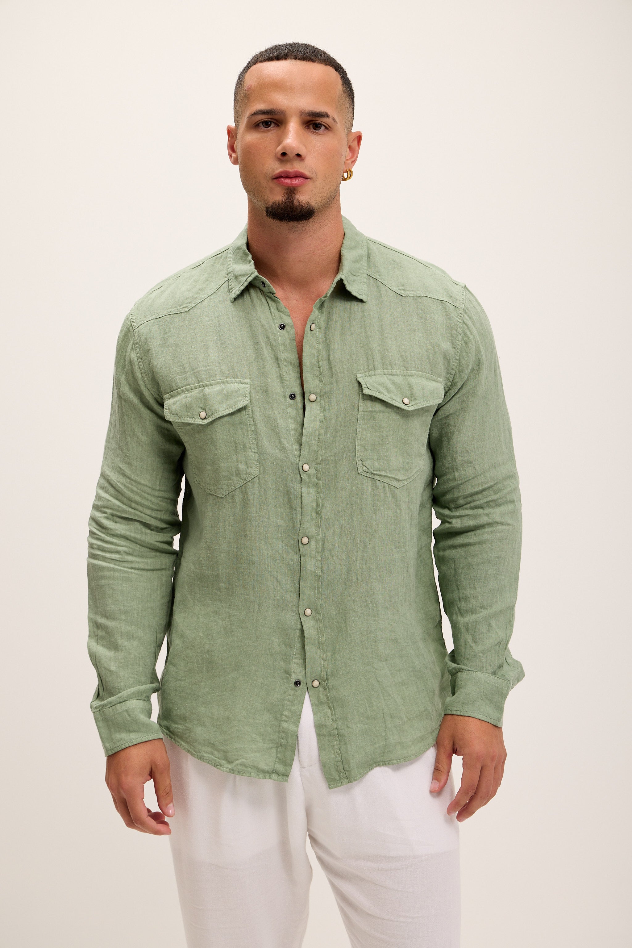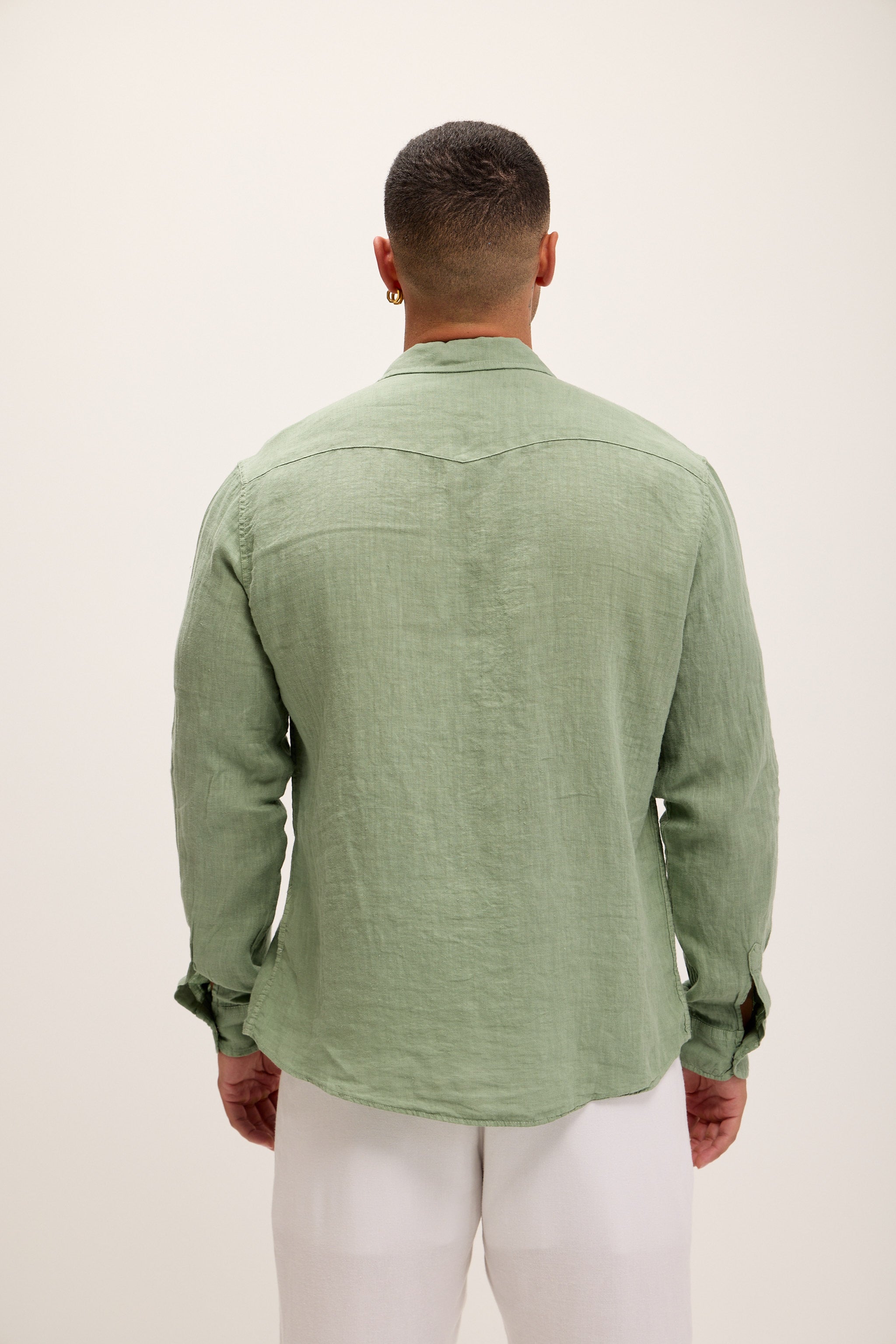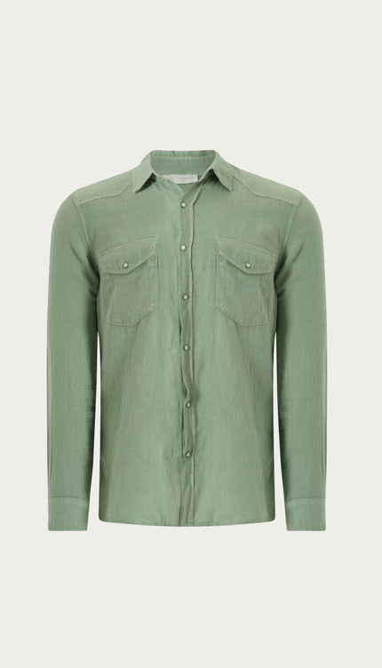 Signature Ron Tomson fitted construction. Front snap closure pockets. Full snap button closure on the placket and cuffs. Italian Collar. Western design over shoulders and back trim details.