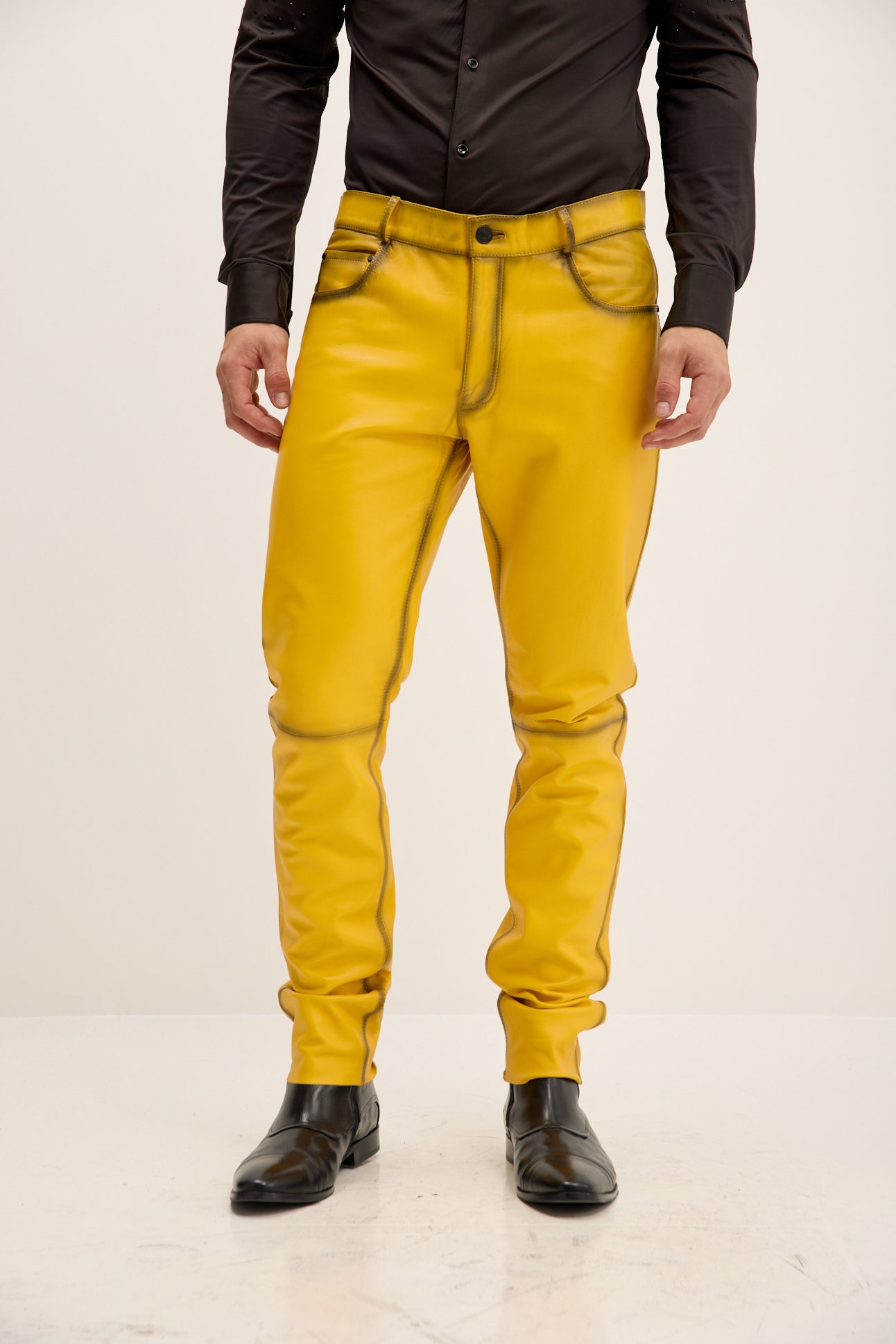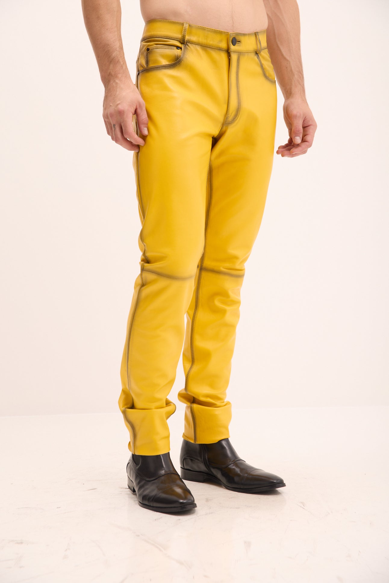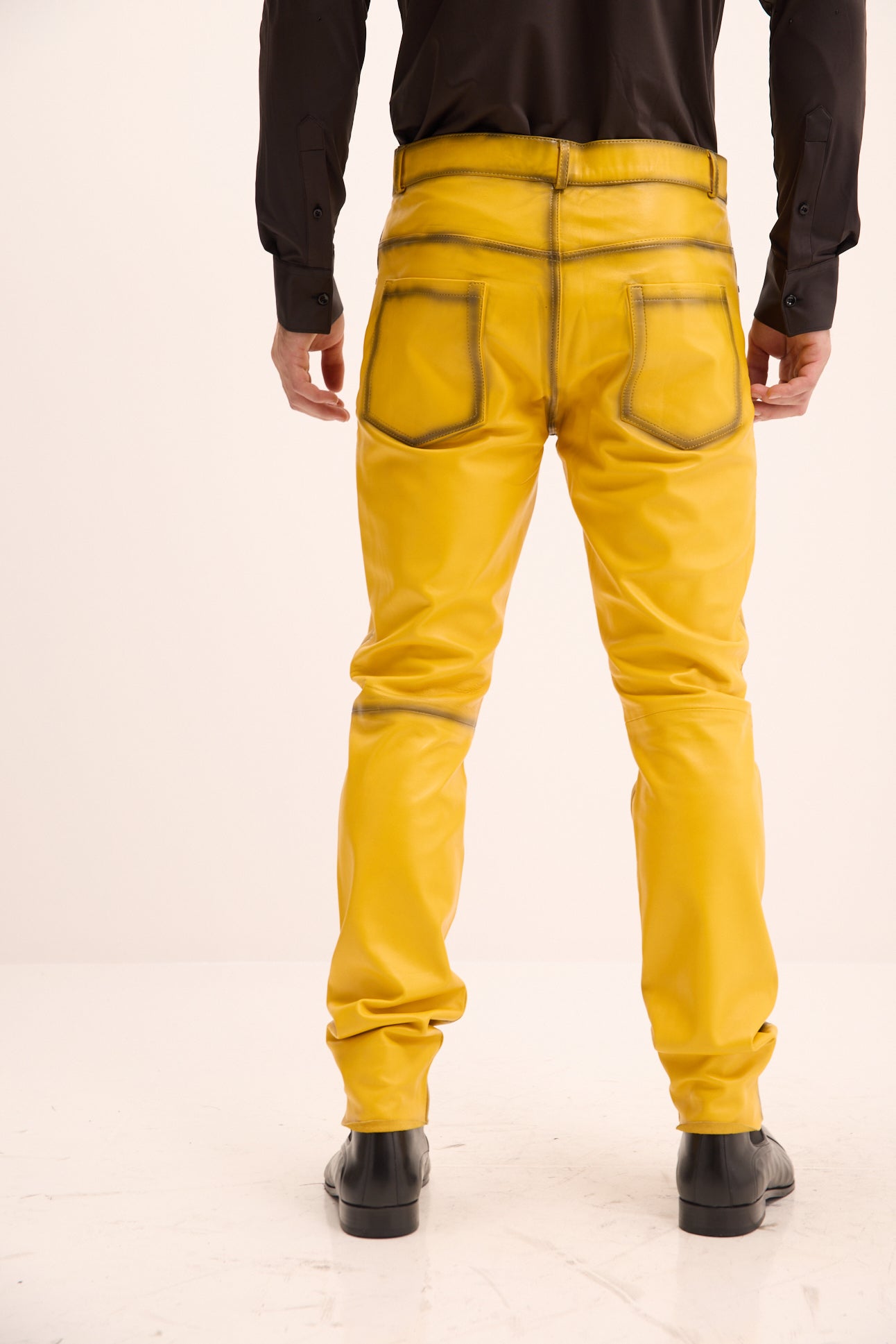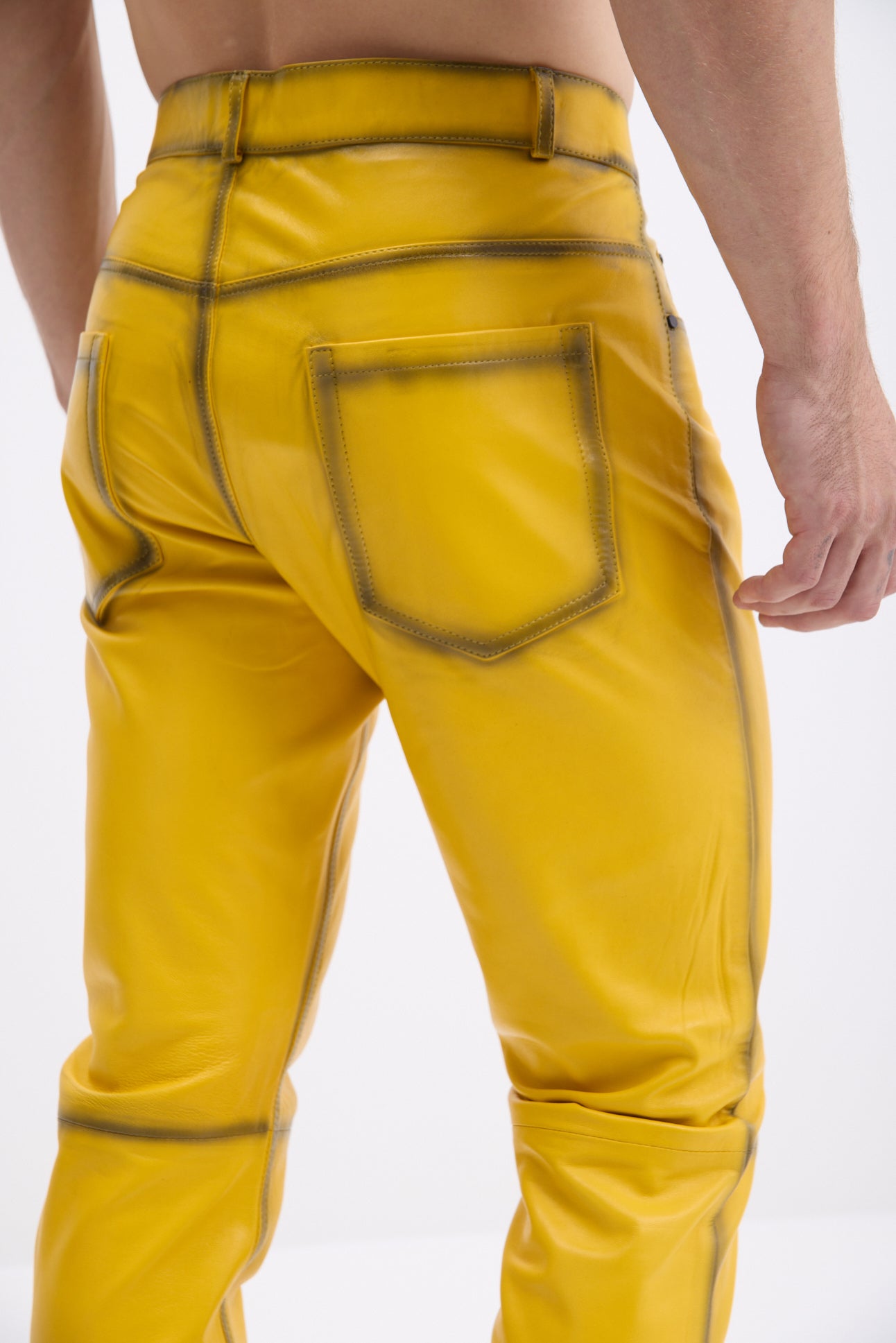 - The cuff of these leather pants is finished raw, offering both elegance and the convenience of adjusting the length to suit your preference. This attention to detail adds a touch of versatility to the pants, allowing for personalized styling options. Experience the confidence and sophistication that come with wearing these exceptional leather pants.