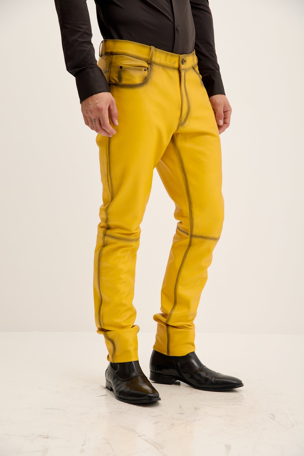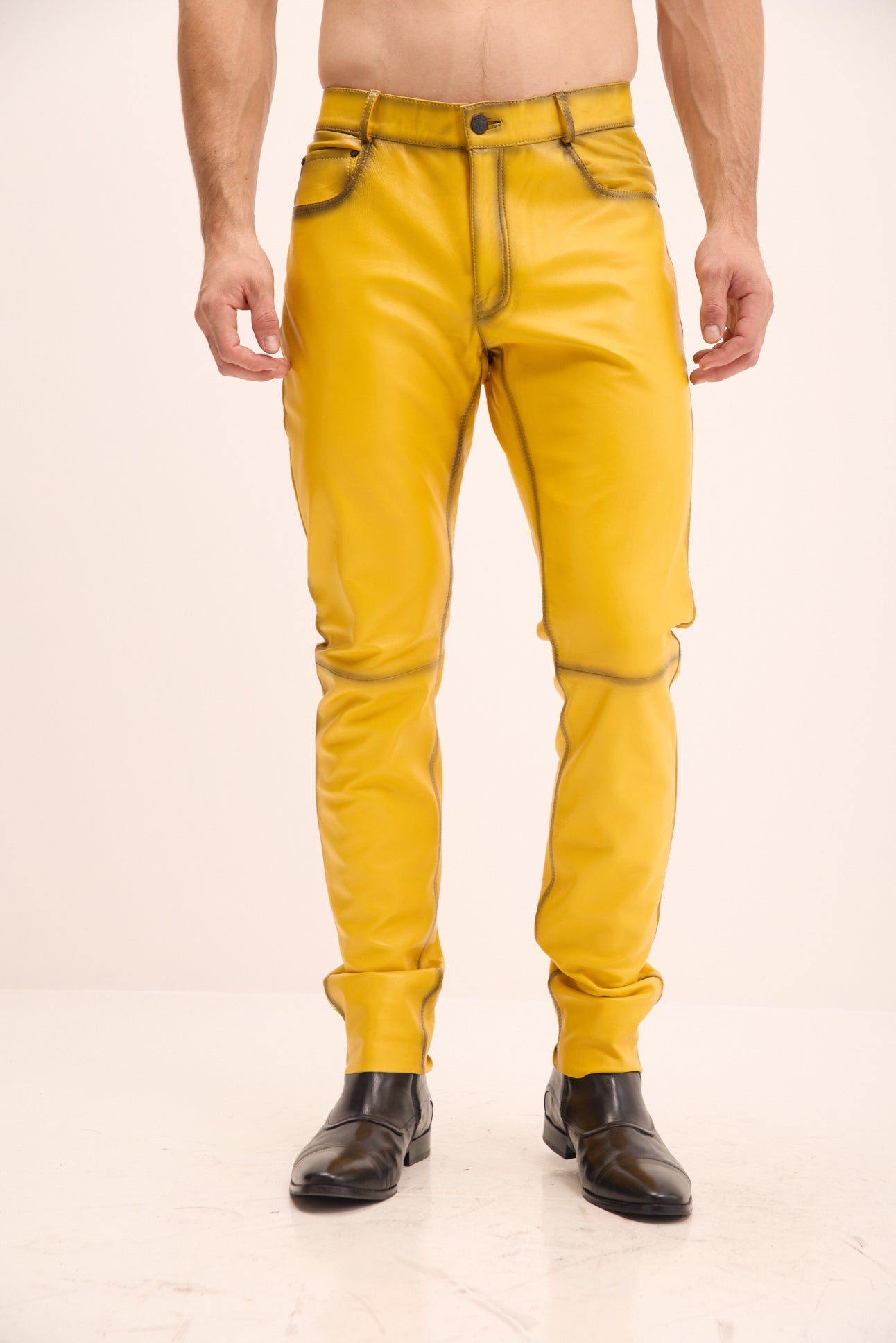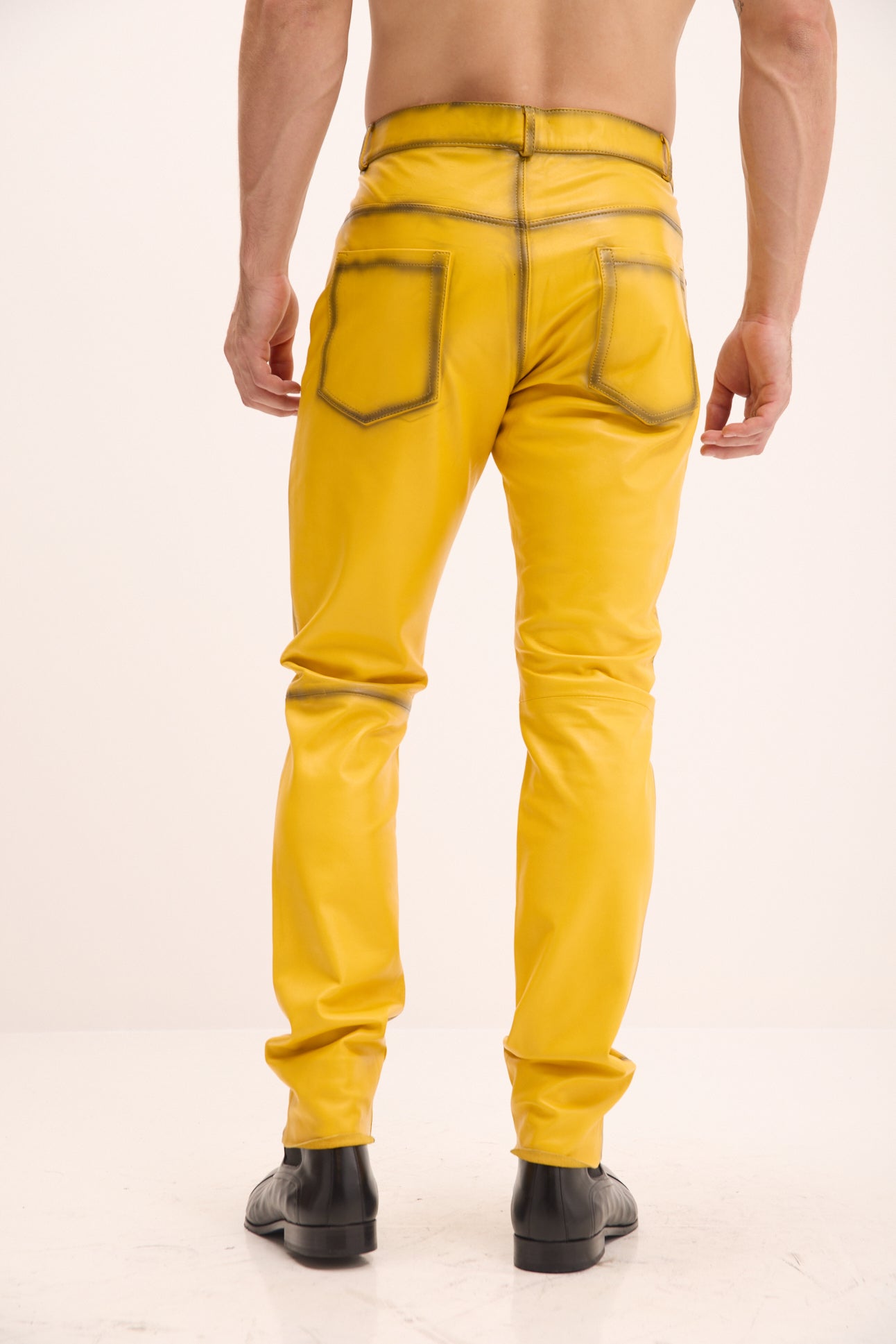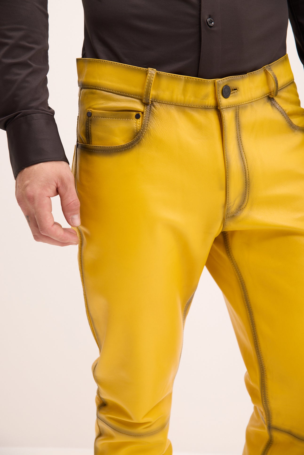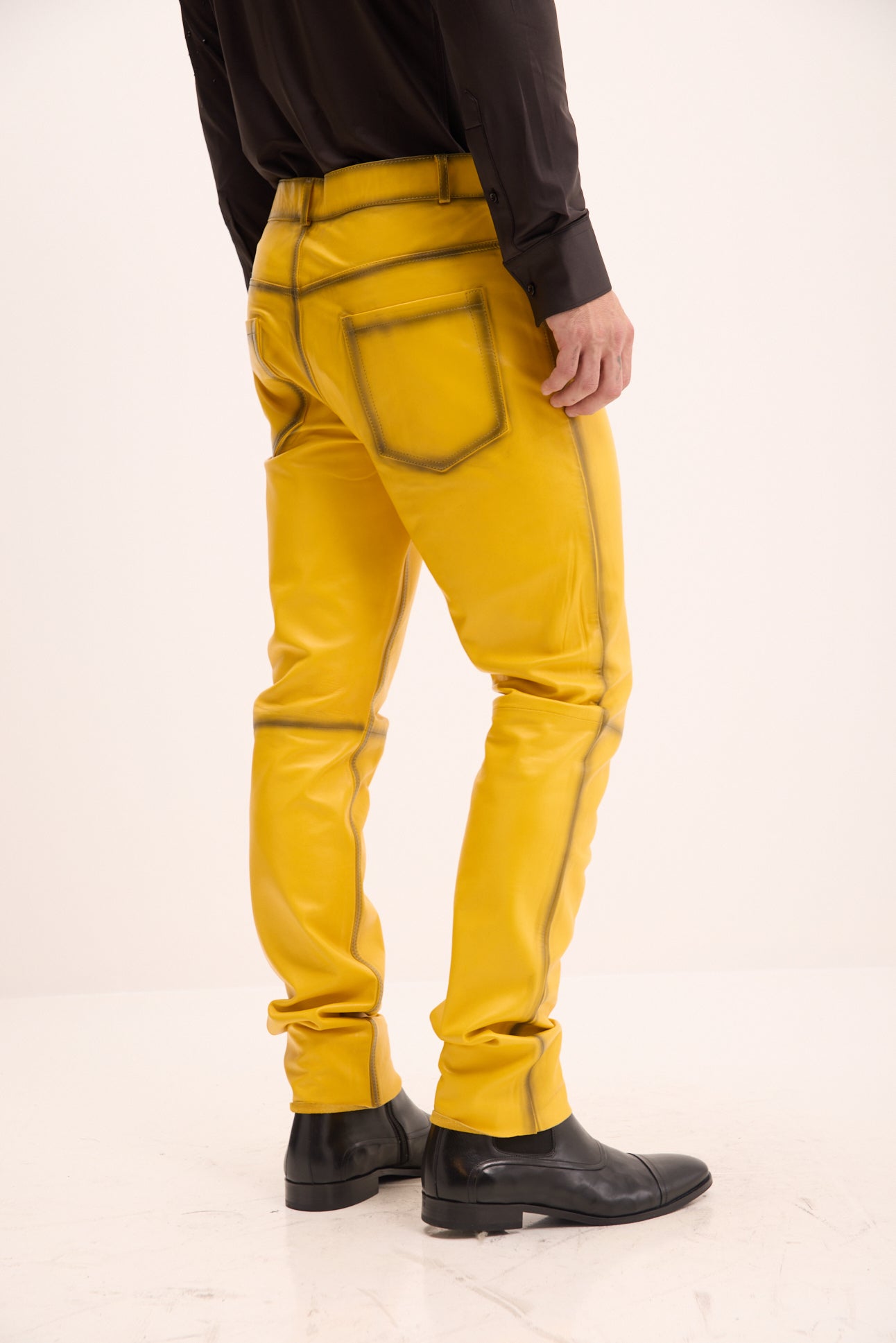 - The cuff of these leather pants is finished raw, offering both elegance and the convenience of adjusting the length to suit your preference. This attention to detail adds a touch of versatility to the pants, allowing for personalized styling options. Experience the confidence and sophistication that come with wearing these exceptional leather pants.