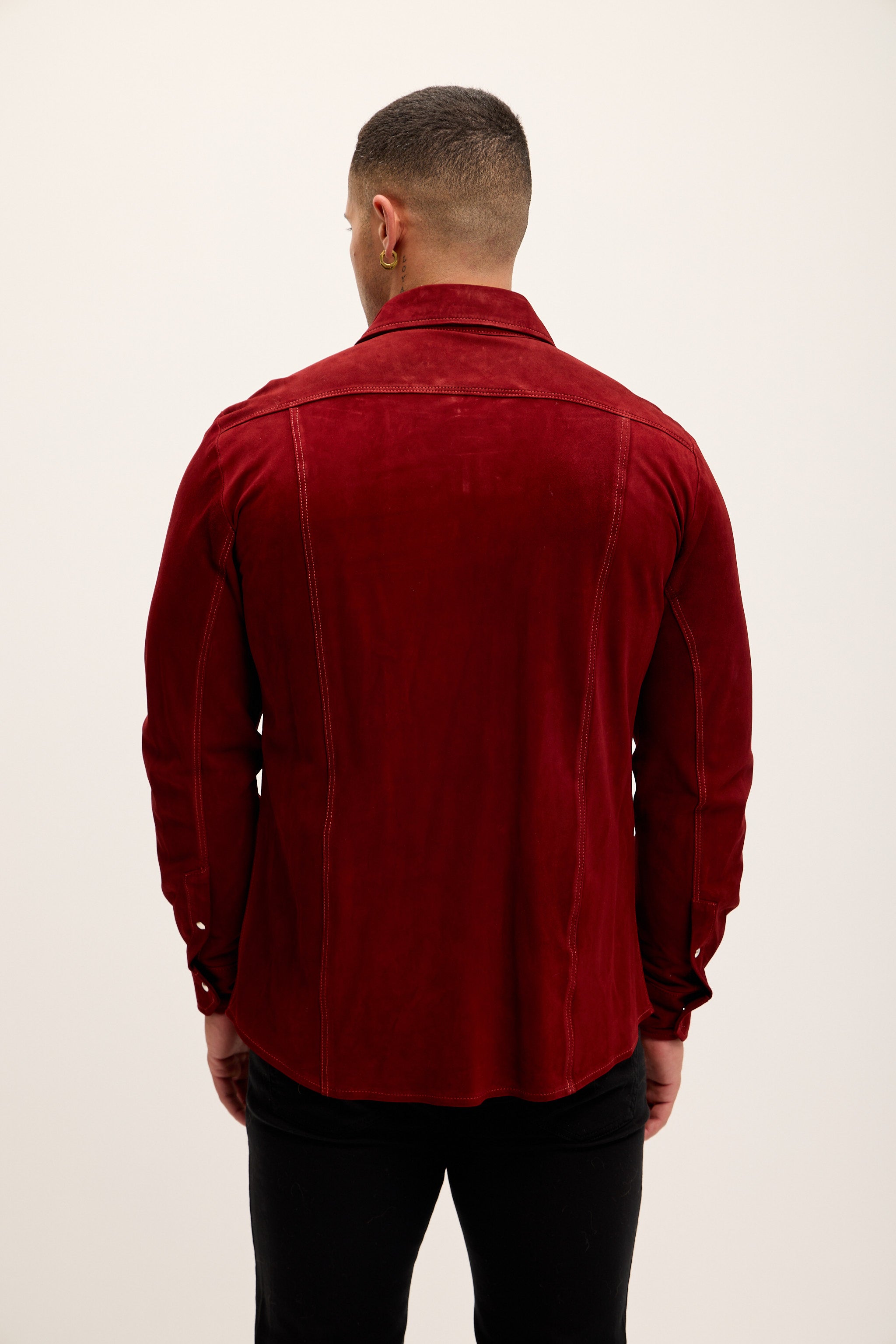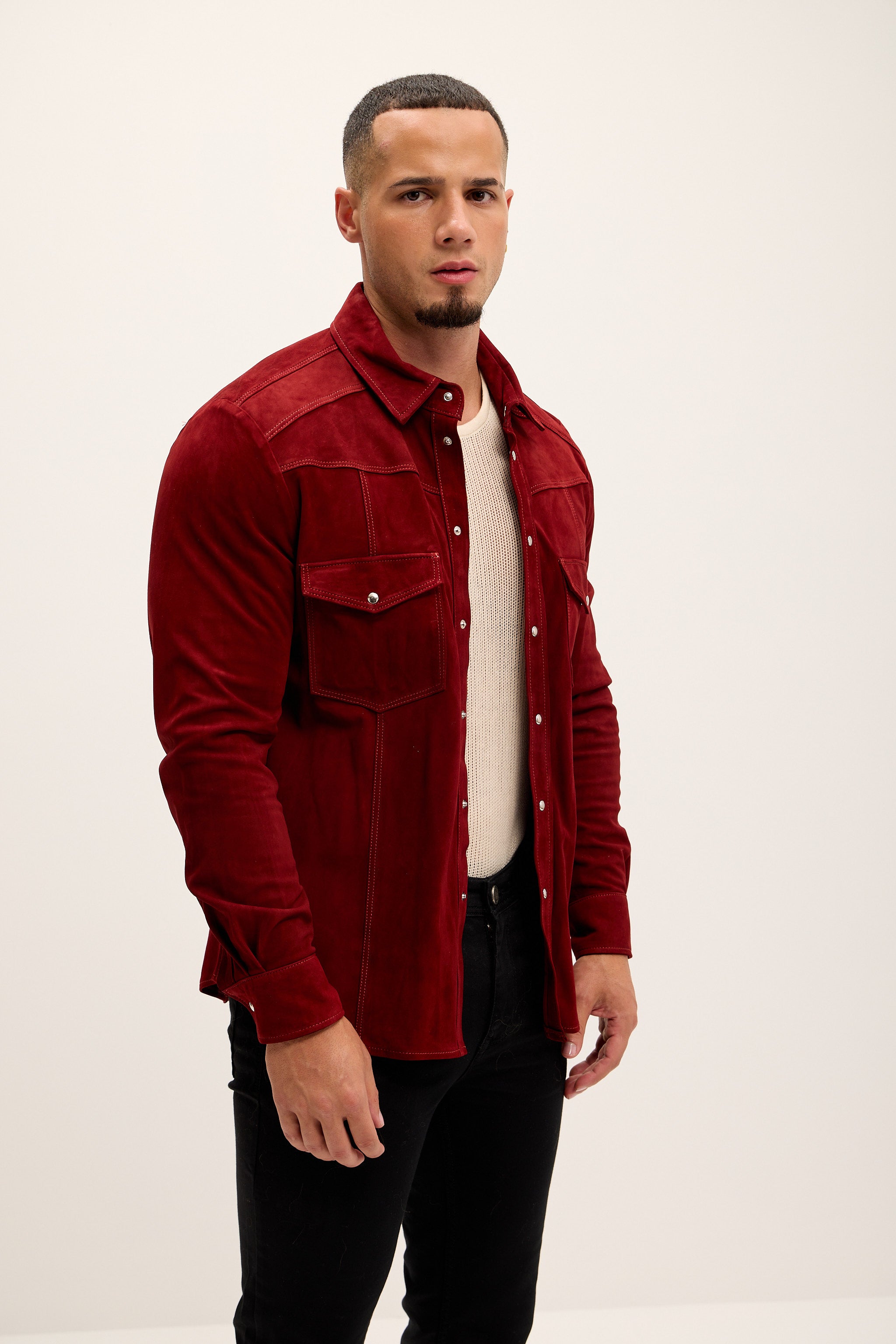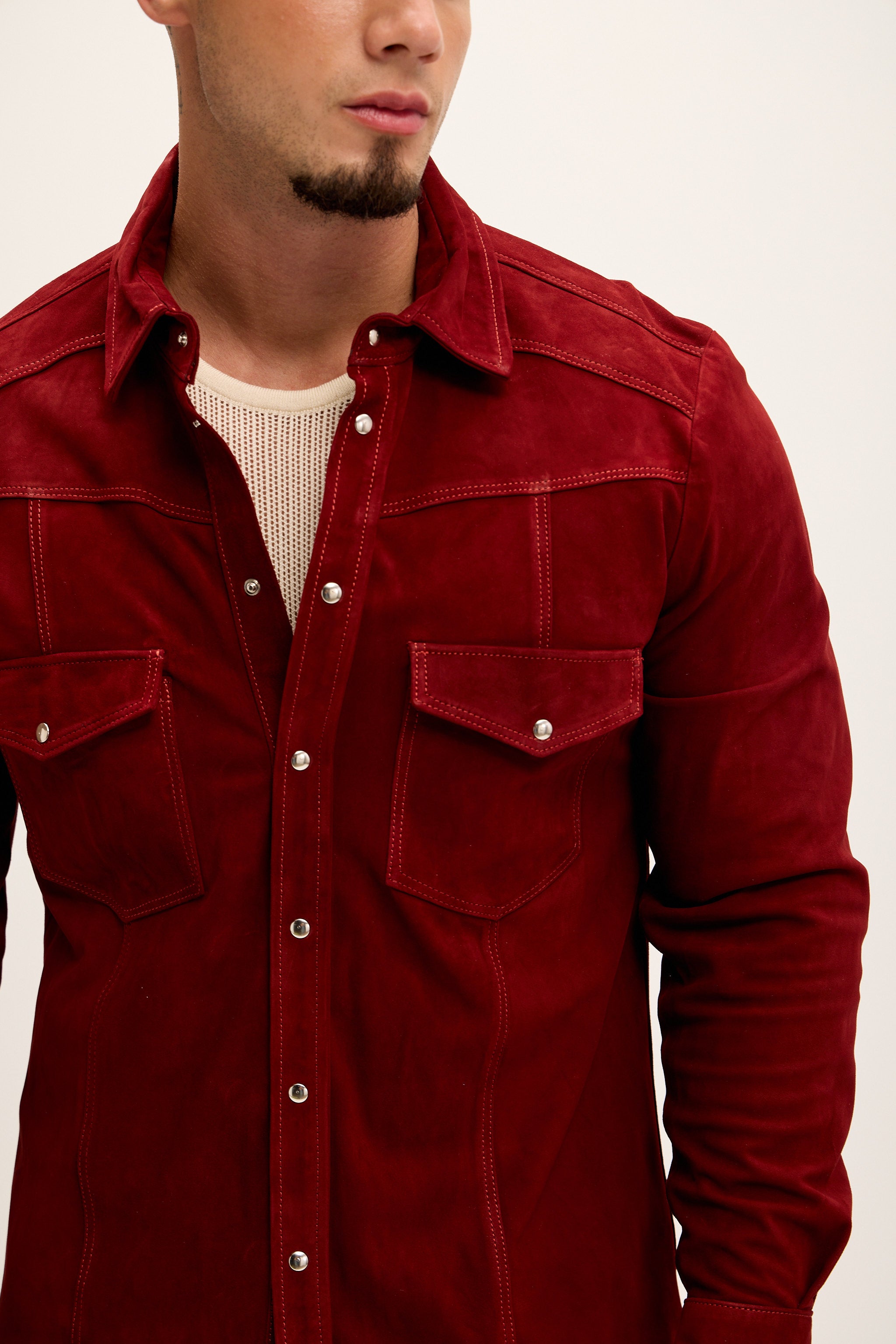 Genuine Suede Leather Fitted Shirt - Cherry Red