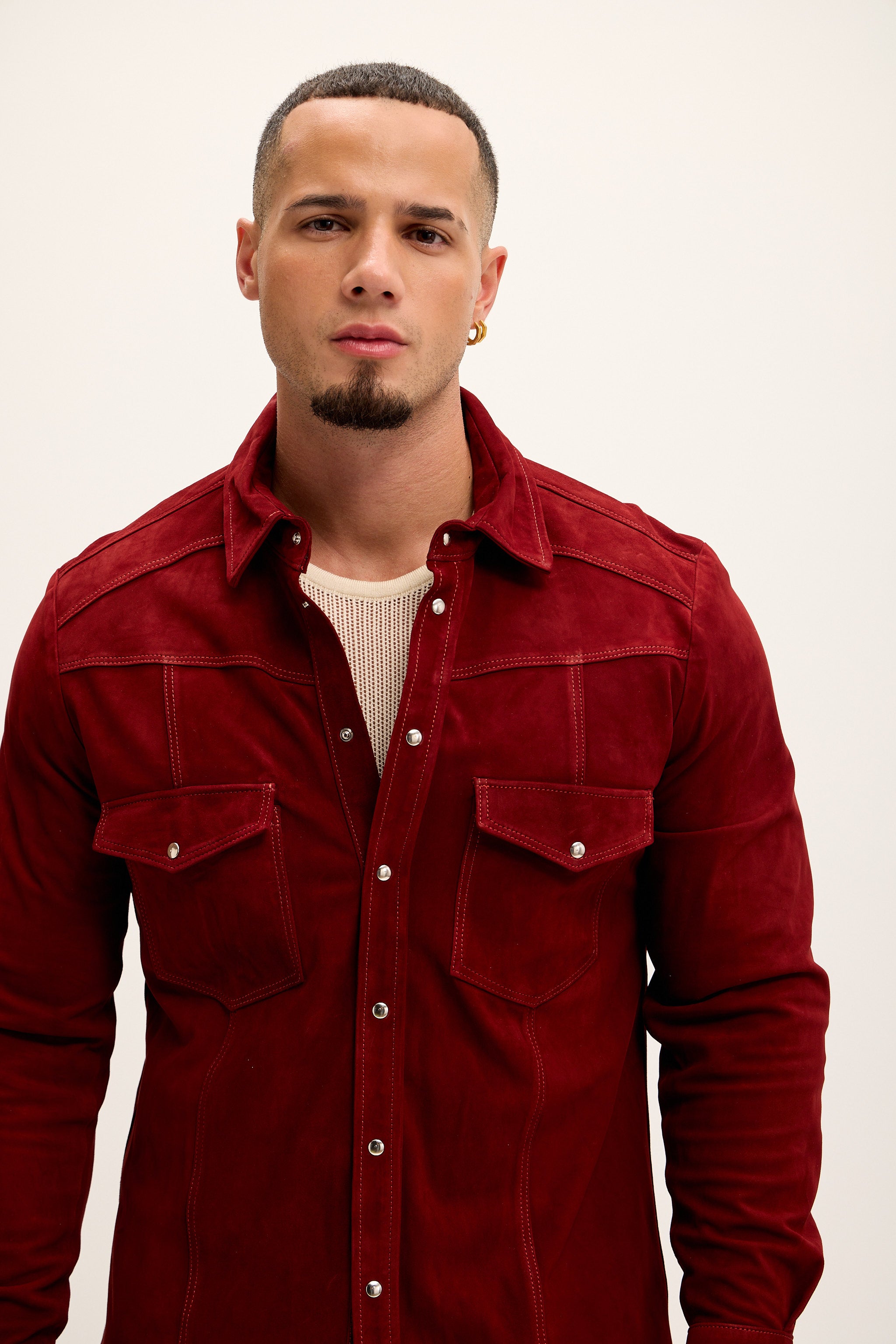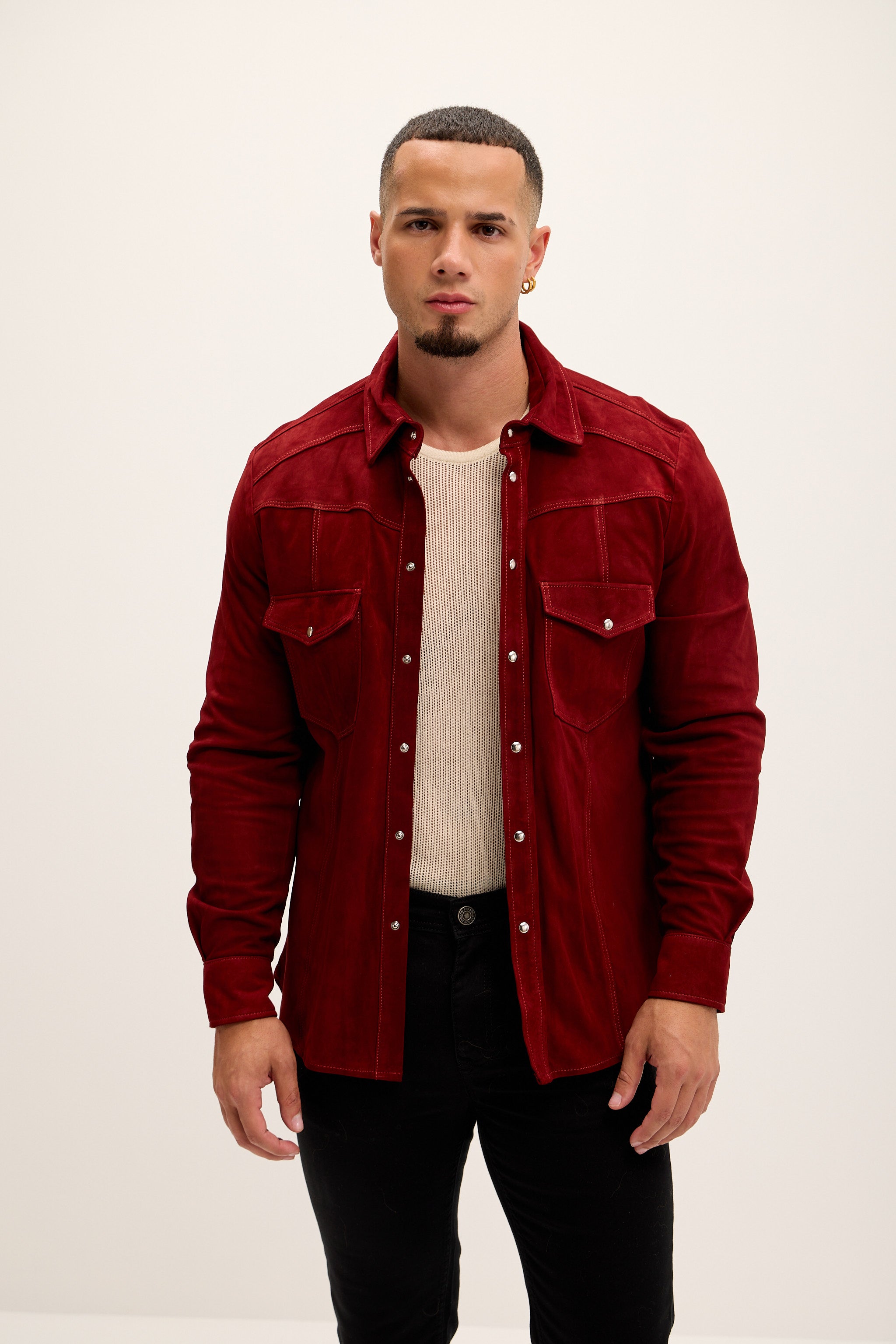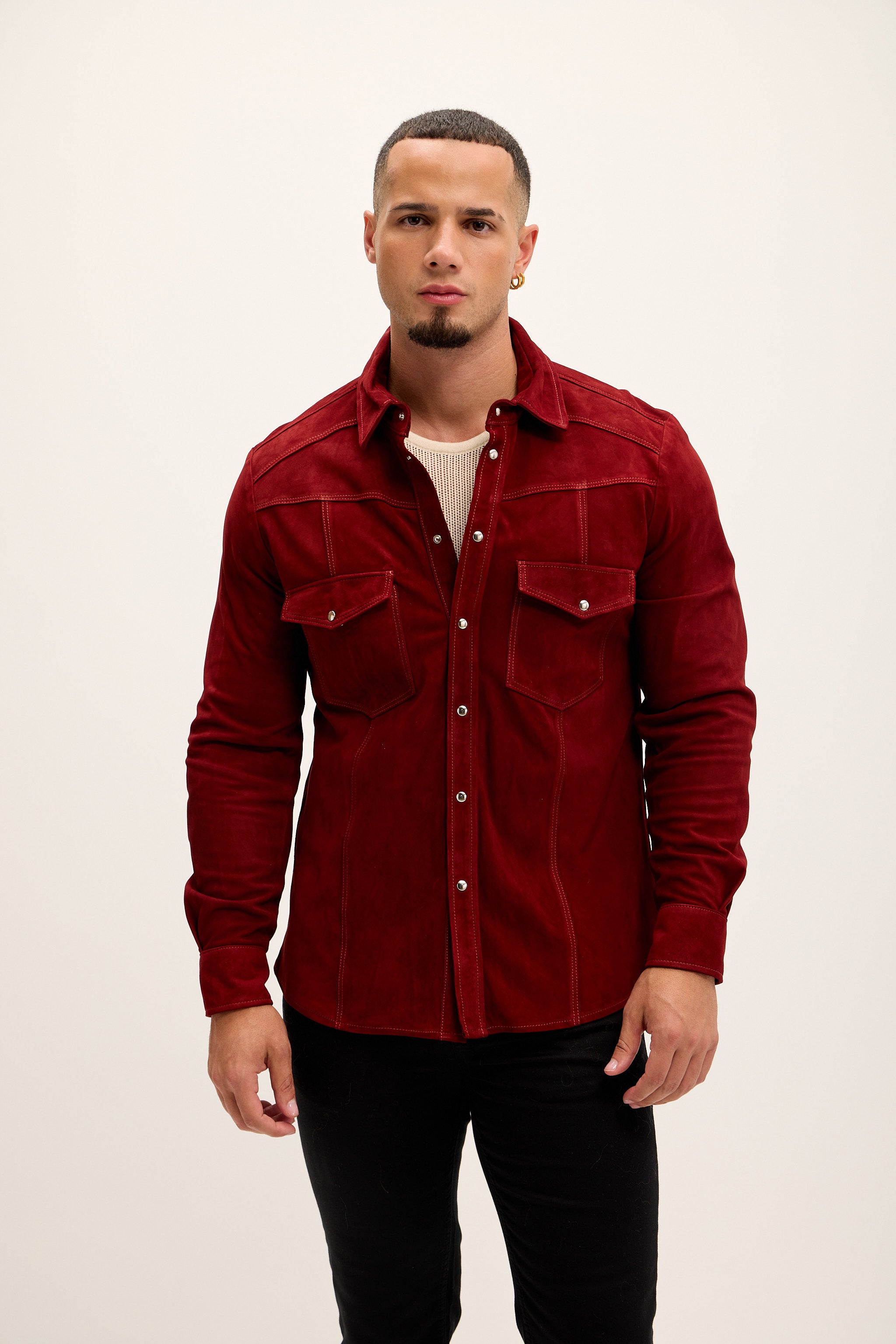 Genuine Suede Leather Fitted Shirt - Cherry Red