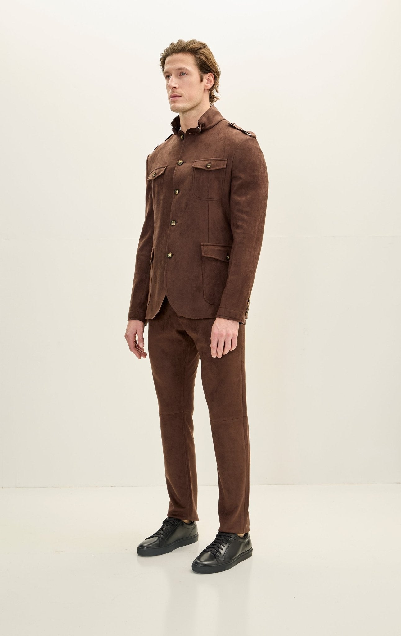 Microsuede Lightweight Safari Jacket - Dark Brown
