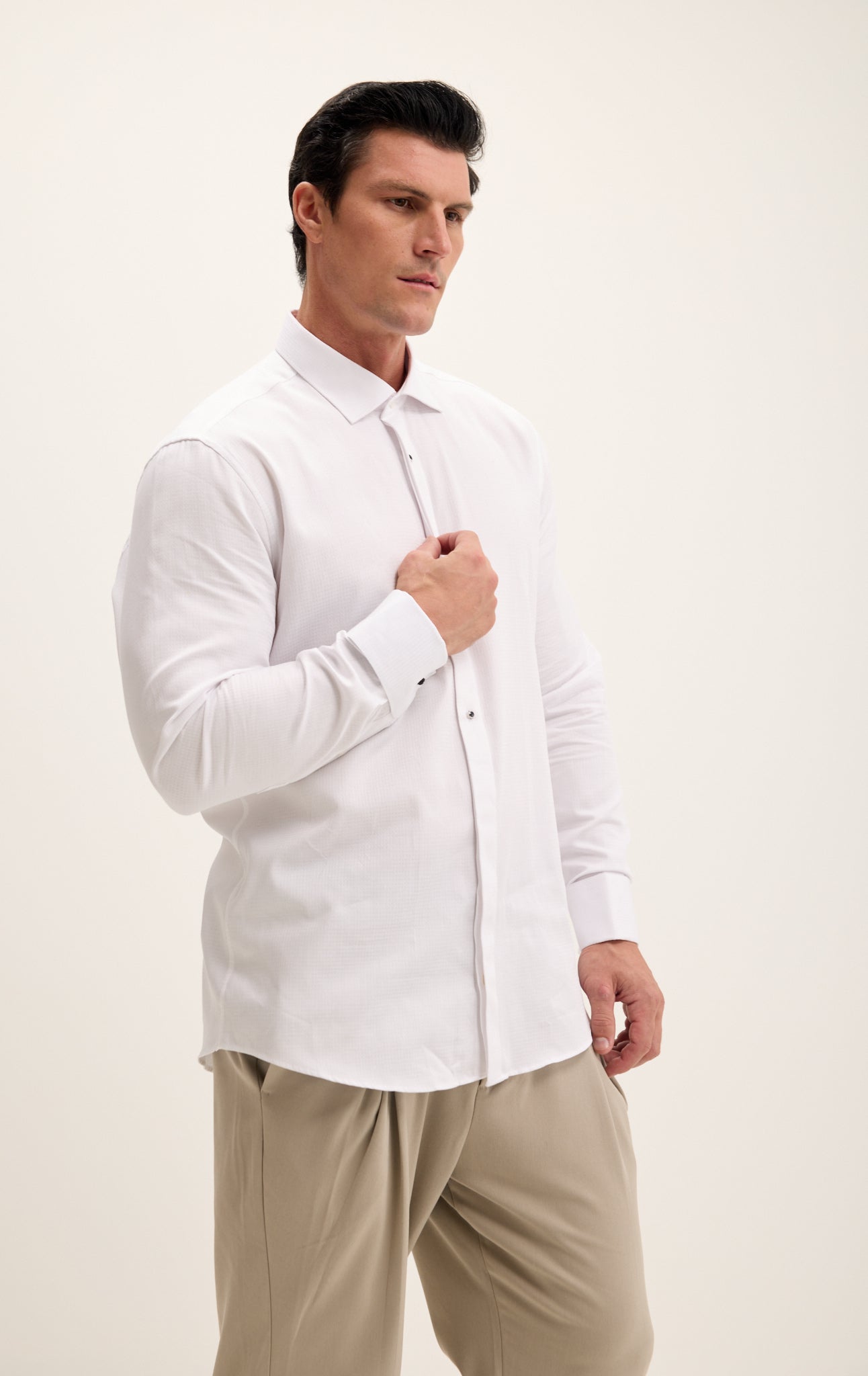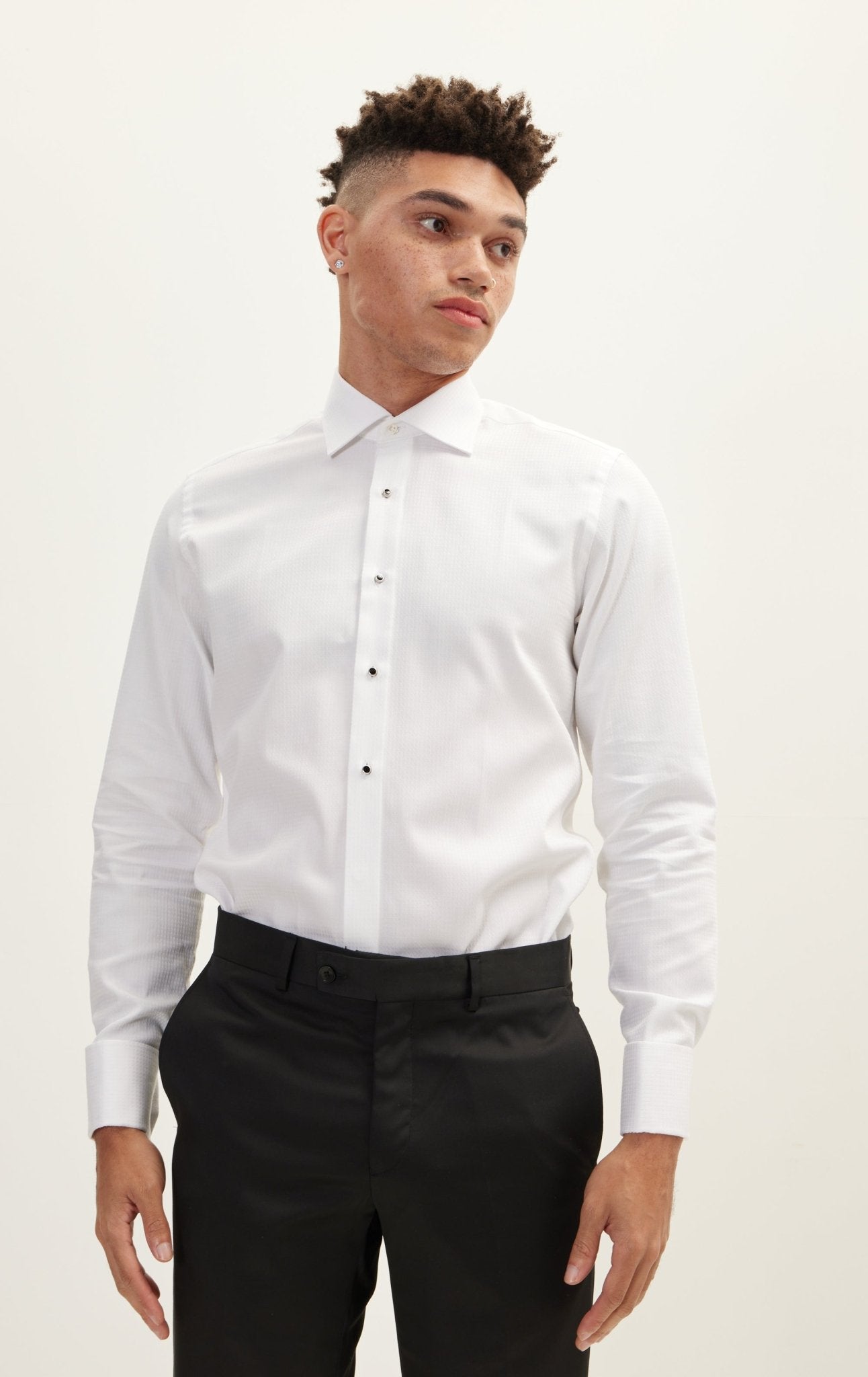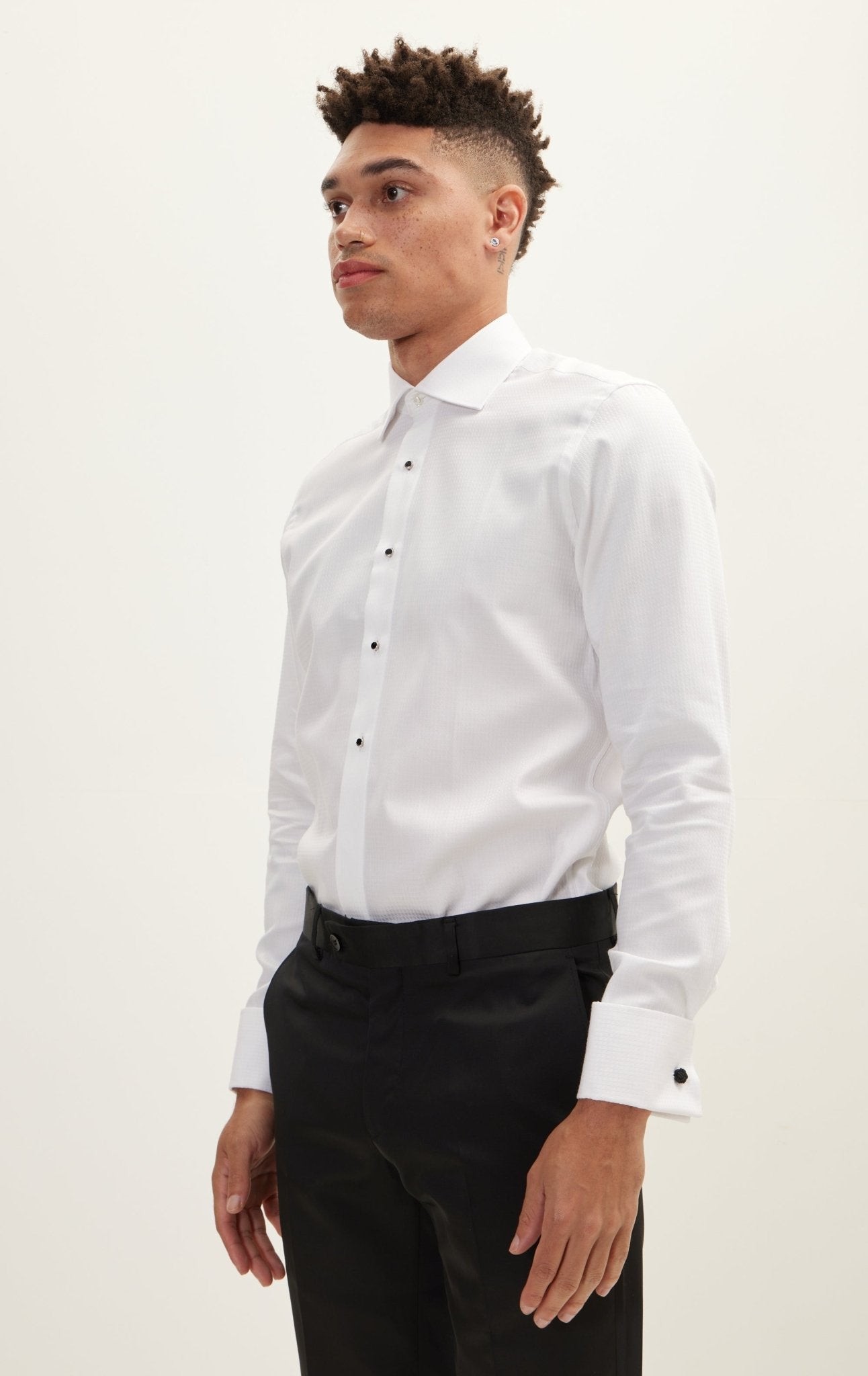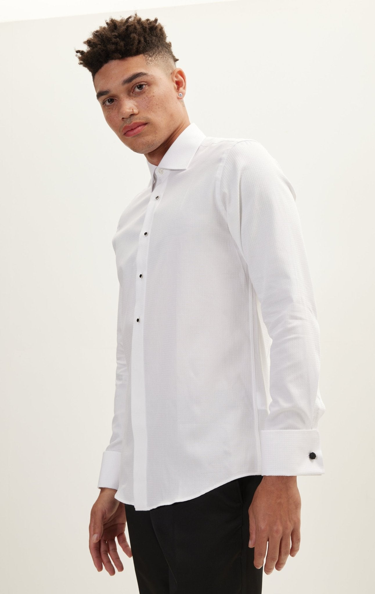 Classical Top Front Stud Tuxedo Shirt - Houndstooth