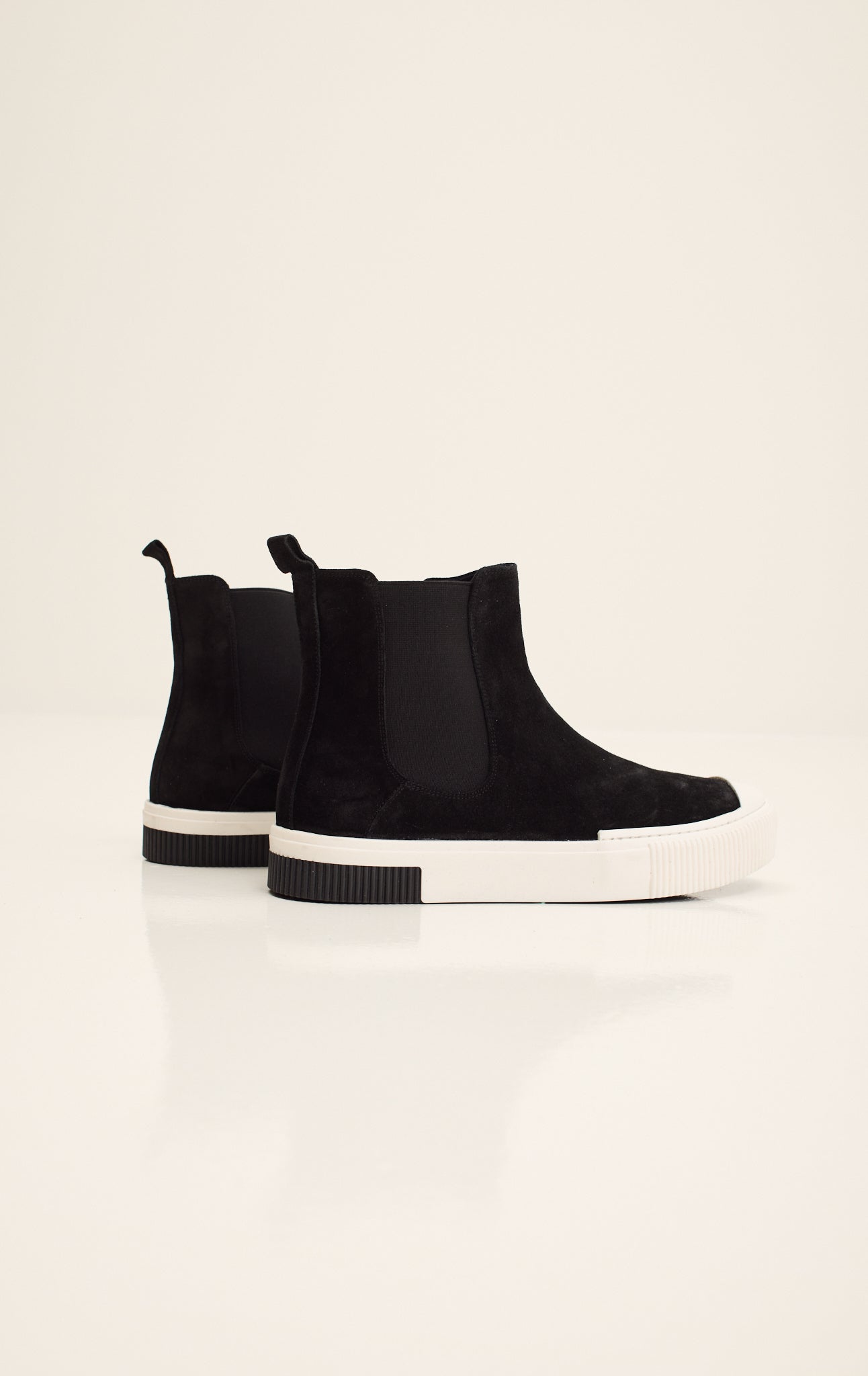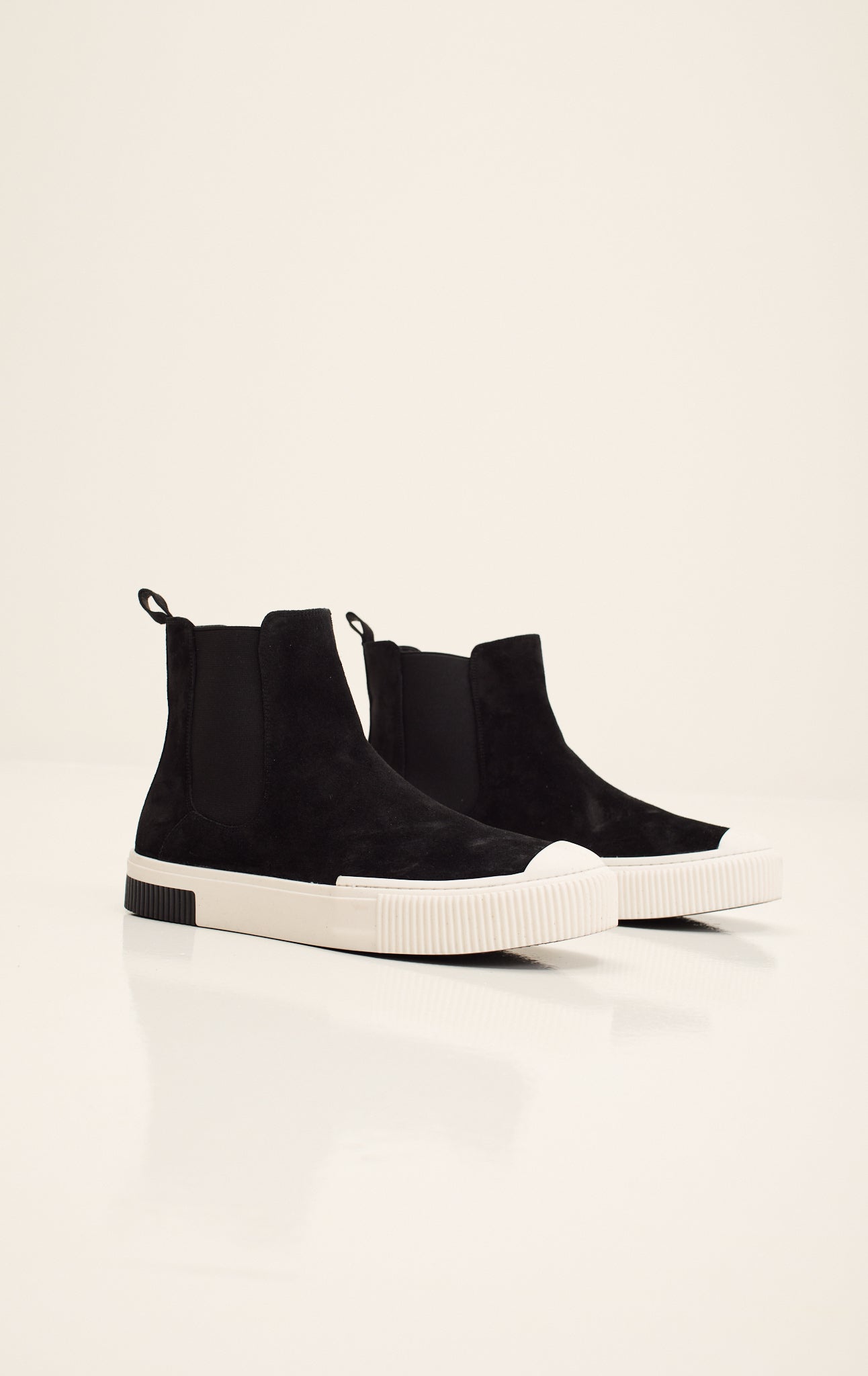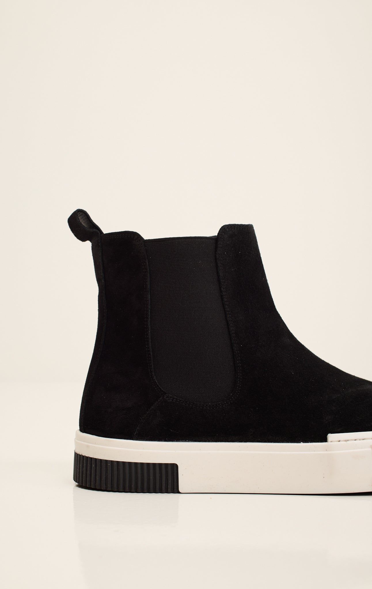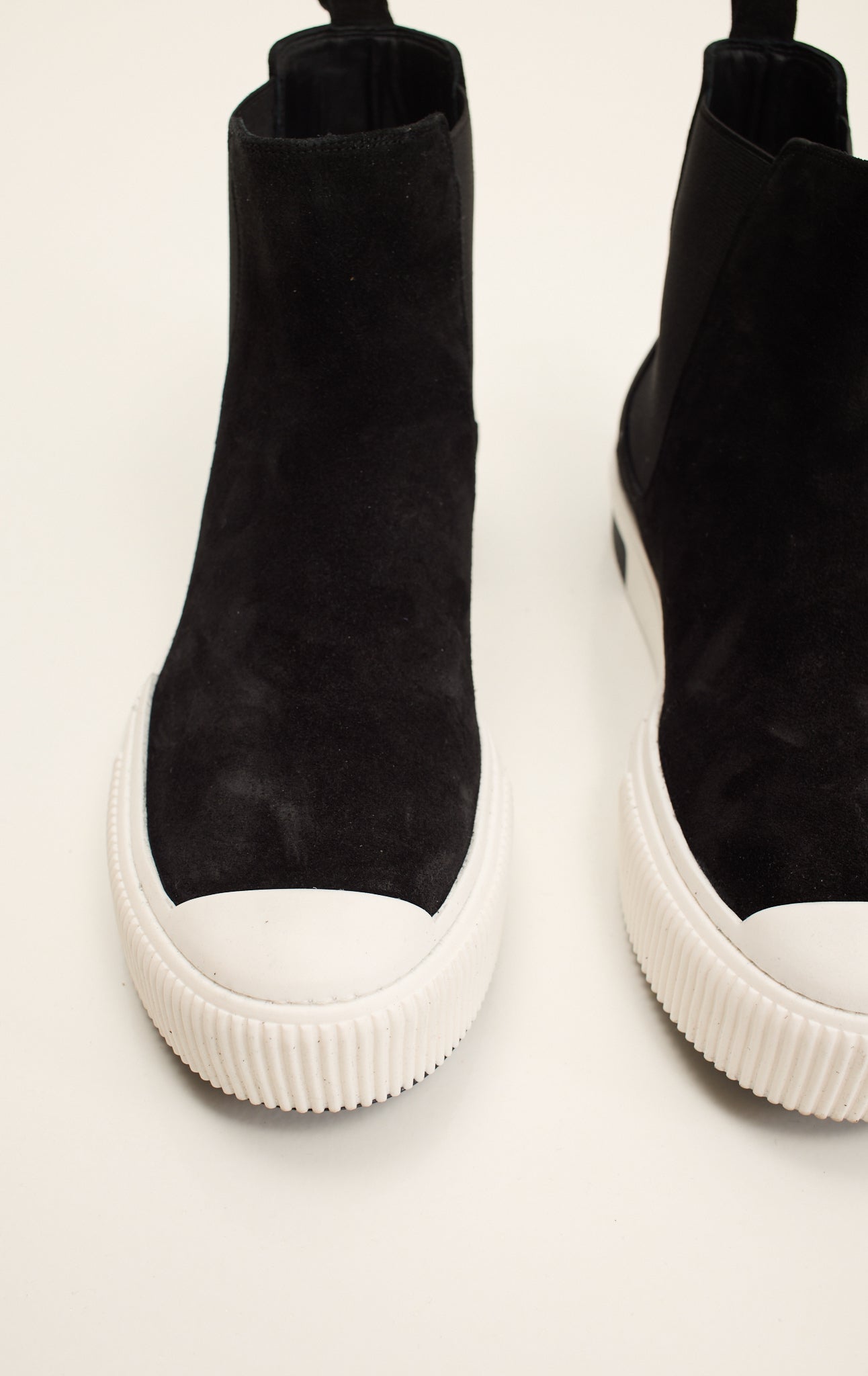 Atribute to Elvis Presley's iconic black & white style. Discover the Ron Tomson Suede Leather and Rubber Sole Chelsea Boots. These handcrafted boots feature a sustainable Gommus rubber outsole and insole, meticulously made in Italy. The soft suede leather upper melds comfort with elegance, while the durable rubber sole ensures longevity and grip. Designed for the discerning individual, these Chelsea boots offer timeless style and exceptional craftsmanship, making them a perfect addition to any wardrobe.