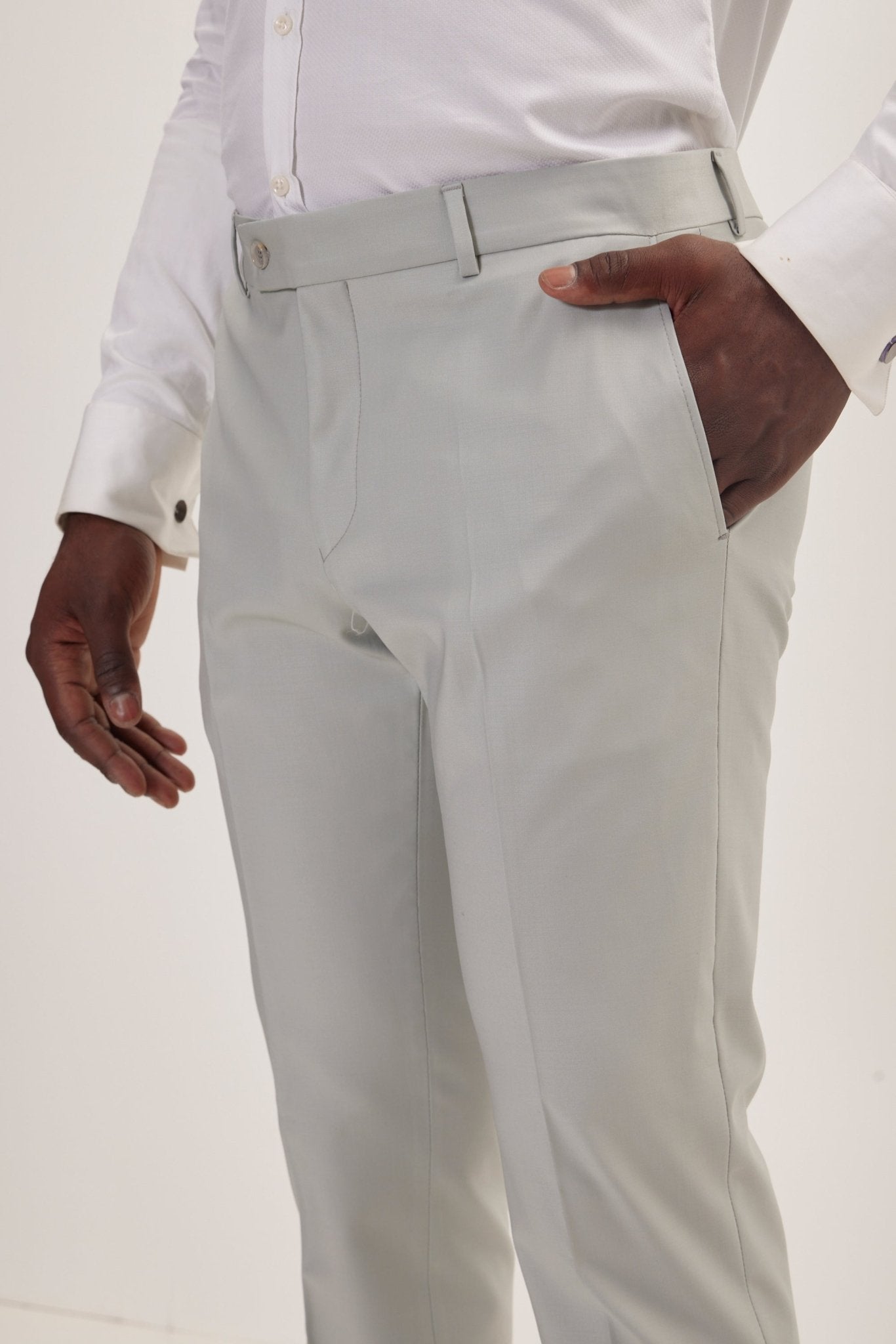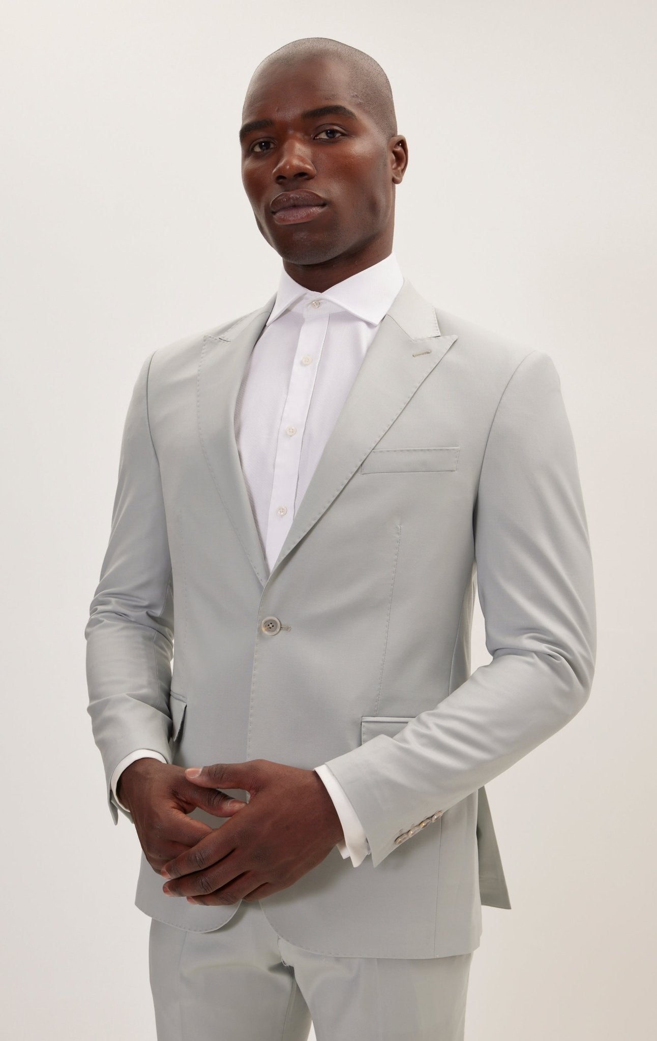 Ron Tomson suits and tuxedos are Drop 8, which means there is an eight-inch difference between the chest and the waist. For example, if your chest size is 38 inches, your suit will come with 30-inch waist pants. If you are in-between sizes, we recommend getting a larger size and tailoring down (if necessary). Our suits have a tailored fit, which requires minimal tailoring(if any).