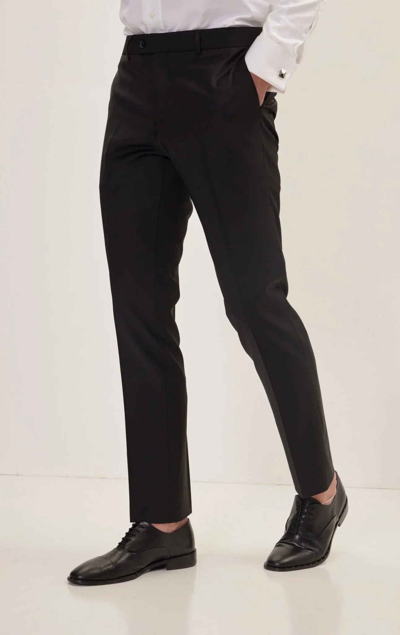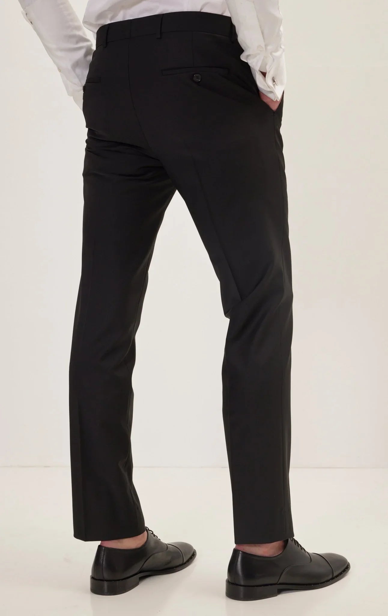 Completing the ensemble are the straight pants with a 20 cm bottom, offering a contemporary and tailored fit that perfectly complements the jacket.