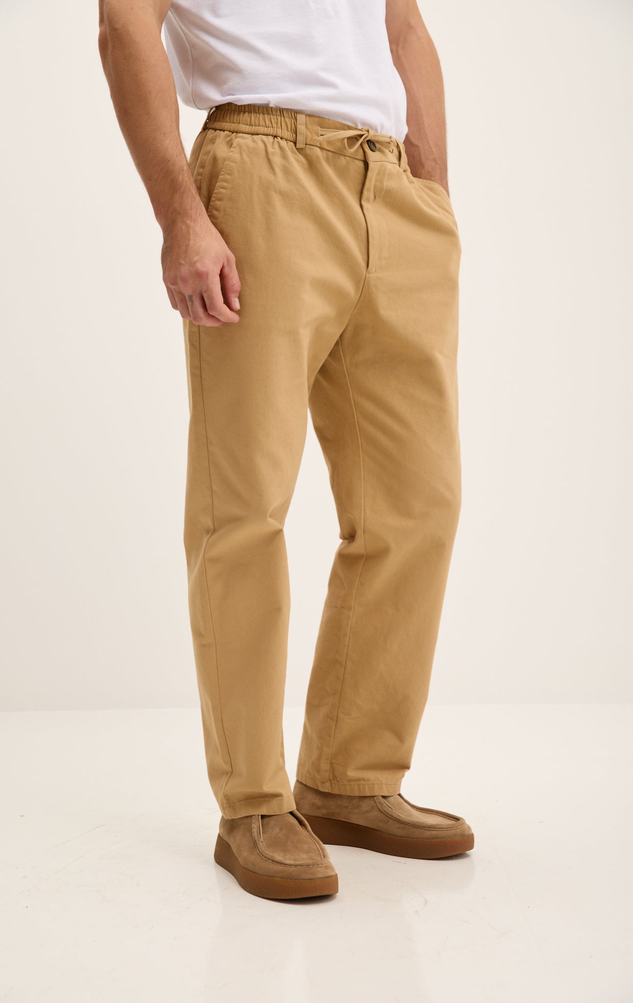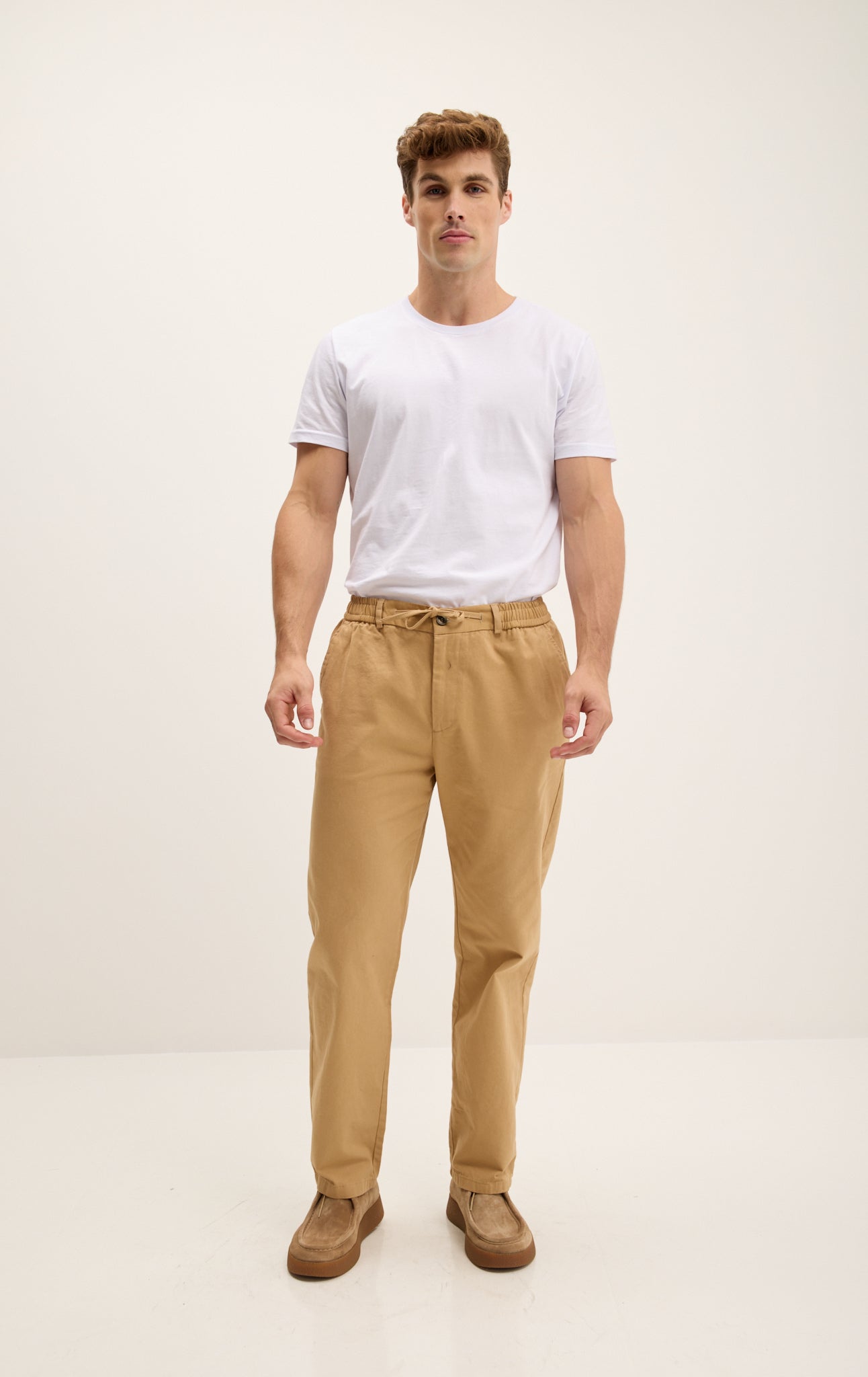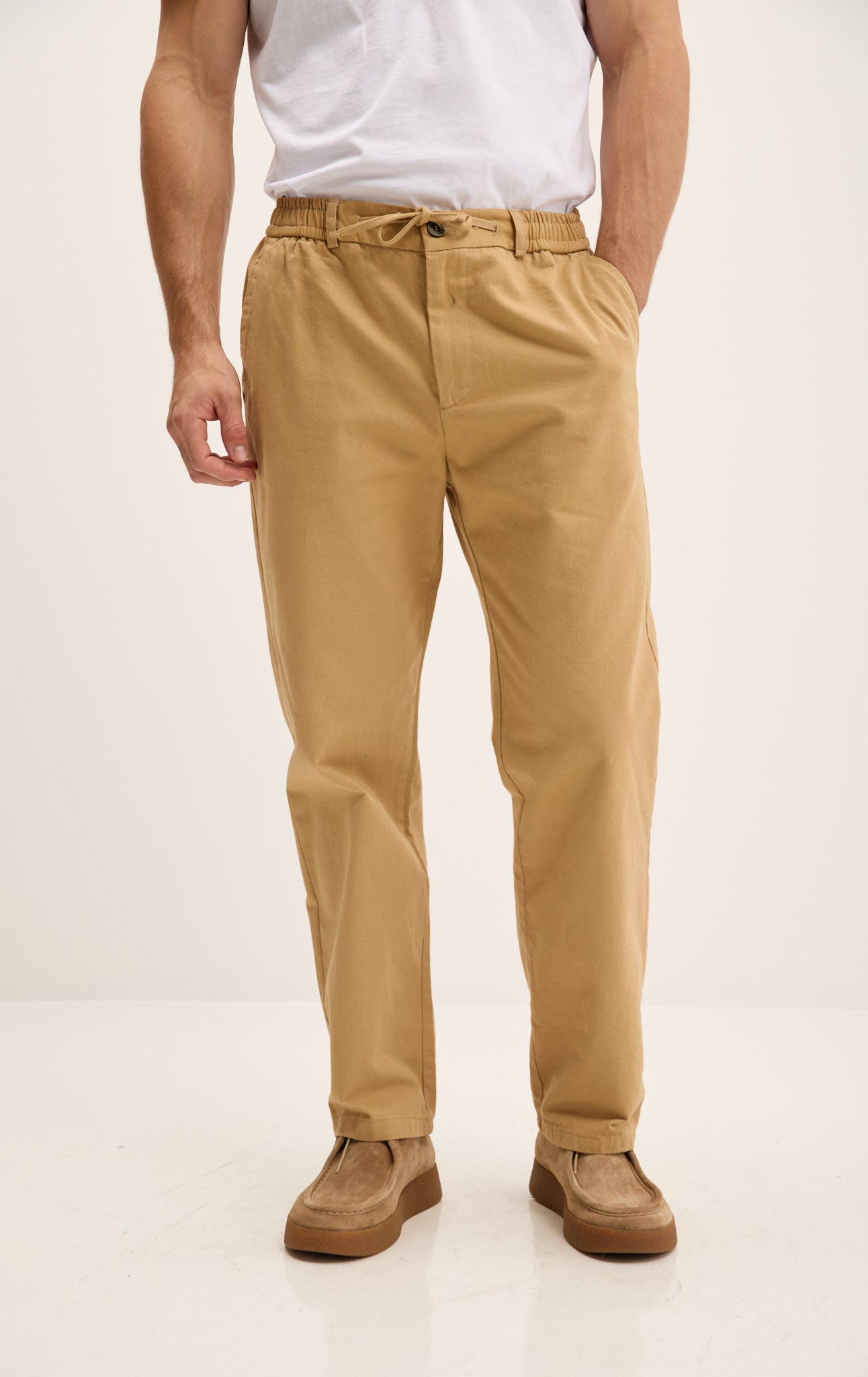Relaxed Drawstring Casual Cotton Pants - Camel