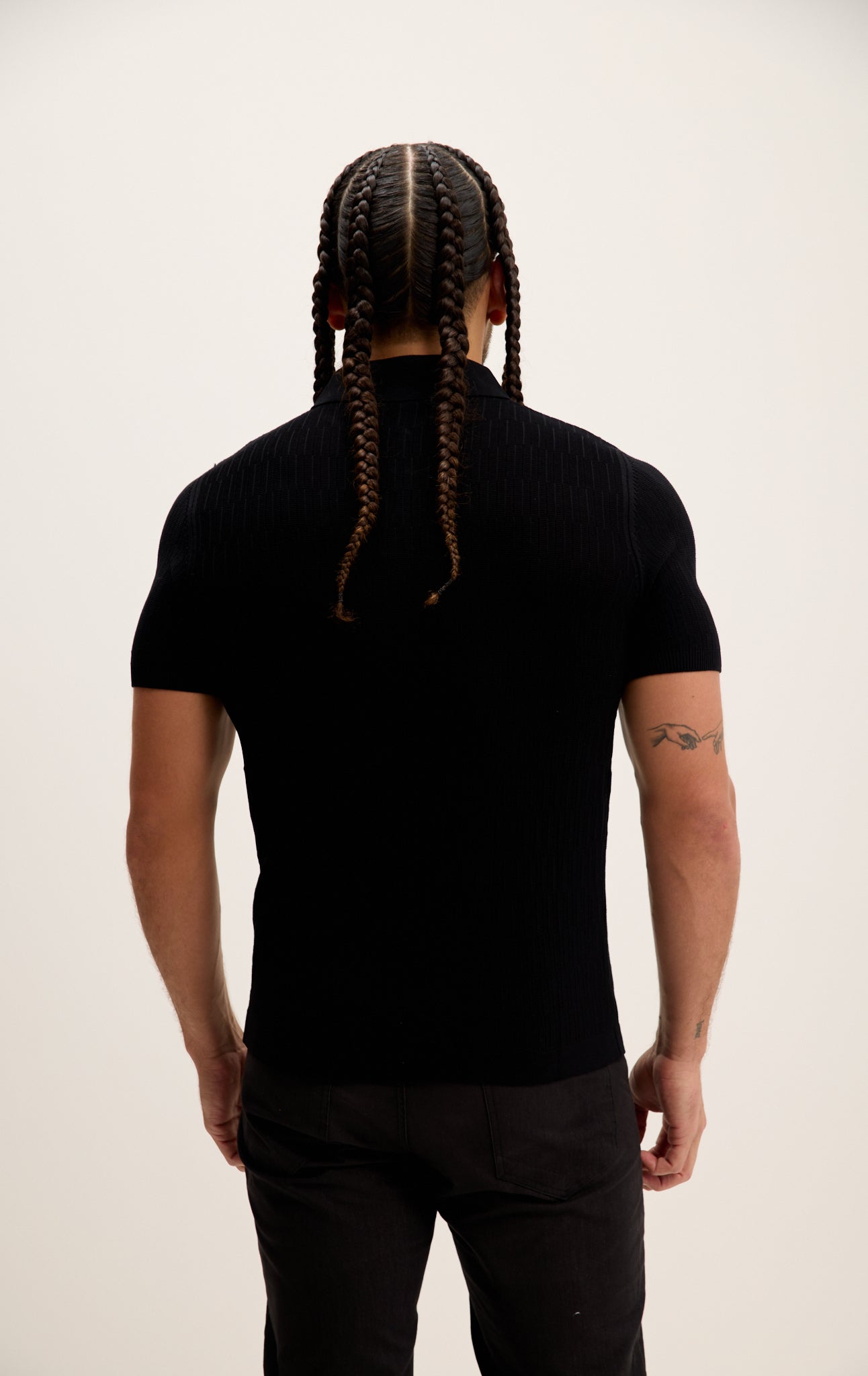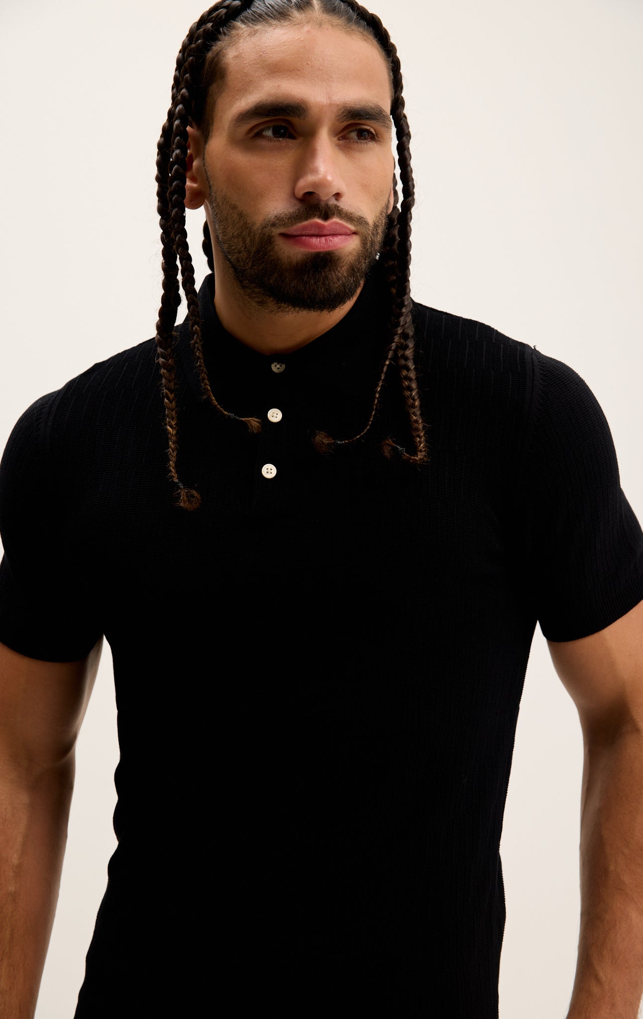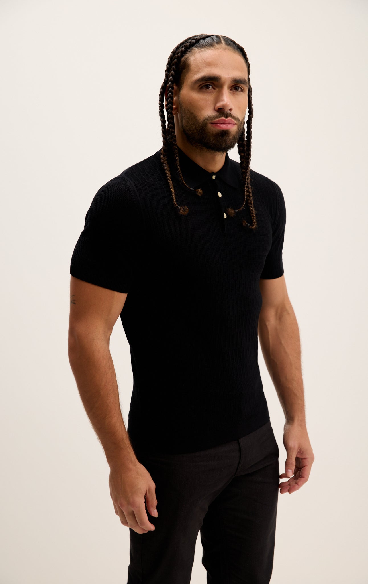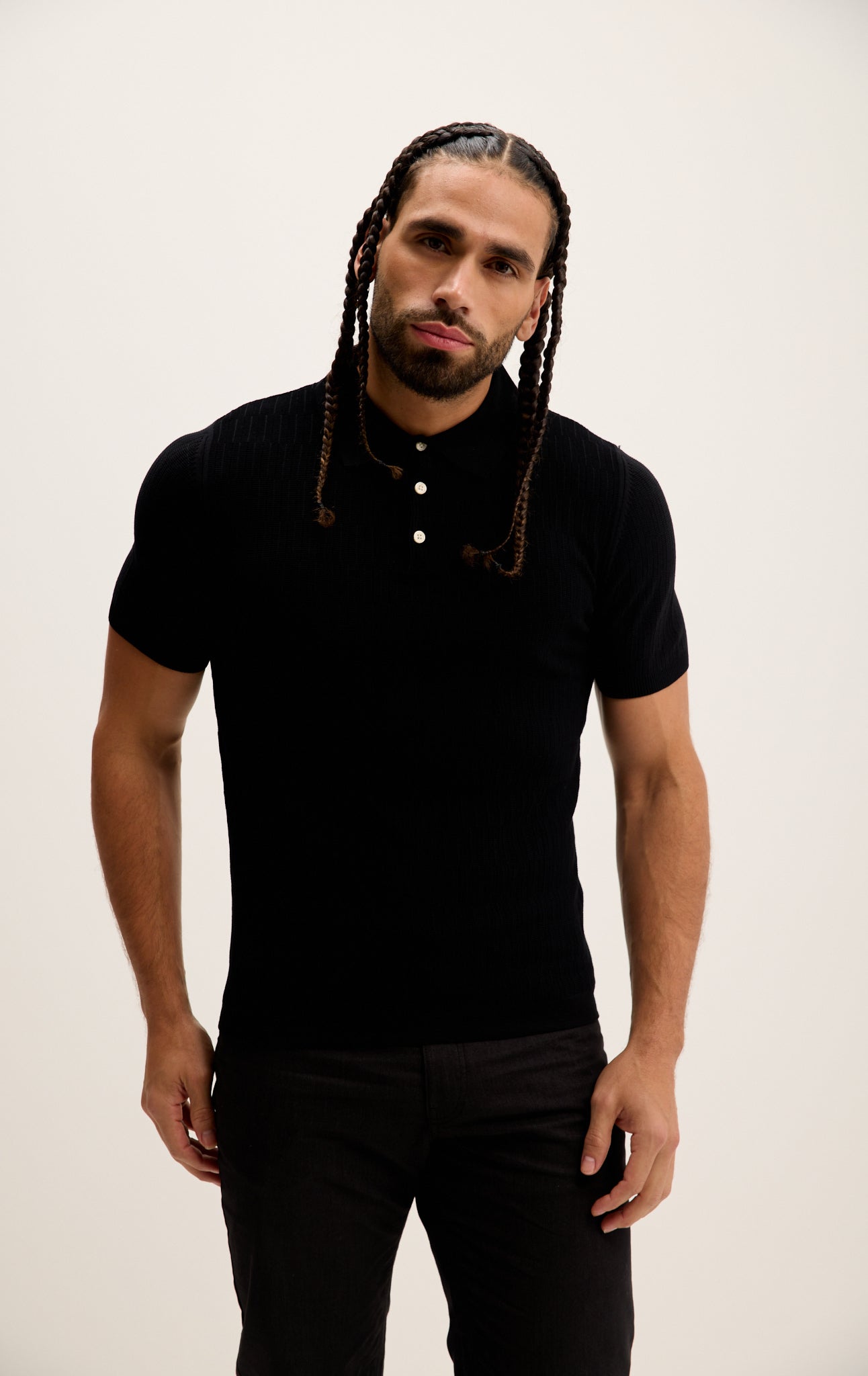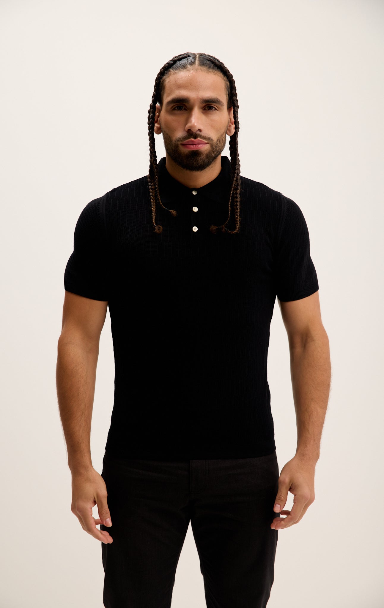 Short Sleeve Textured Polo Shirt - Black
