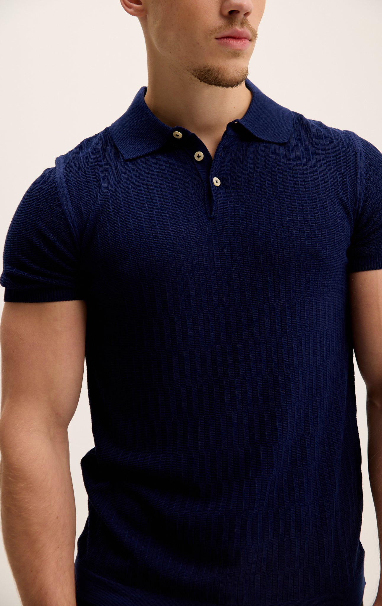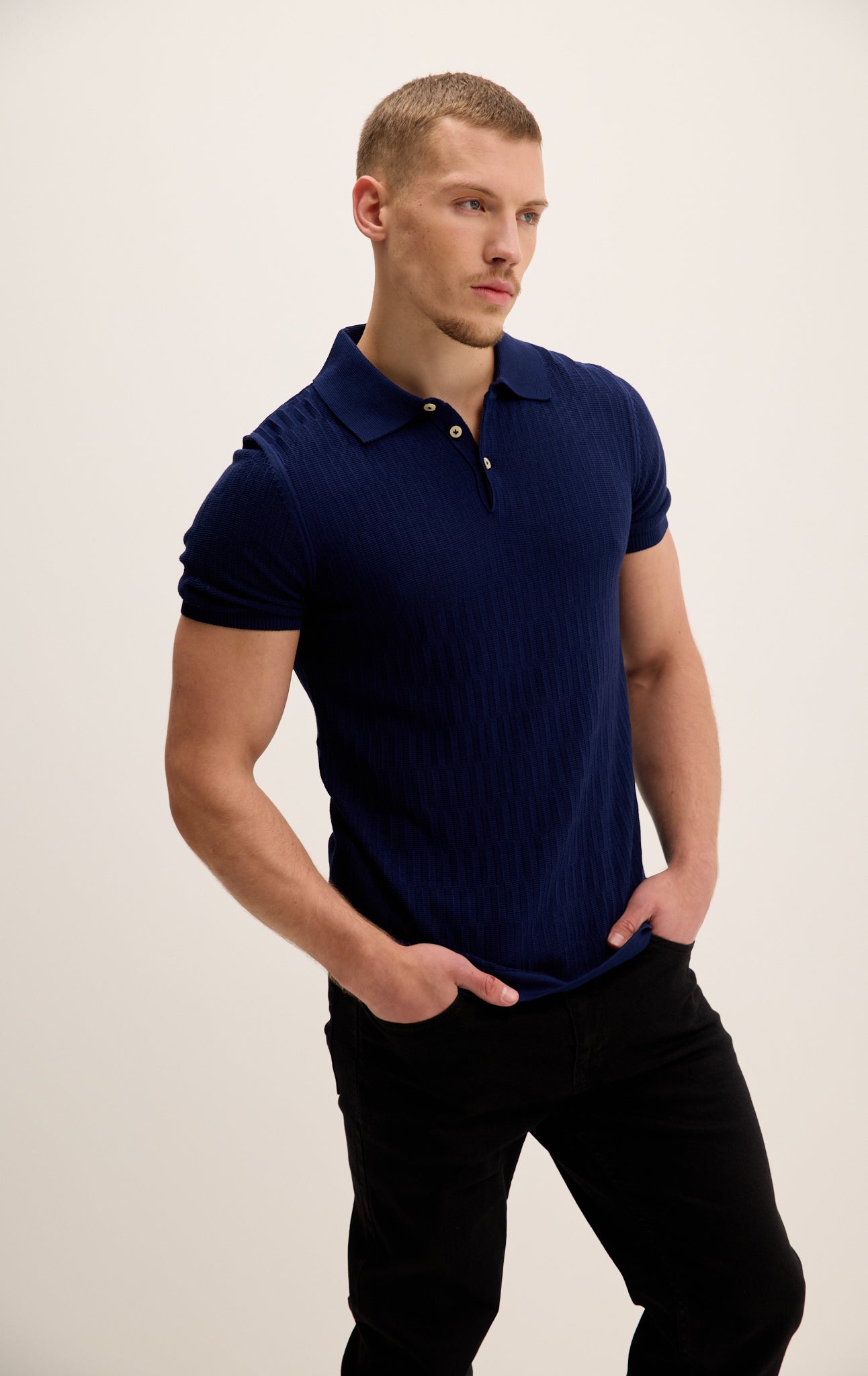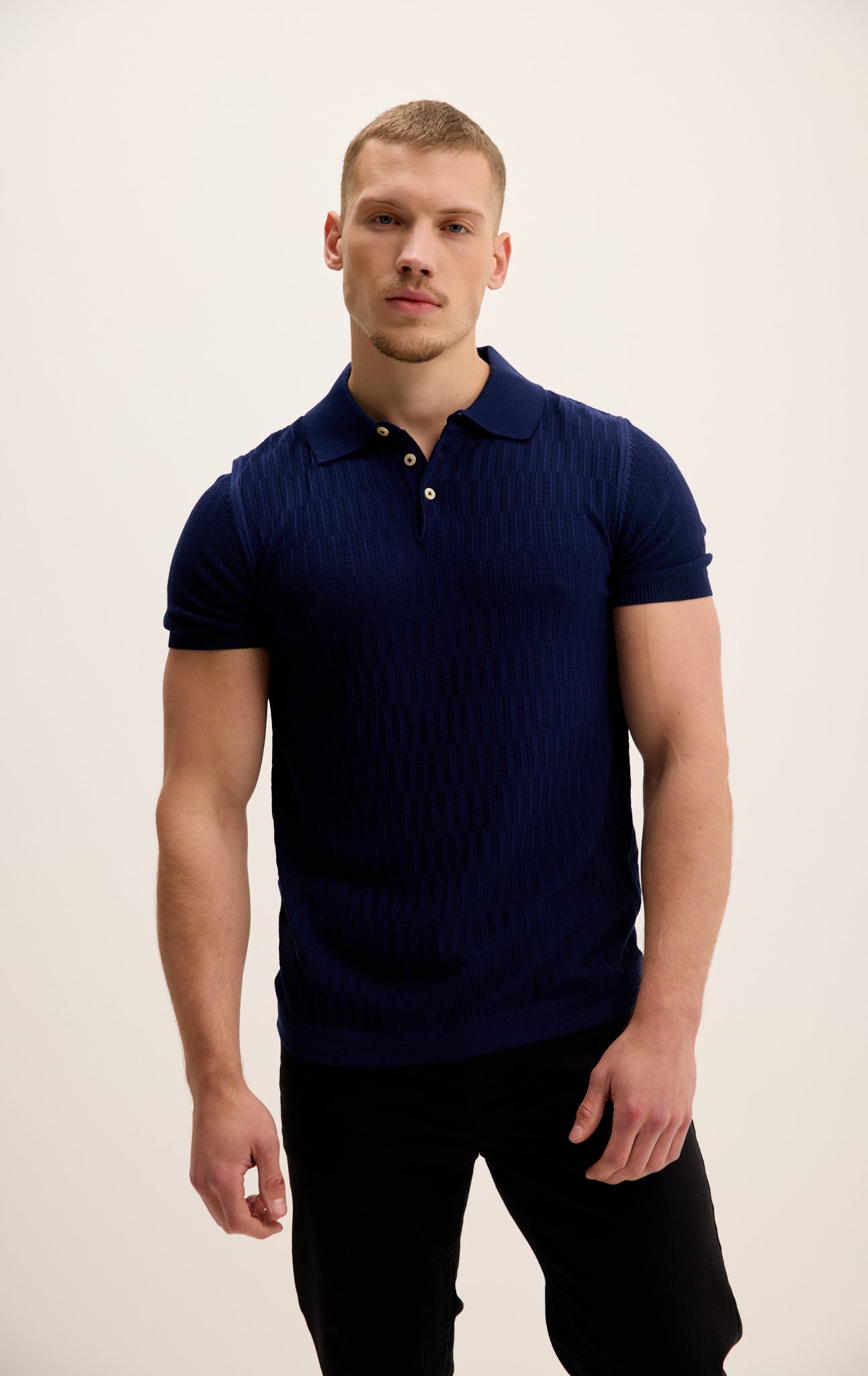 Lightweight breathable viscose with a trendy textured design. Finished but not elasticized hem for extra comfort. Classic 3-button Polo Shirt structure. Perfect to pair with jeans, shorts, linen pants and with suit separates.