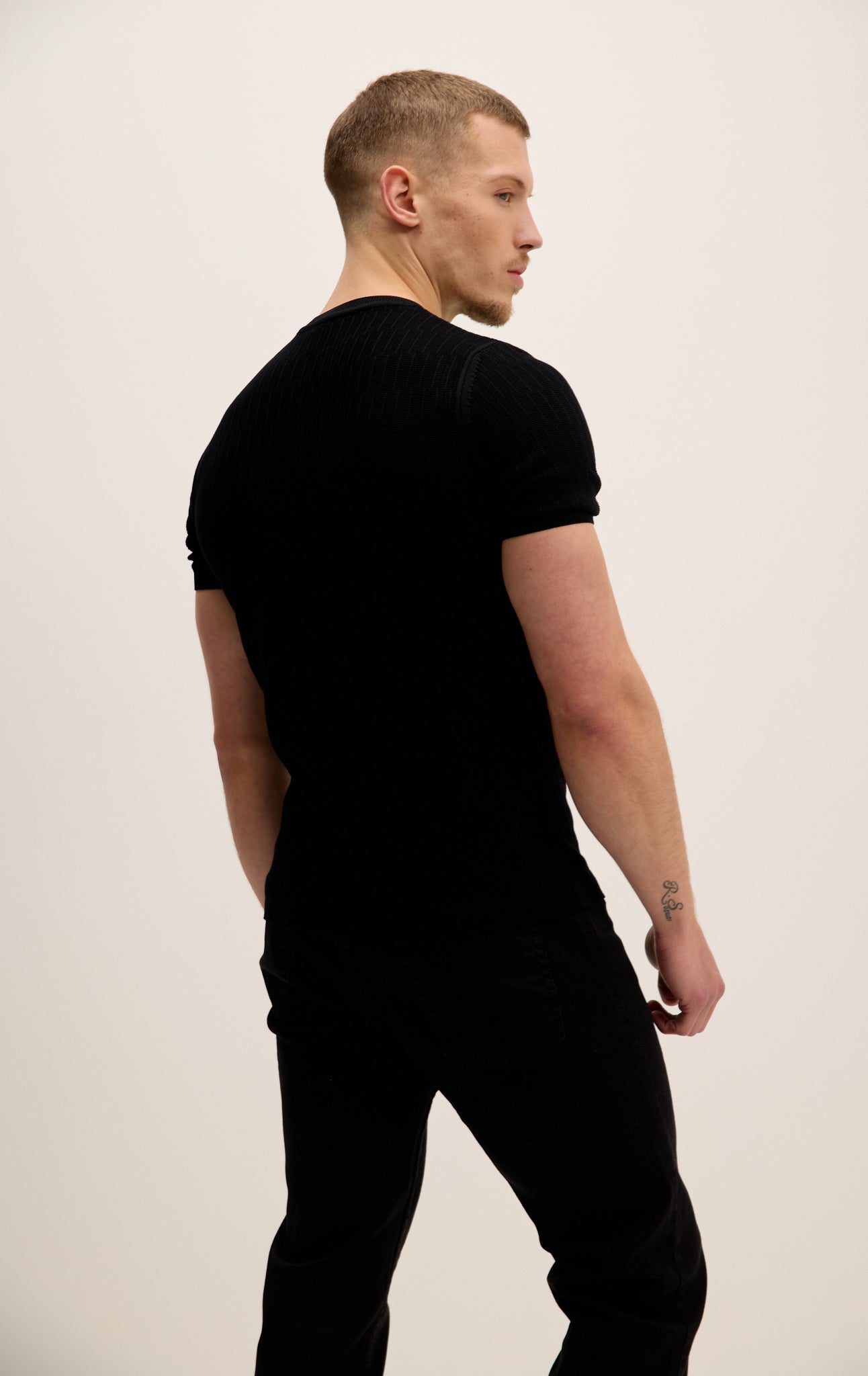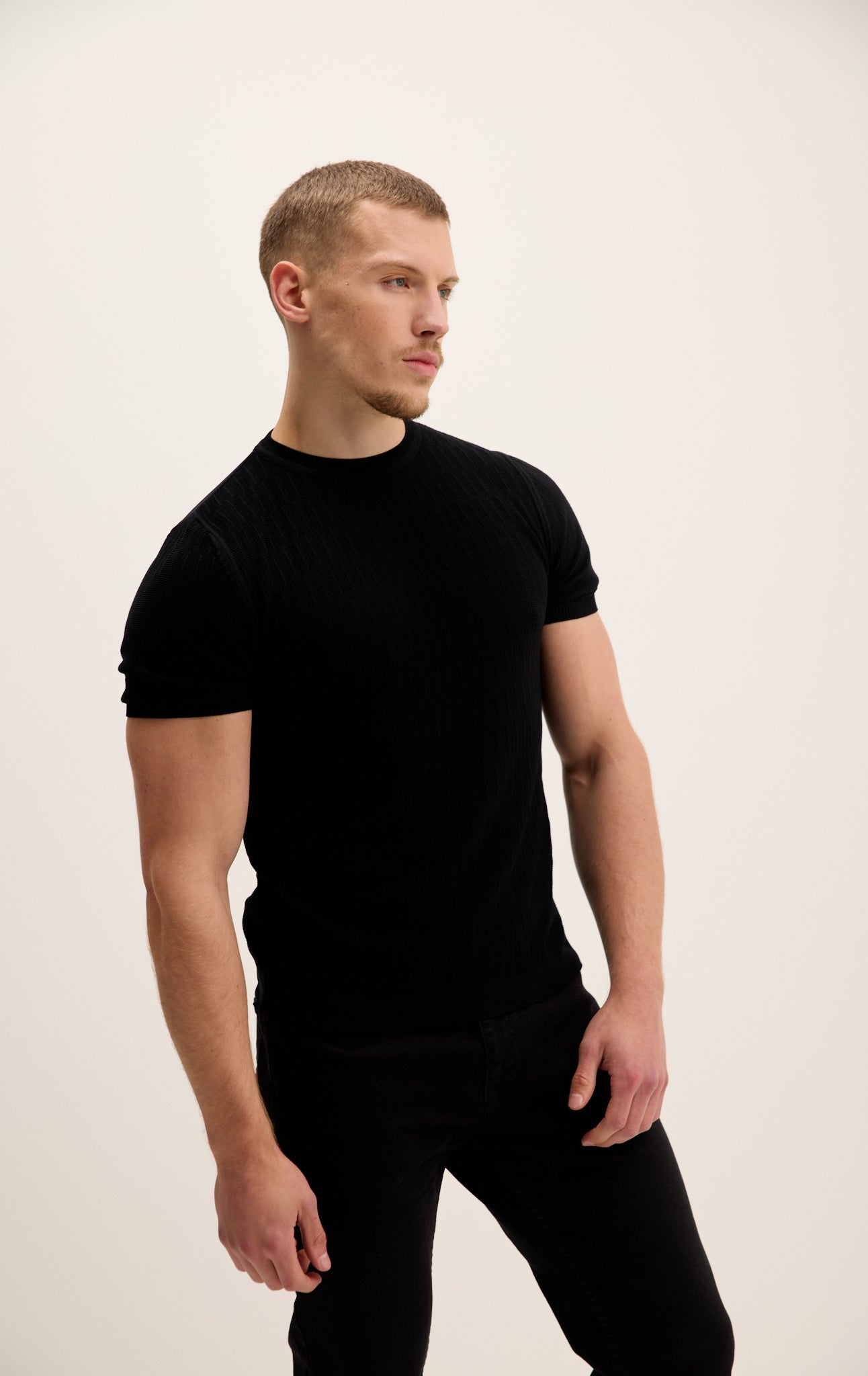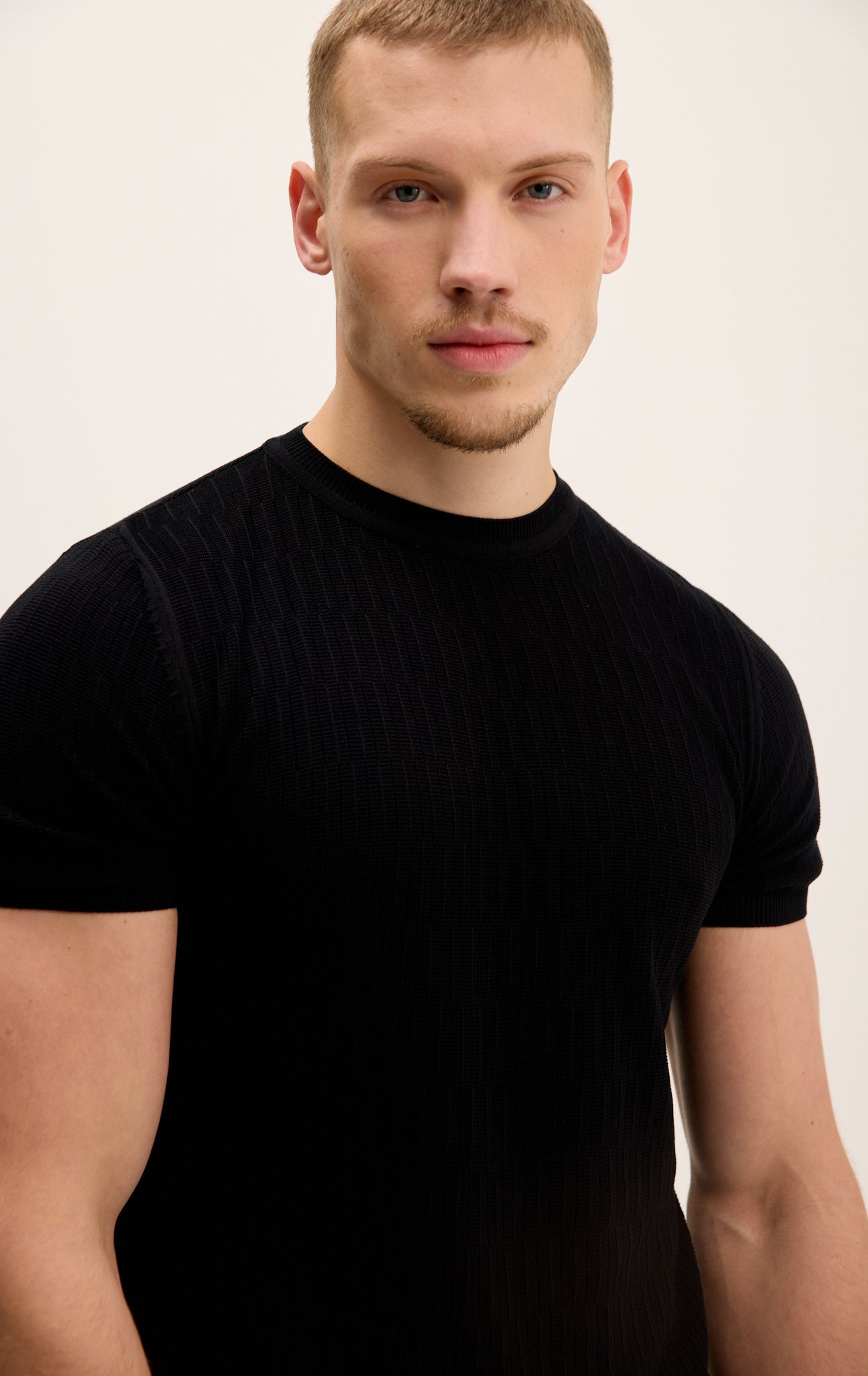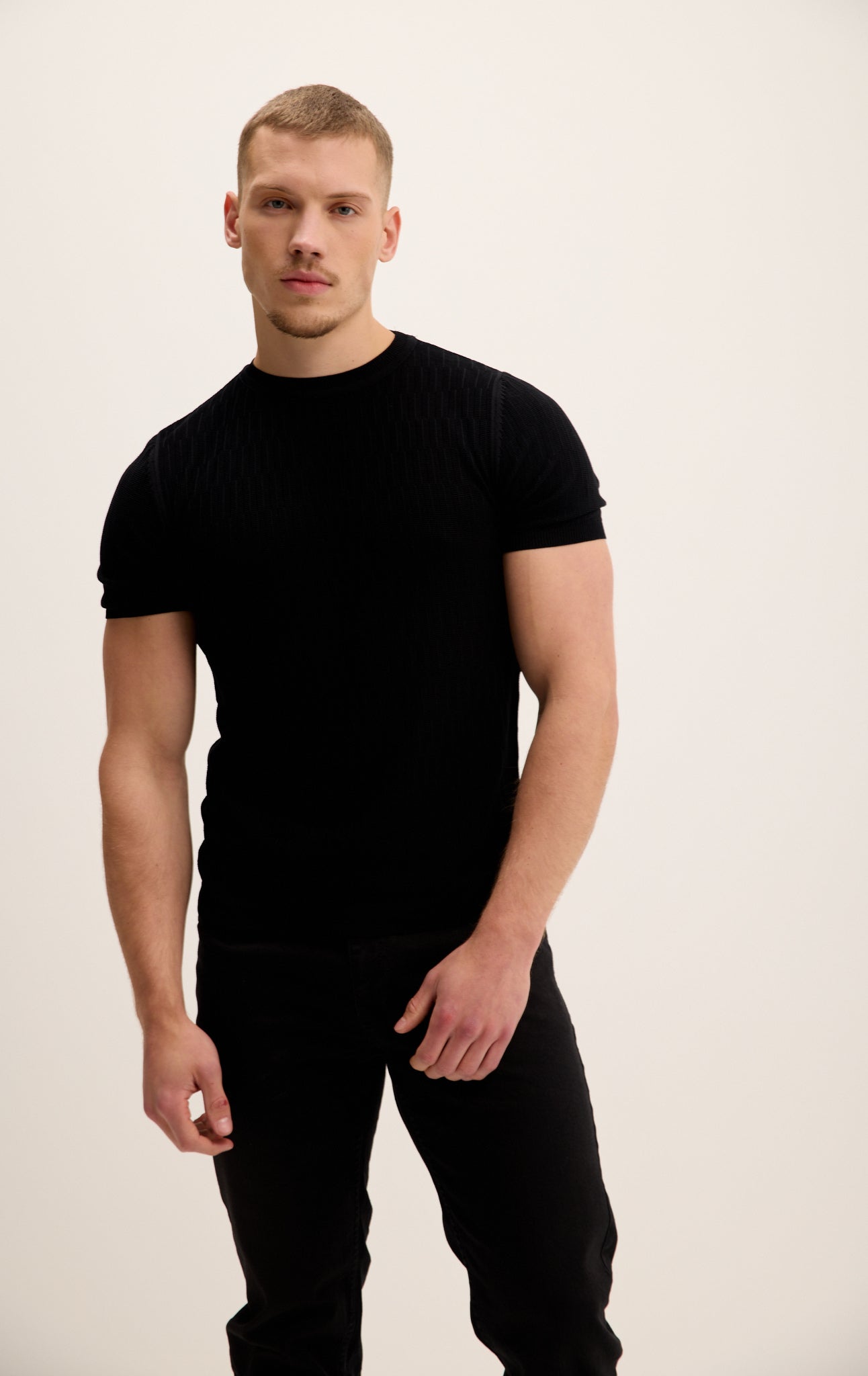 Lightweight breathable viscose with a trendy textured design. Finished but not elasticized hem for extra comfort. Modern and relaxed crew neck. Perfect to pair with jeans, shorts, linen pants and with suit separates.