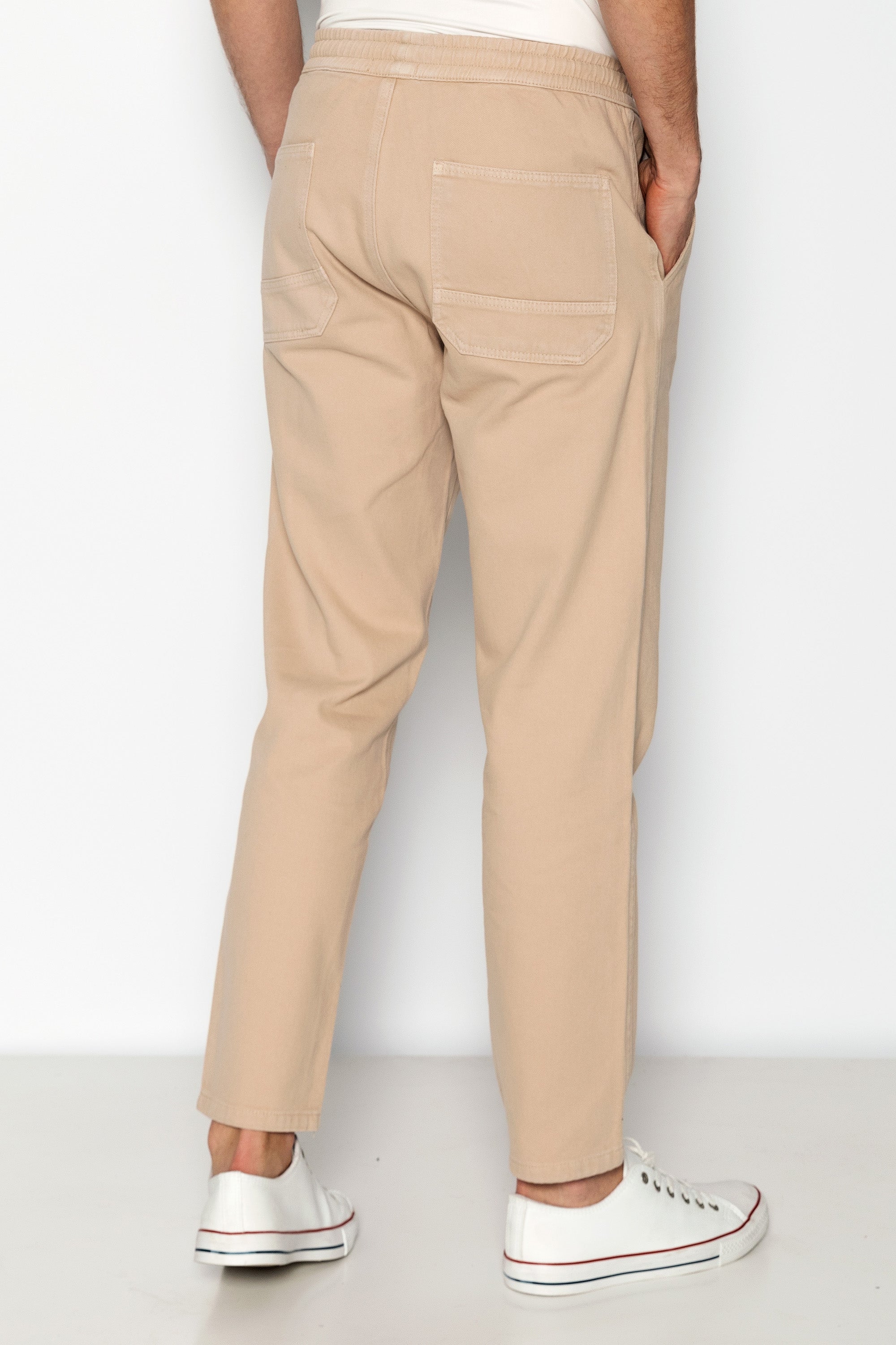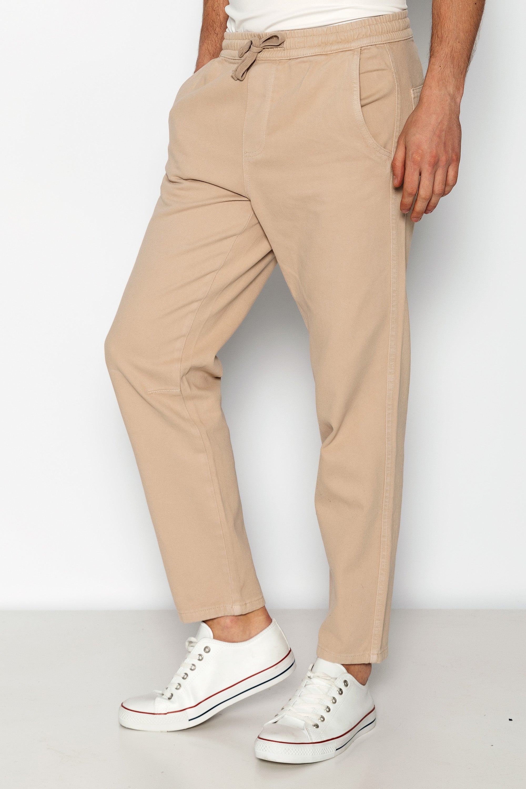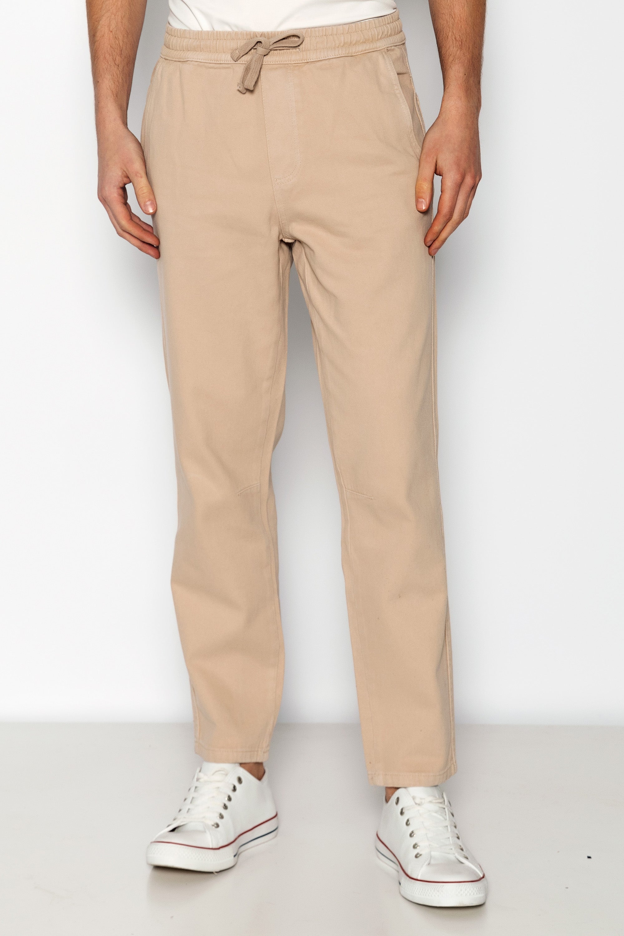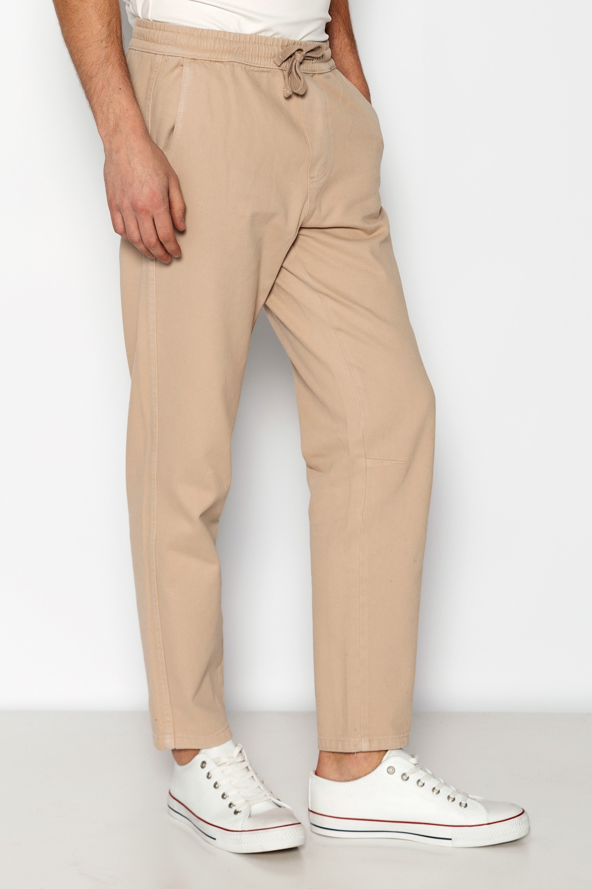 Straight Tapered Cotton Pants - Beige