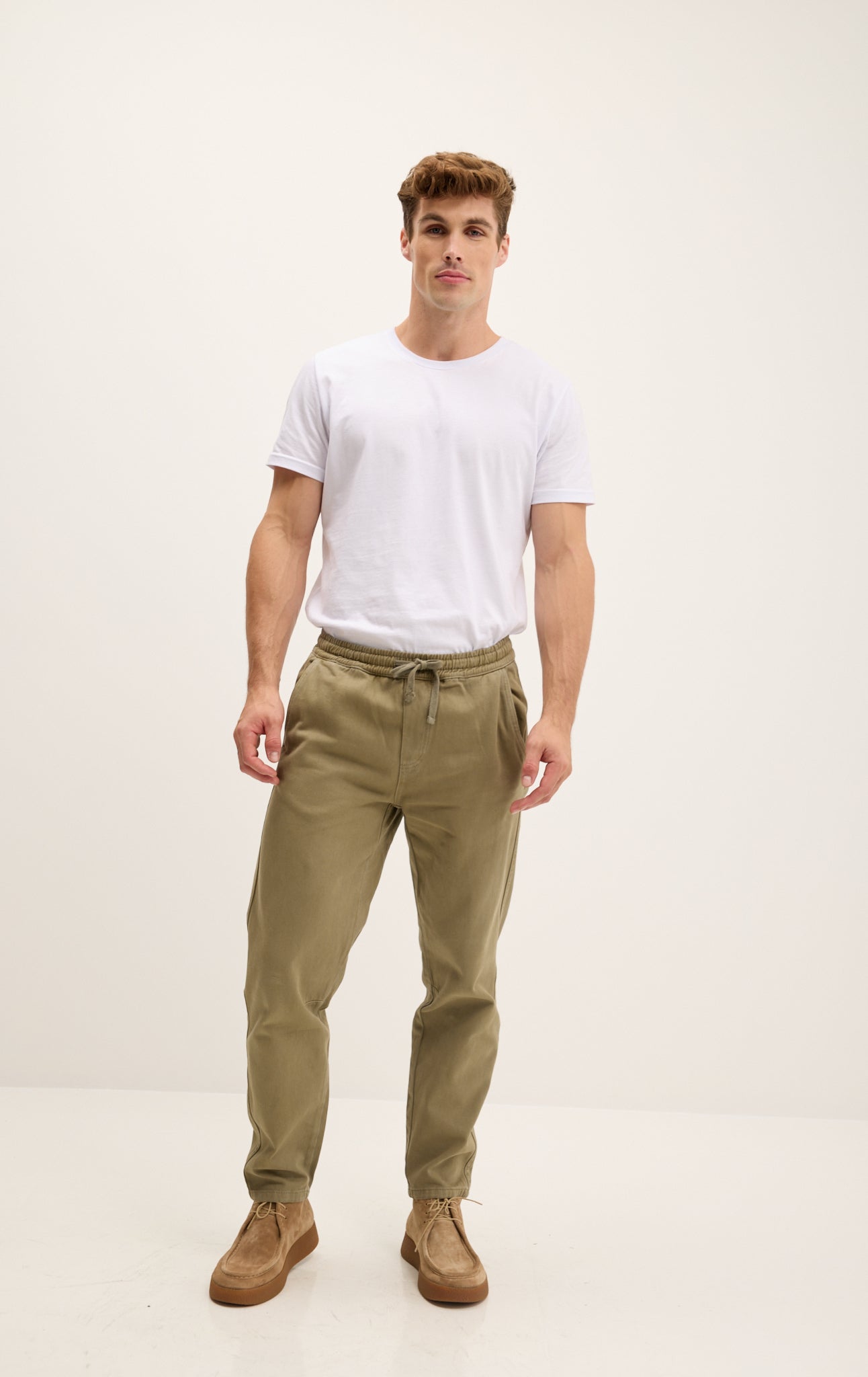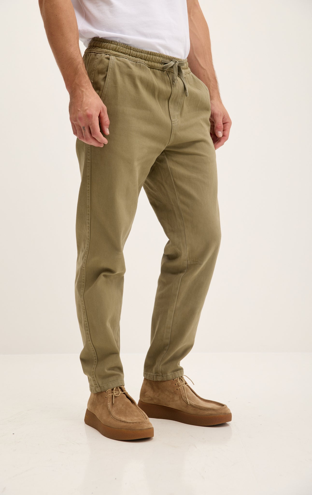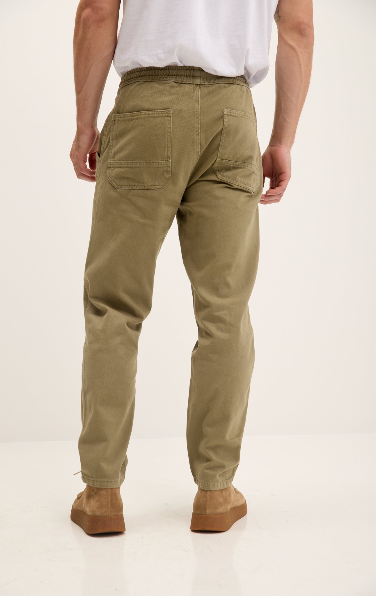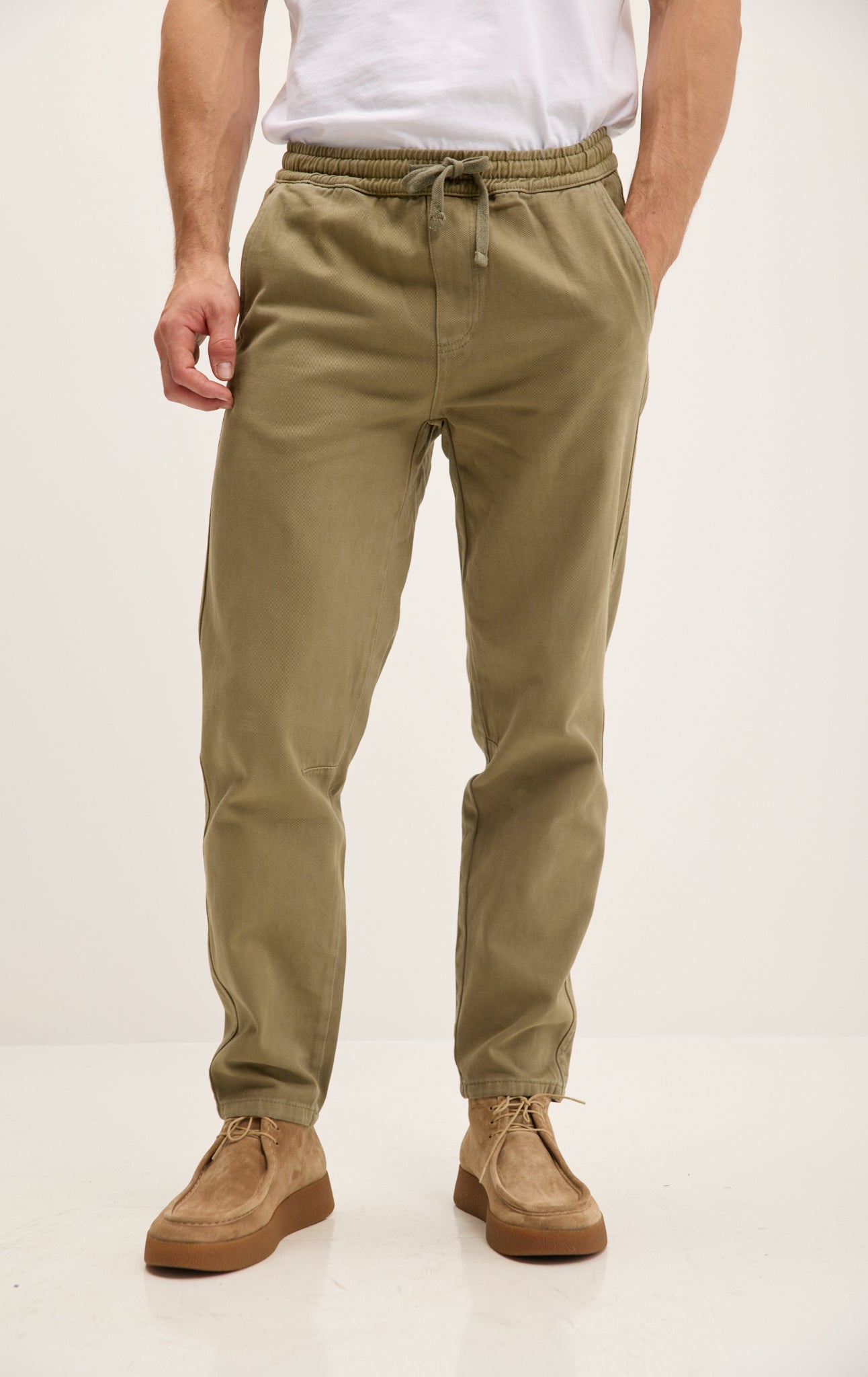 Straight Tapered Cotton Pants - Khaki