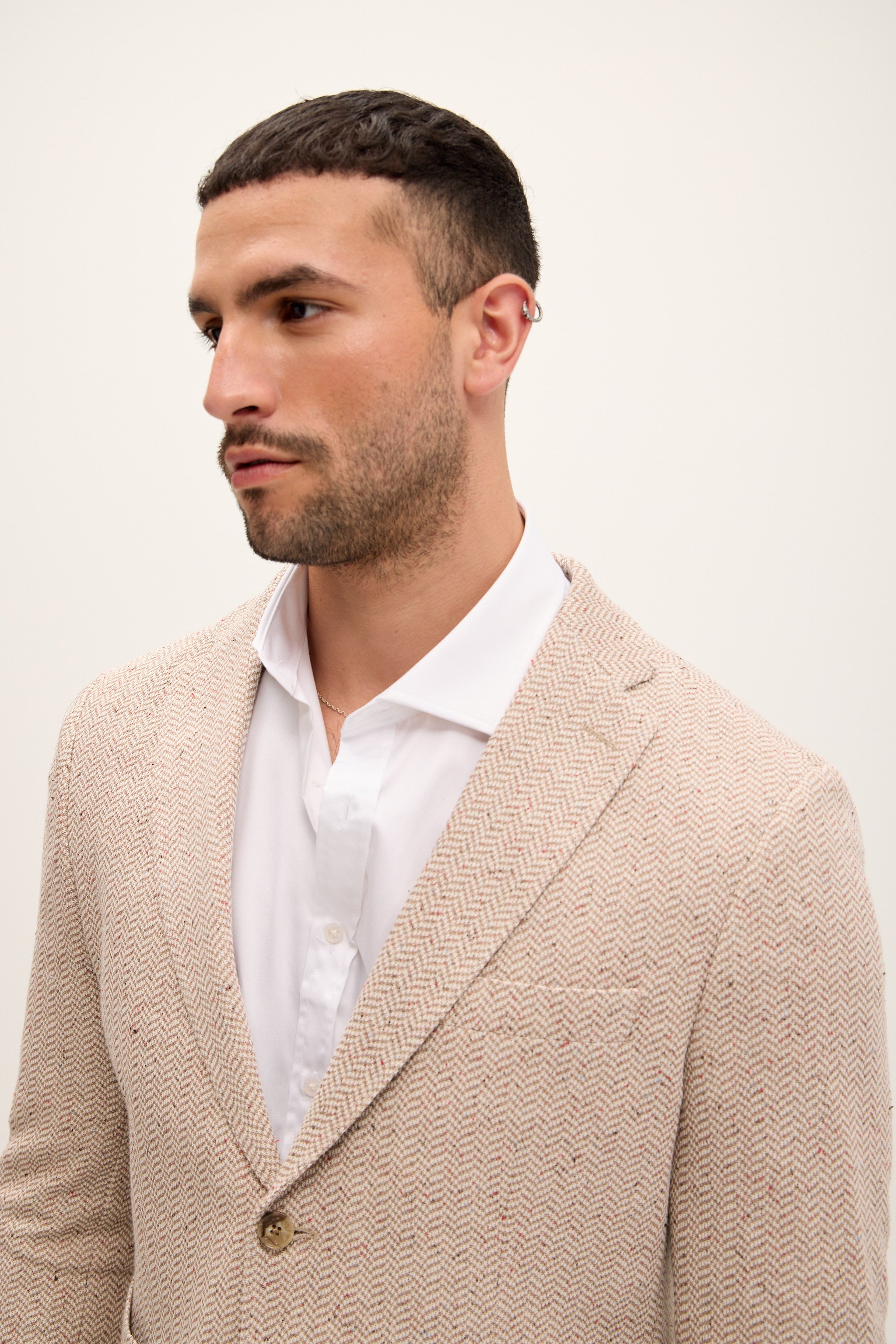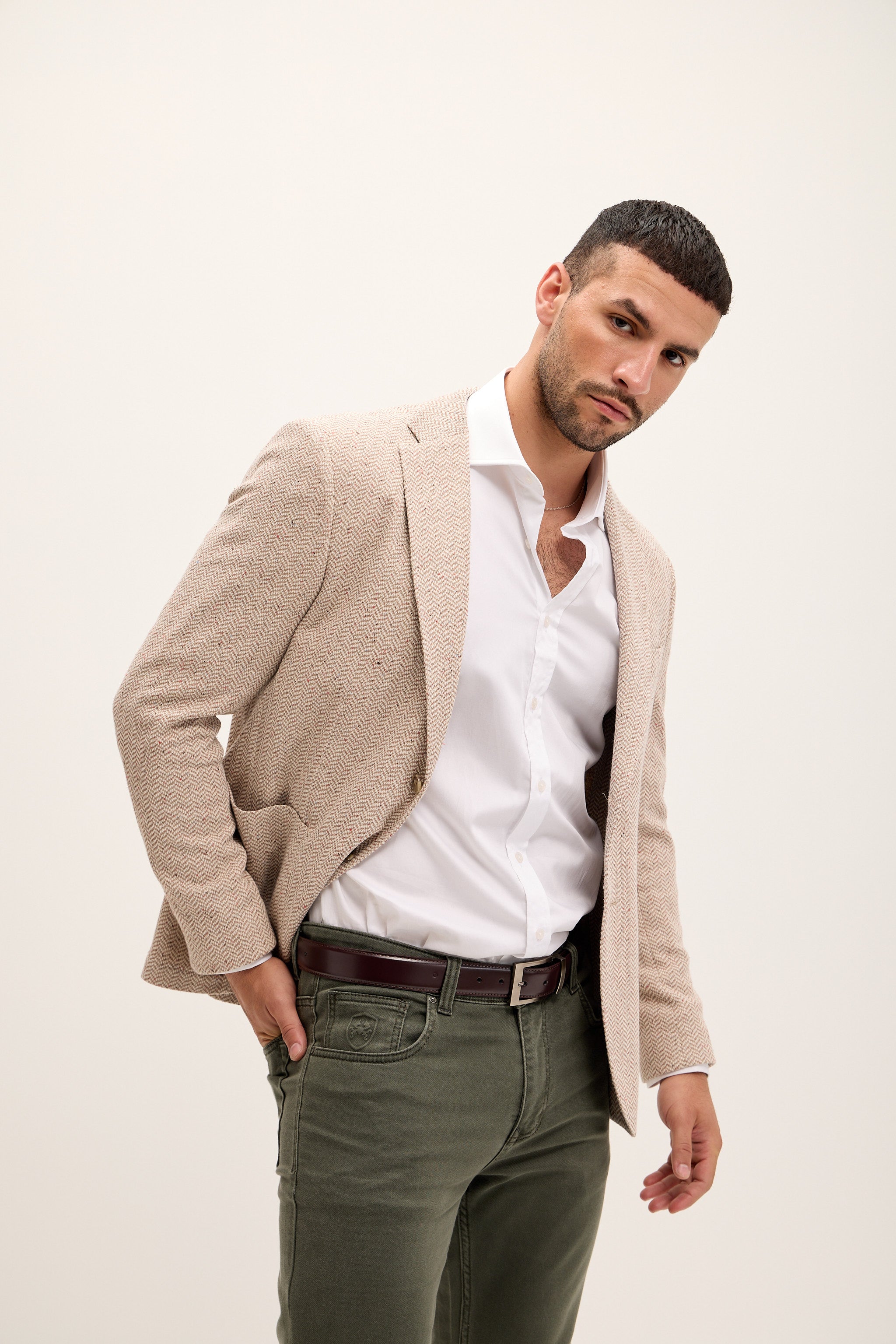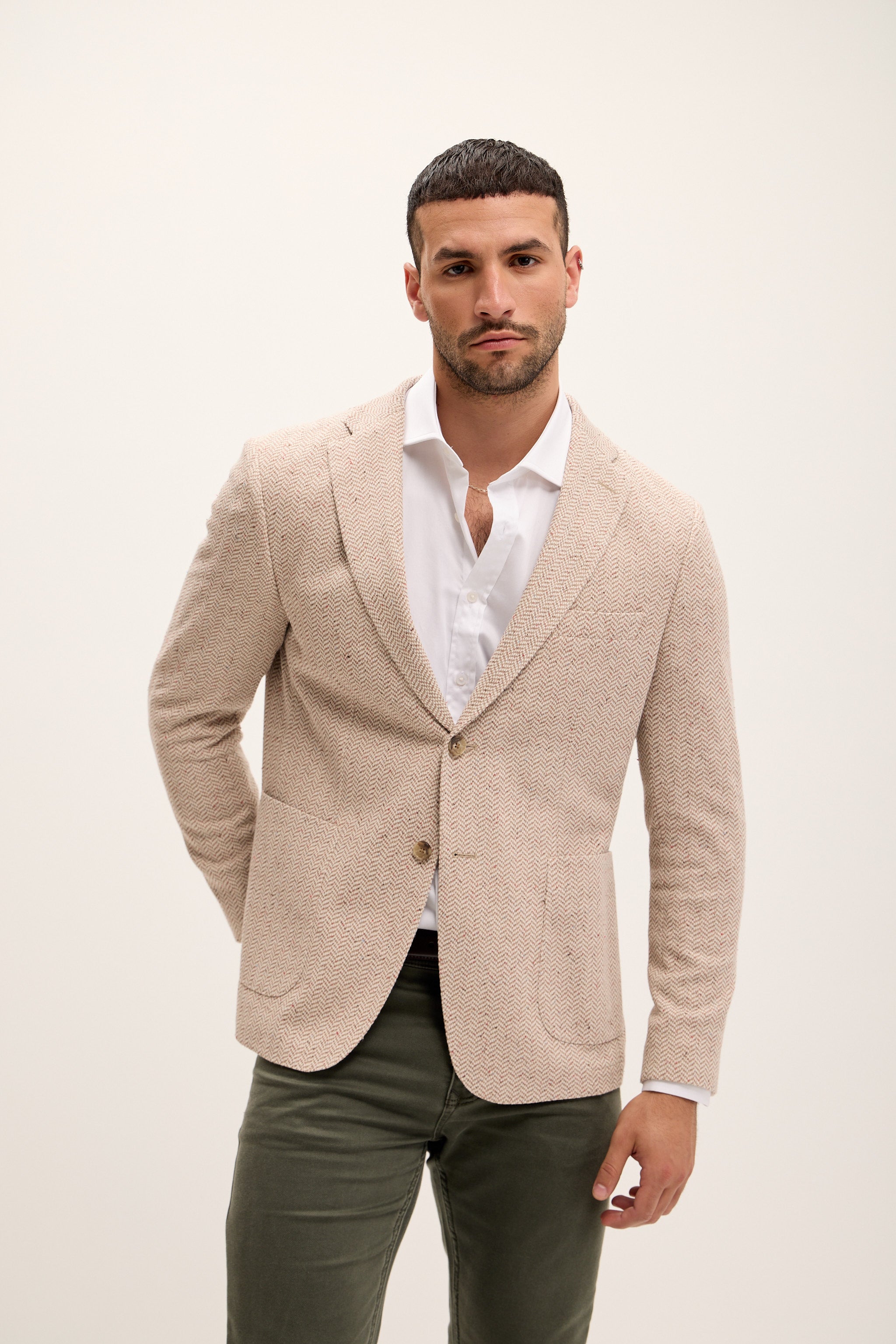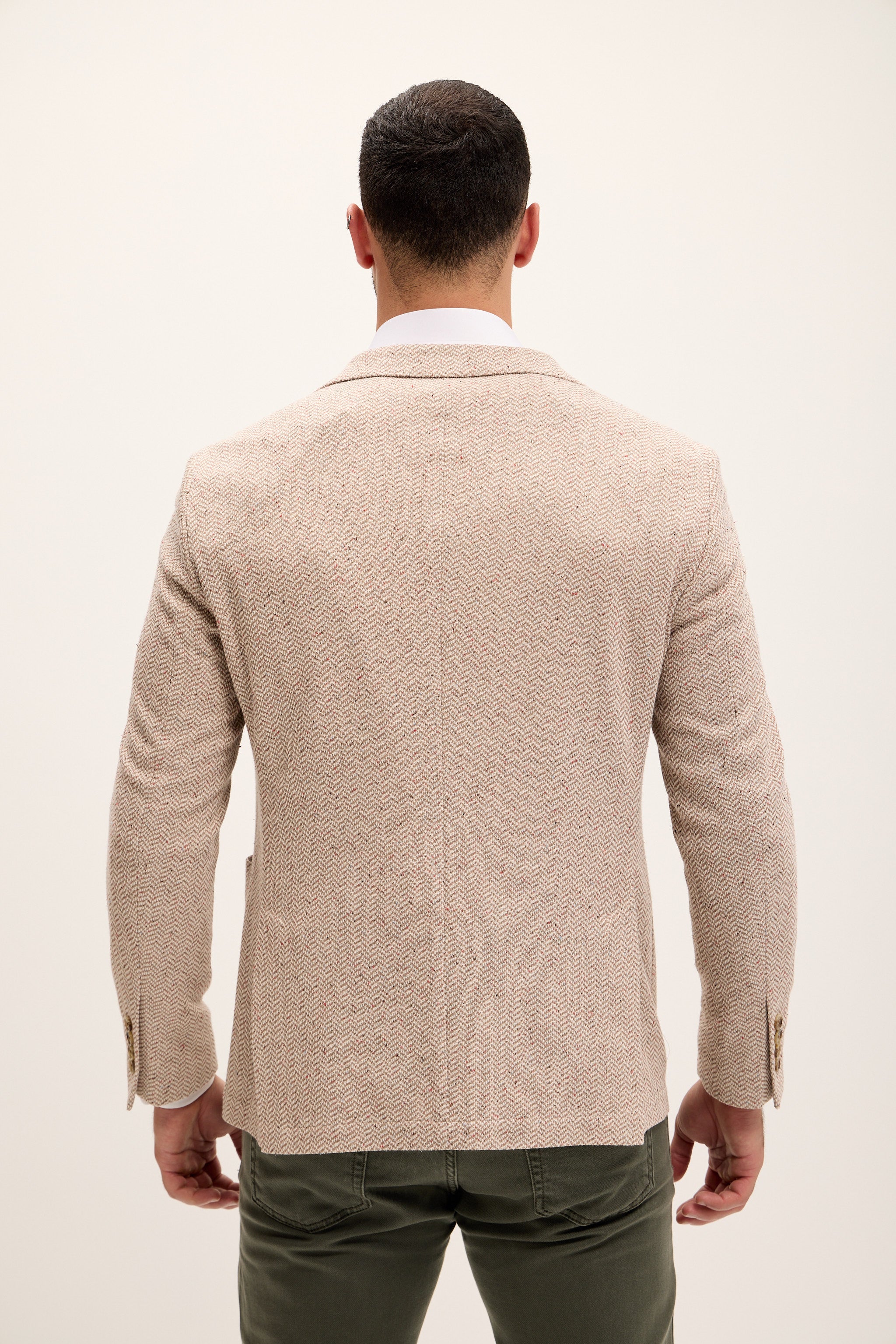 Tailored Fit Patch Pocket Jacket in Cotton Blend - Beige Brown