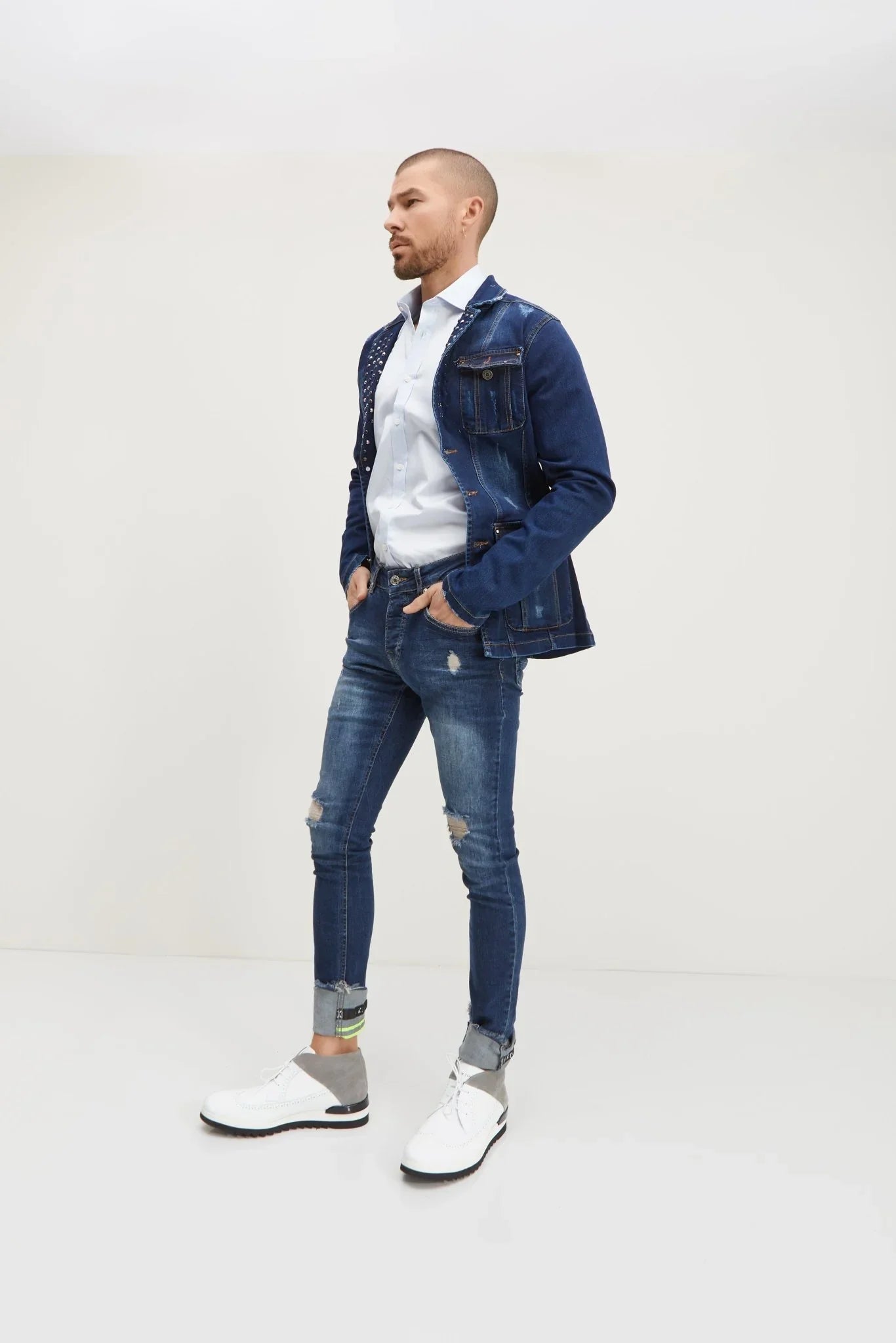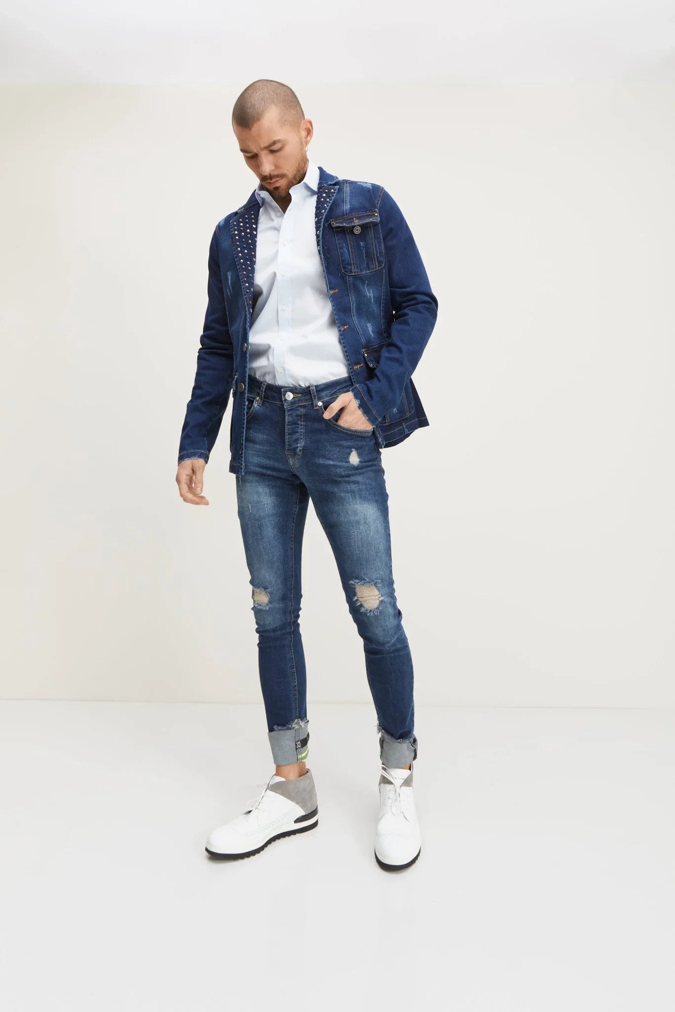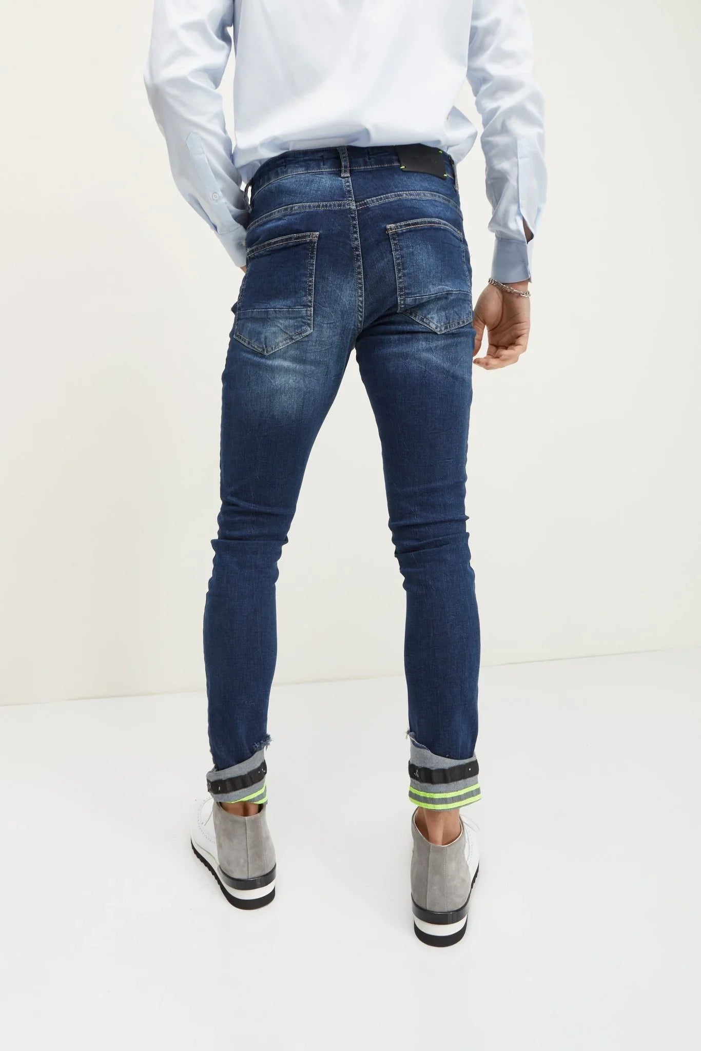 N° 1599 НЕОНОВЫЕ ДЖИНСОВЫЕ ОТРАЖАТЕЛИ СКИННИ С ЗАКЛЕПКАМИ - ТЕМНО-СИНИЙ
