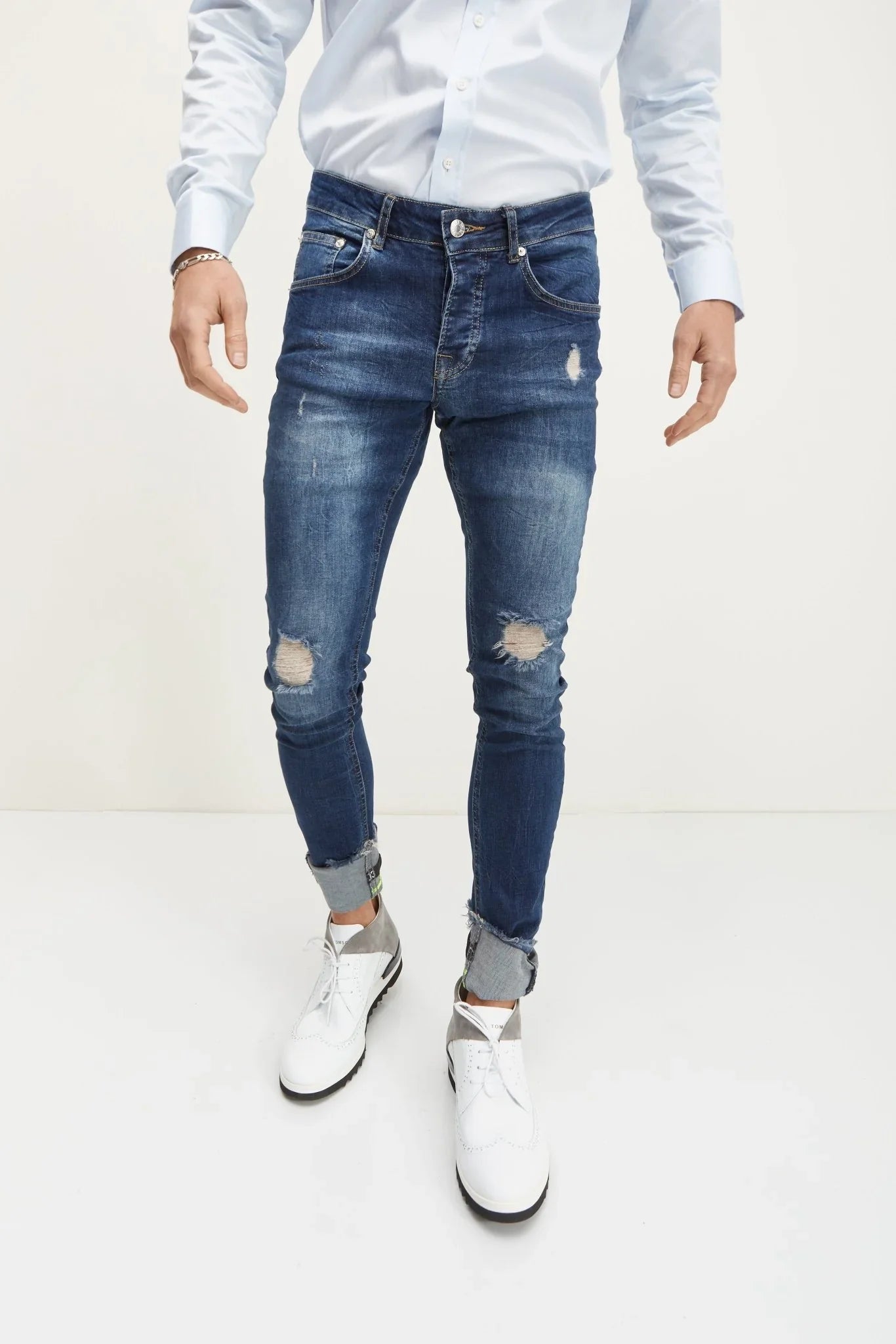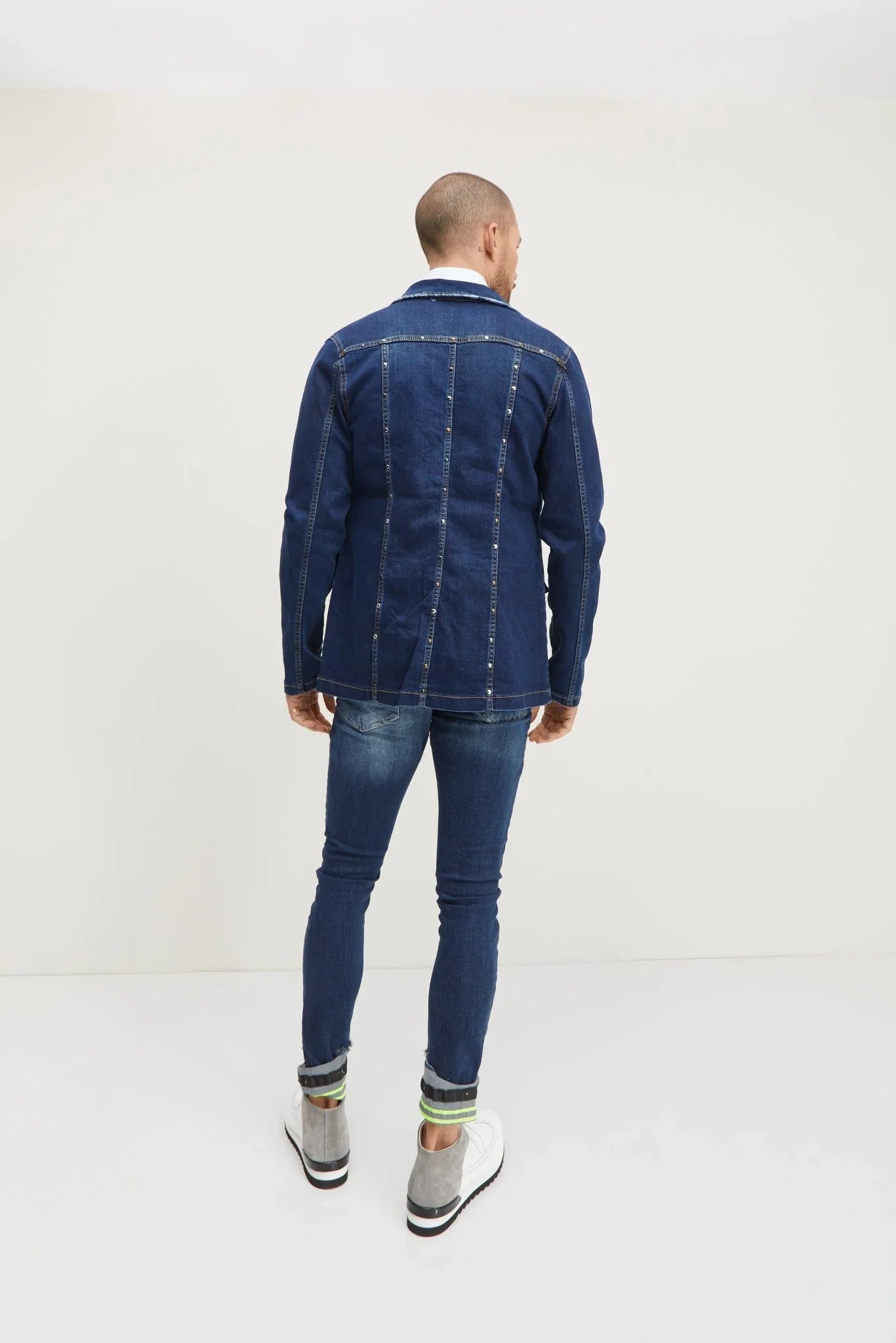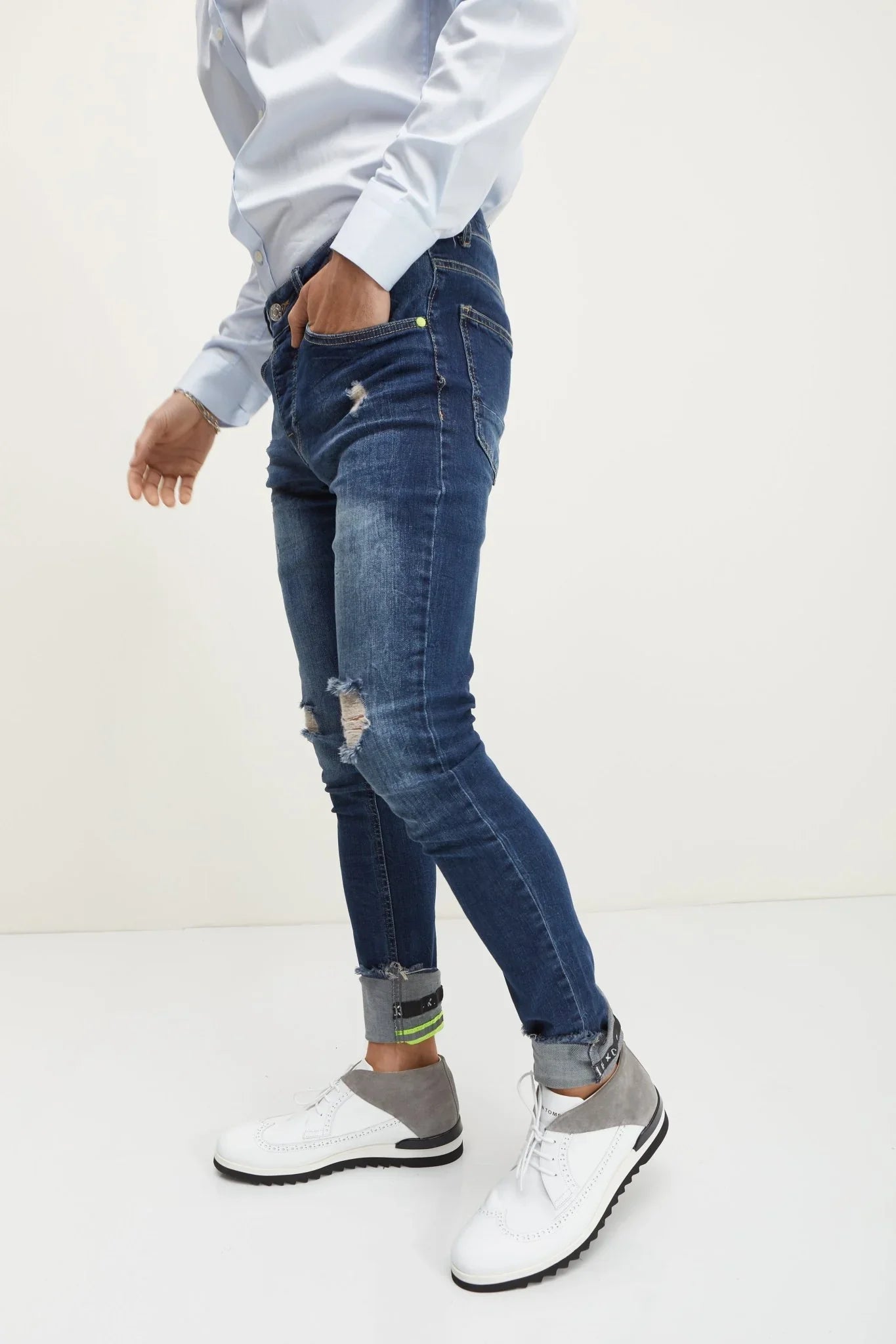 N° 1599 НЕОНОВЫЕ ДЖИНСОВЫЕ ОТРАЖАТЕЛИ СКИННИ С ЗАКЛЕПКАМИ - ТЕМНО-СИНИЙ