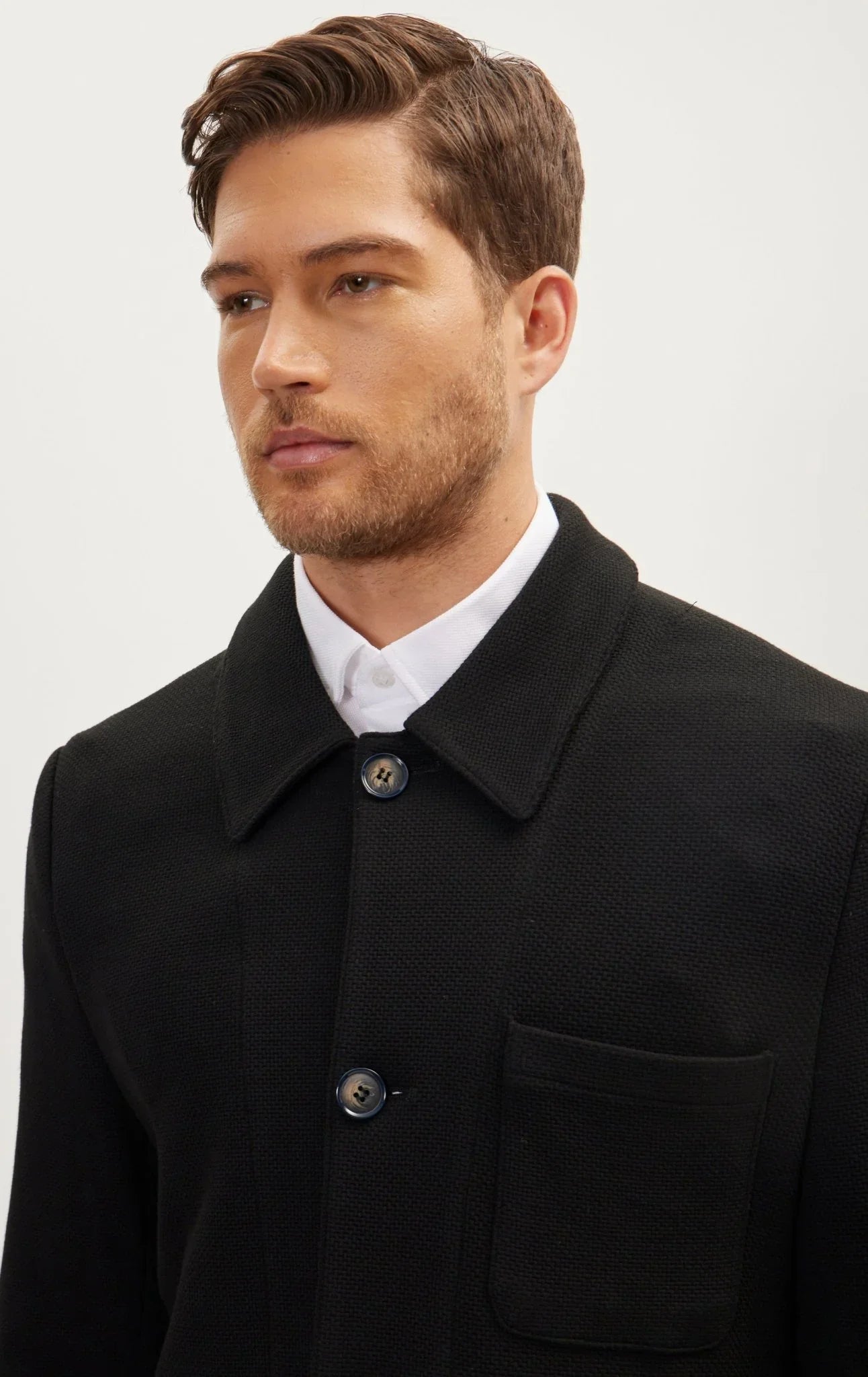 • Sleek Full Button Shacket - Black - Ron Tomson