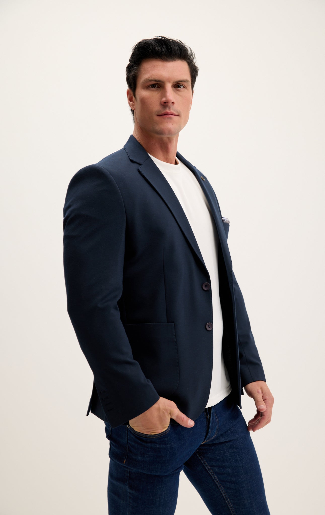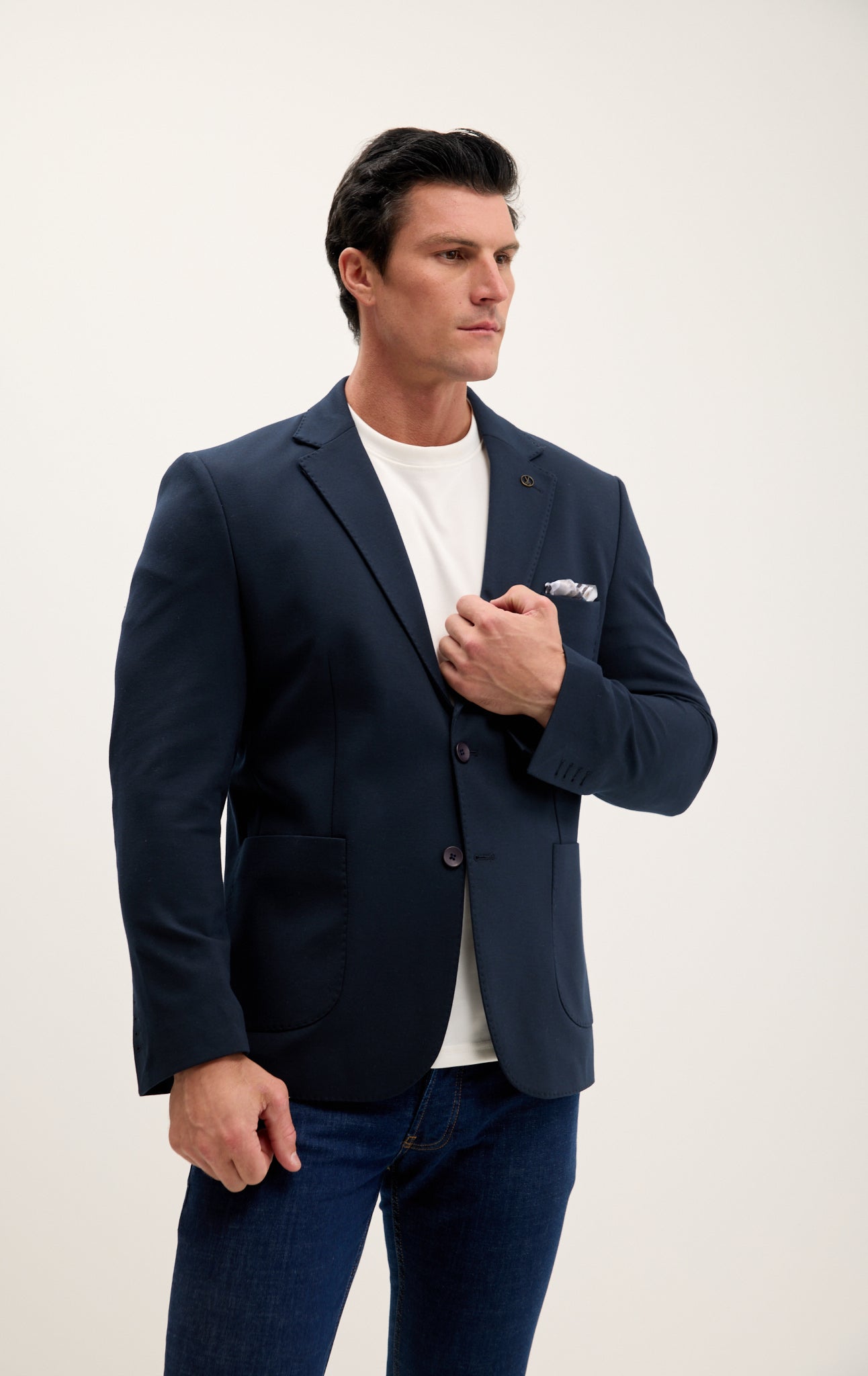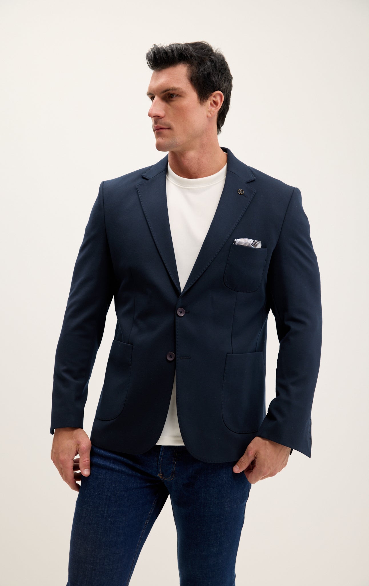 The blazer features a notched lapel, two-button closure, and multiple pockets, making it both functional and fashionable. Whether you're traveling for business or heading to a dinner, the Jetsetter blazer ensures you arrive in style, looking sharp and polished.