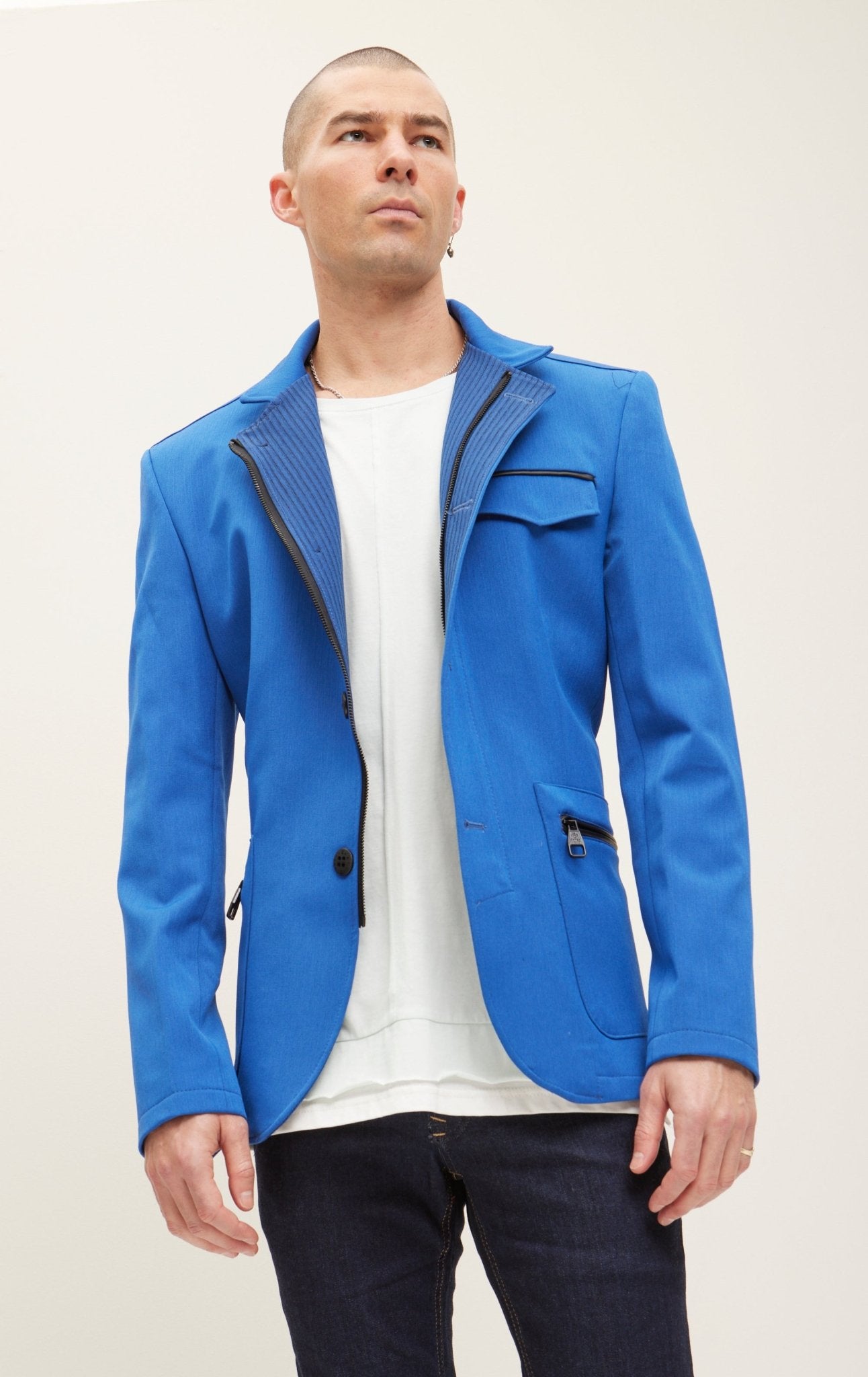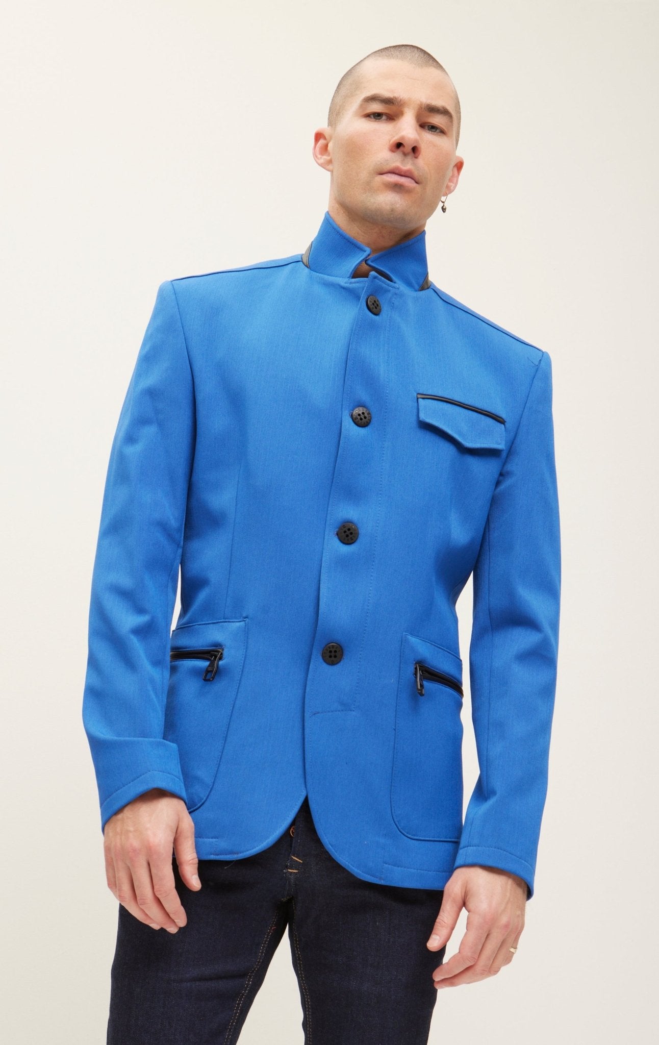 Куртка с воротником на молнии с воротником на молнии и застежкой на пуговицы. Контрастный внутренний карман, нагрудный карман и два боковых кармана на молнии.