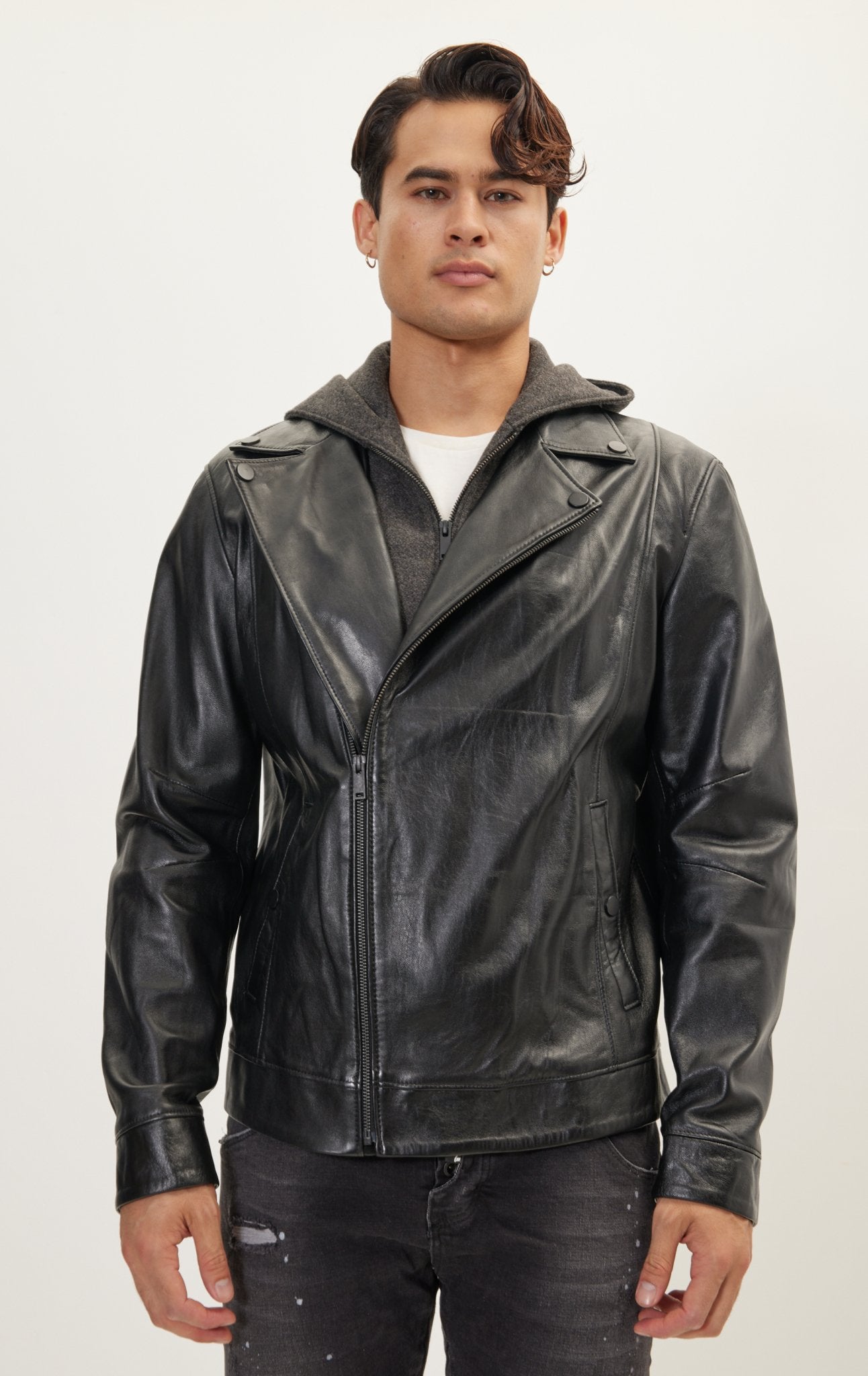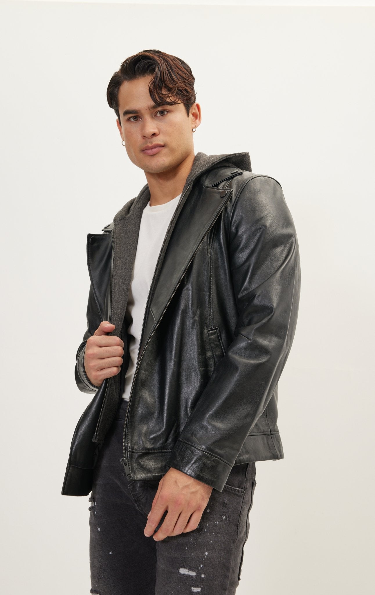 N° 71185 КУРТКА ИЗ НАТУРАЛЬНОЙ КОЖИ СО СЪЕМНЫМ КАПЮШОНОМ