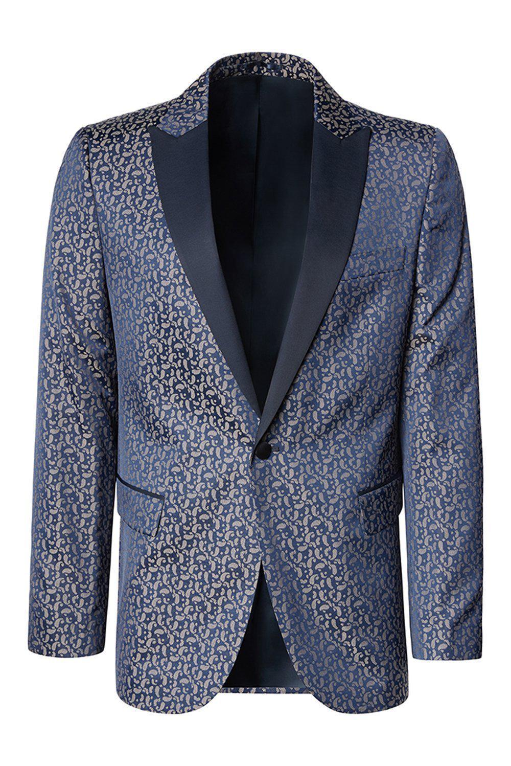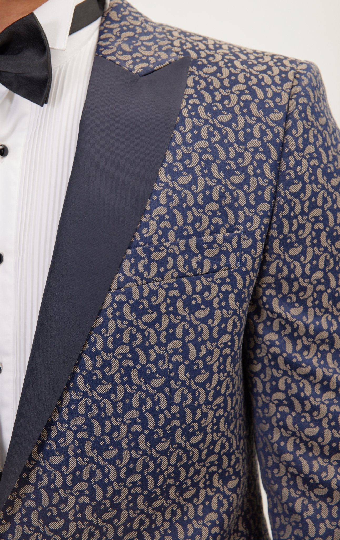 Смокинг с отворотом и контрастными пиками - темно-синий